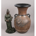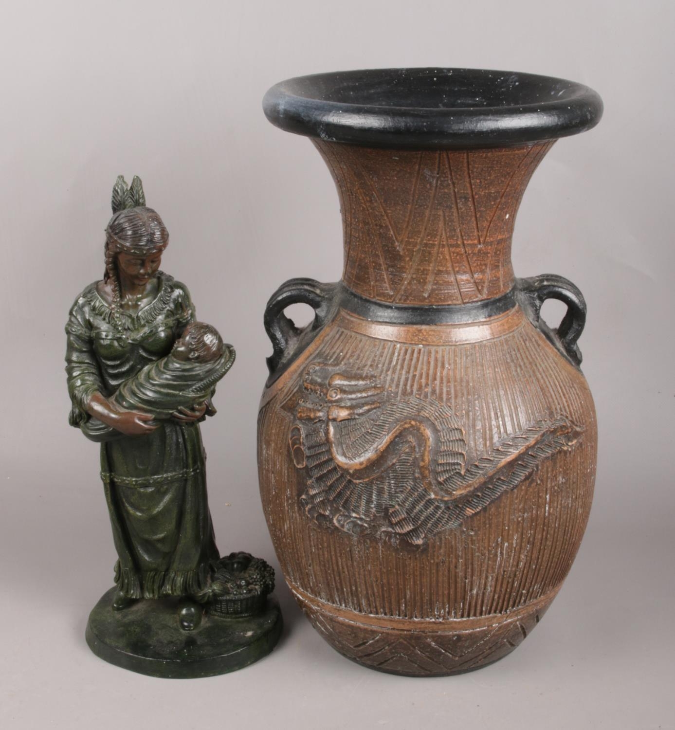 A Large Twin Handled Vase, together with a Resin Figure of a Native American Woman Holding a Baby (Stamped Crosa, 1994).