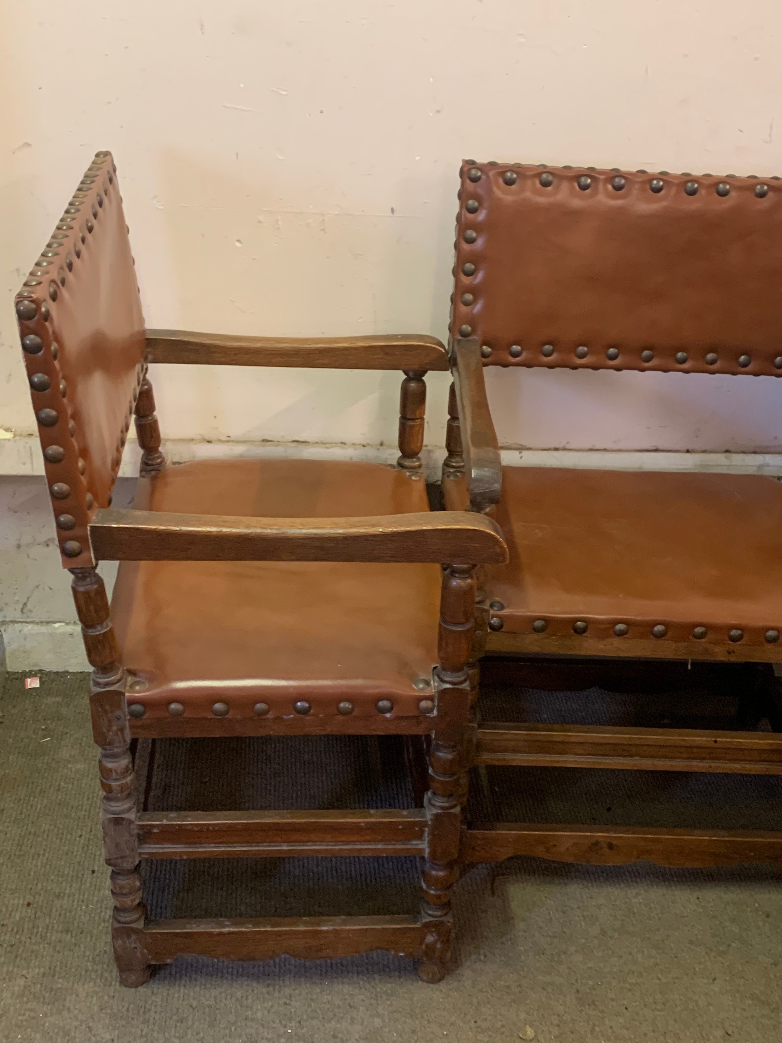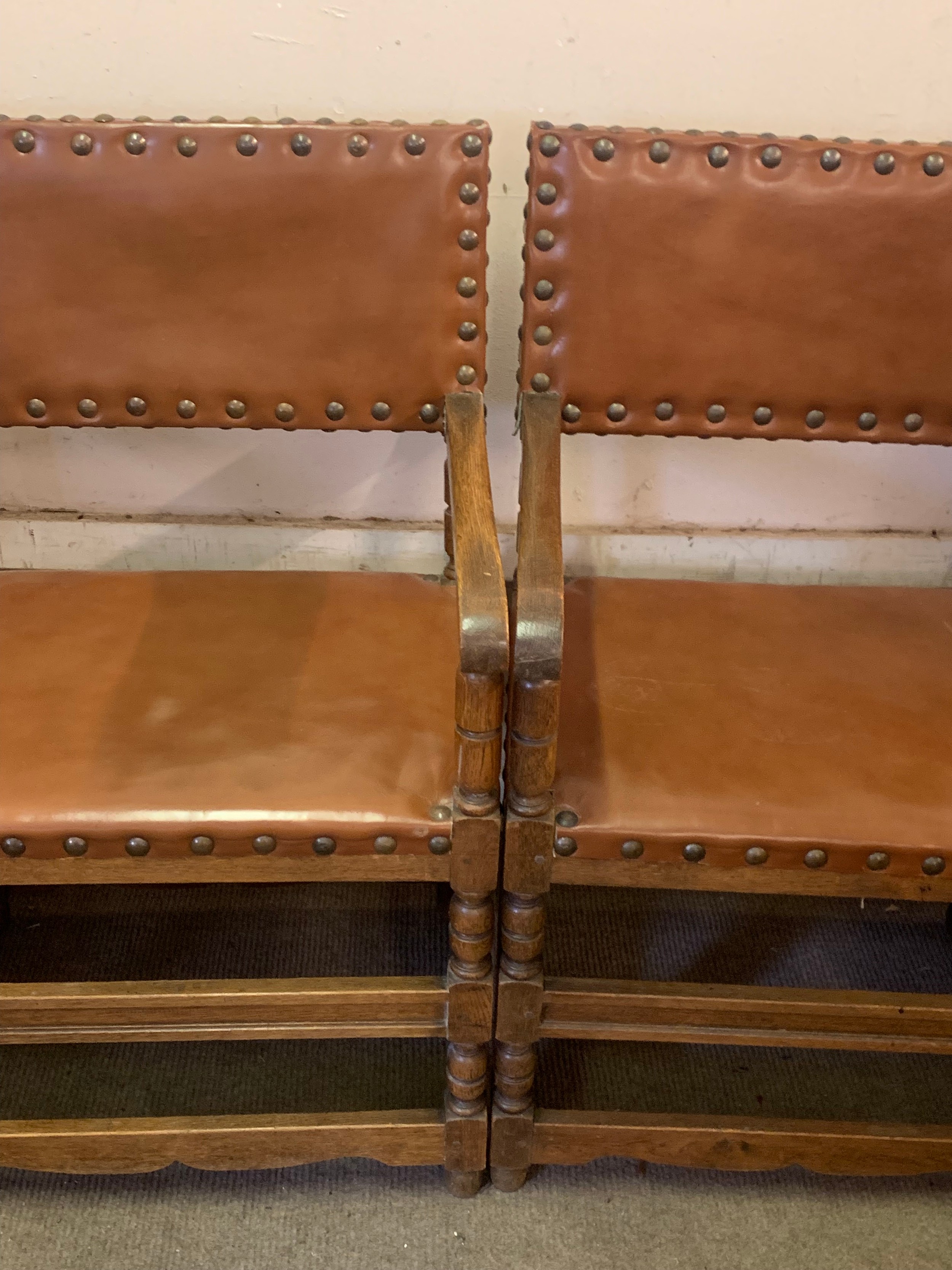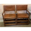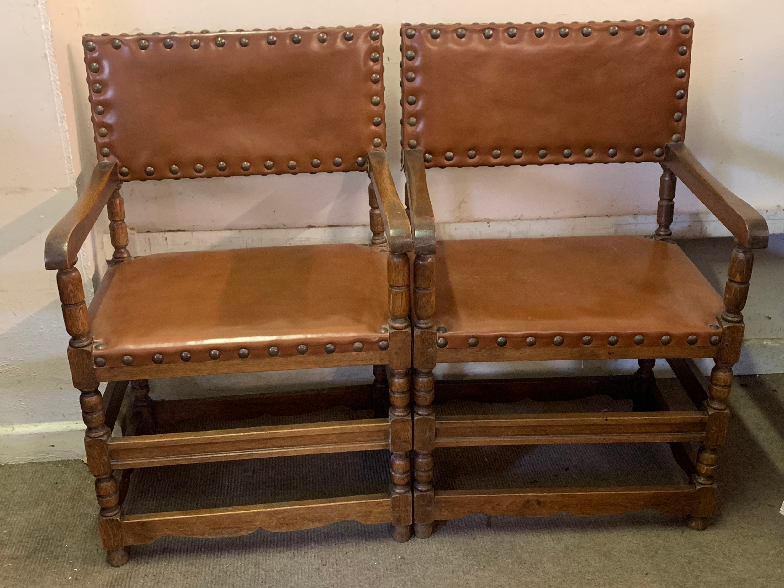 Pair Of Leather And Studwork Elbow Chairs. (2)
