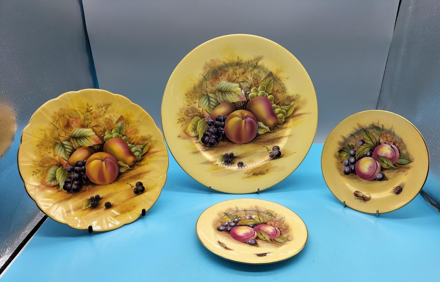 Aynsley China Plates (4) in the 'Orchard Gold' Pattern. Largest having a Diameter of 28cm.