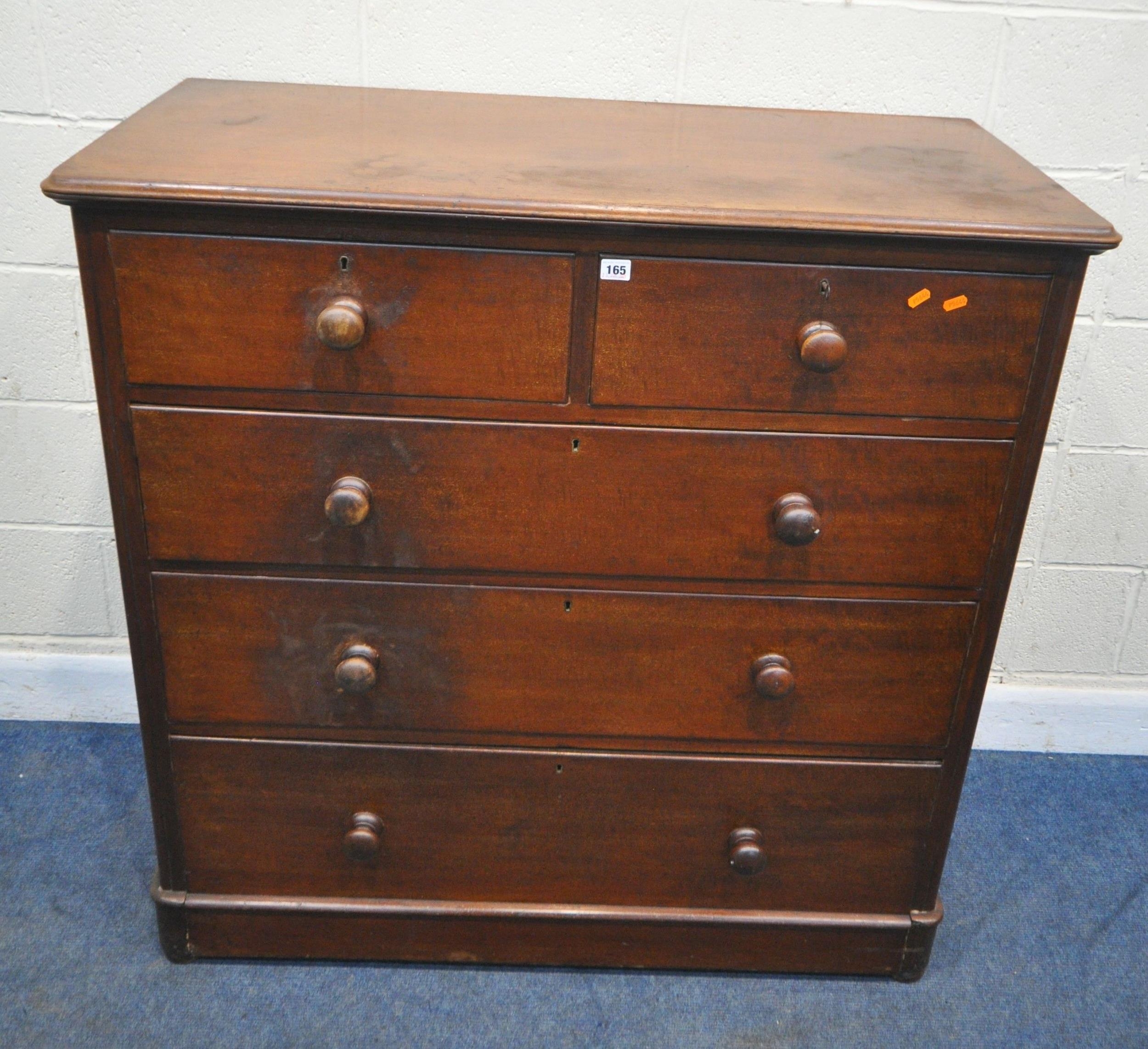 A 19TH CENTURY MAHOGANY CHEST OF TWO SHORT OVER THREE LONG DRAWERS, width 115cm x depth 55cm x height 115cm, condition report: one key, surface marks, scuffs, stains, discolouration, other wear and usage