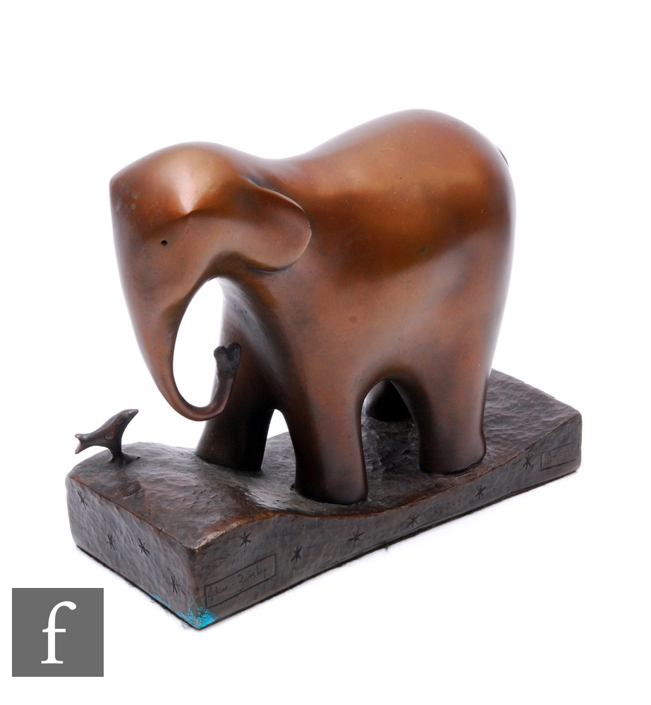 Adam Barsby - A later 20th Century bronze sculpture titled Loves Voyage, with a bird looking up at an elephant, height 19cm.