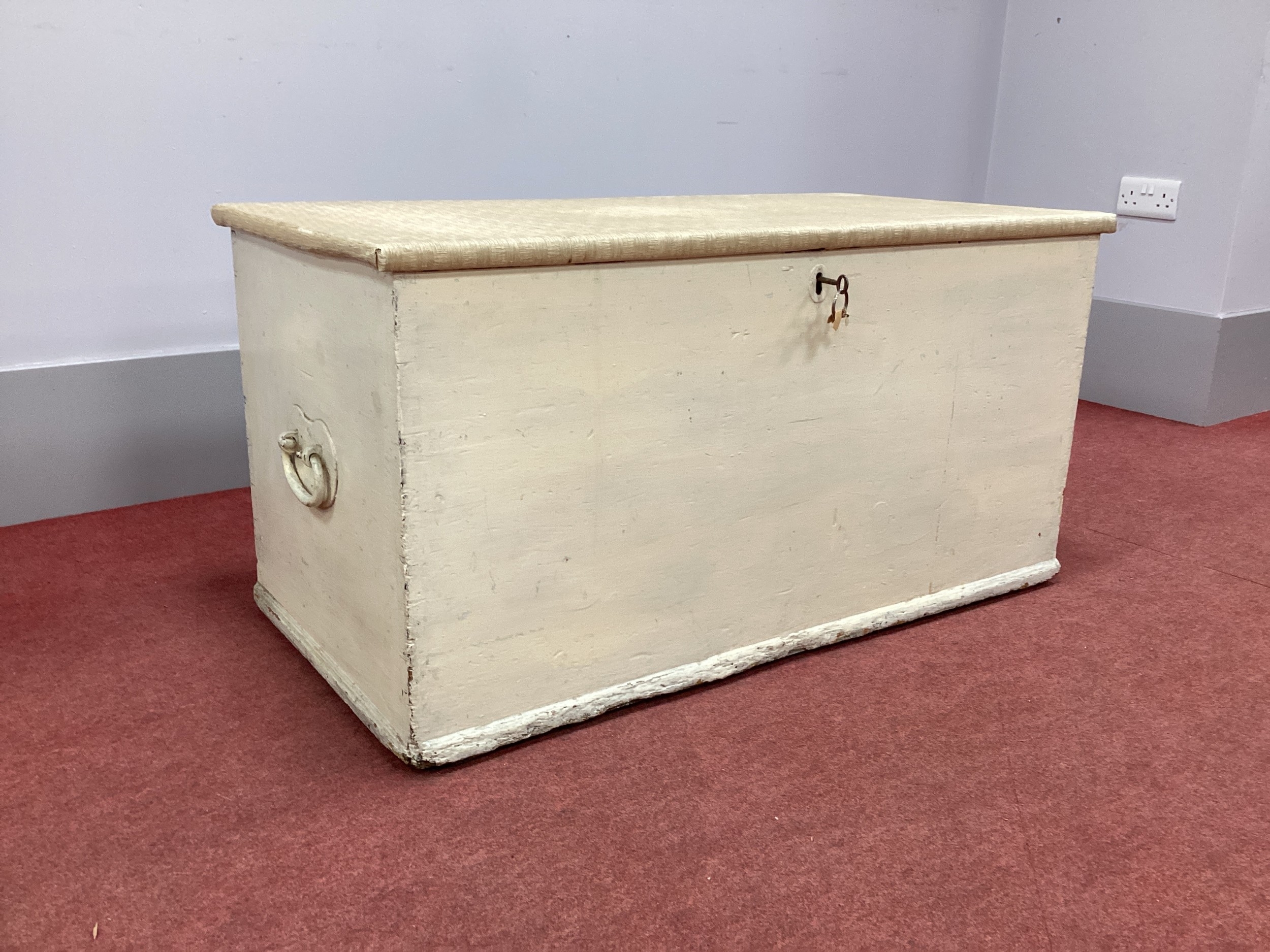 A XIX Century Painted Pine Blanket Box, with hinged lid, 106cm wide.
