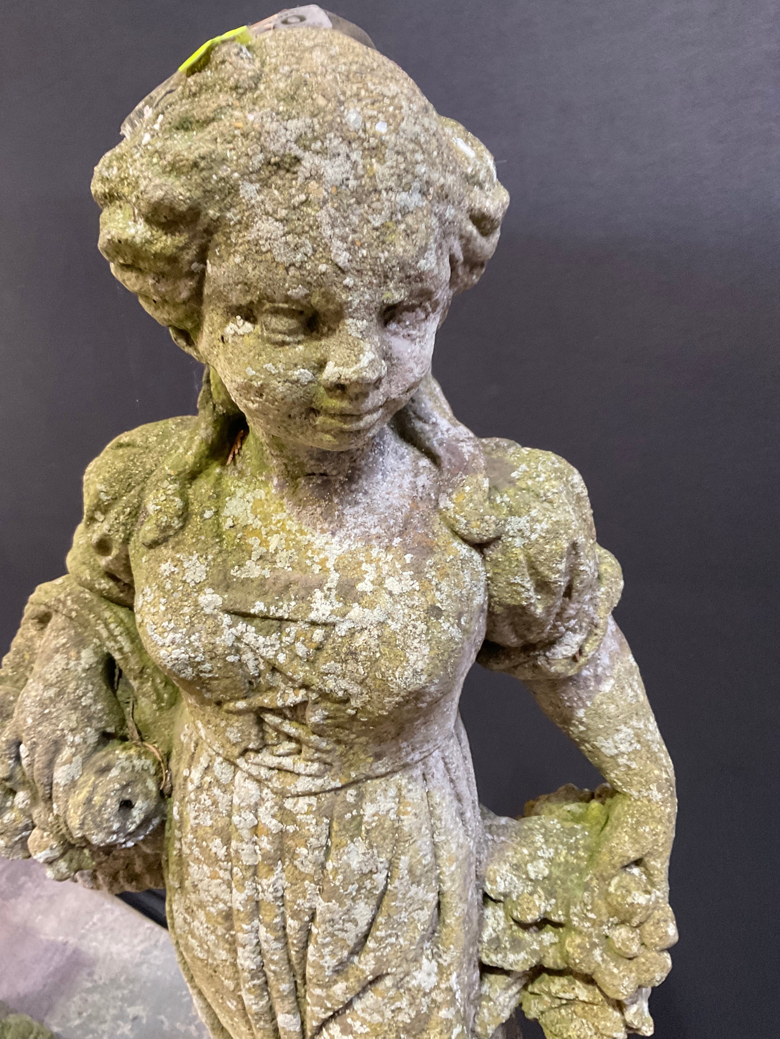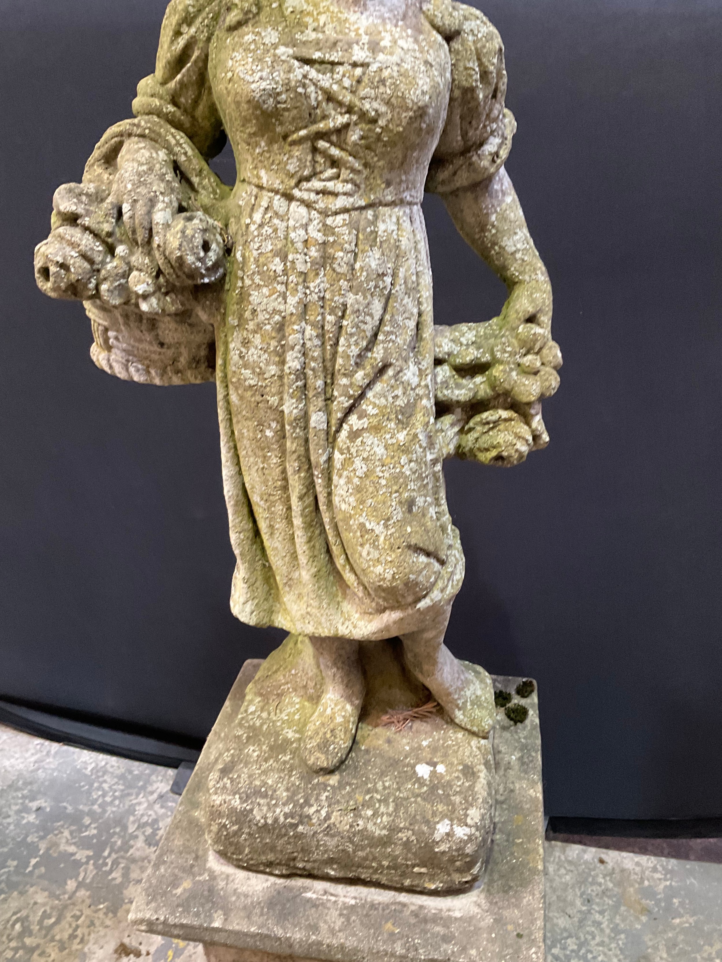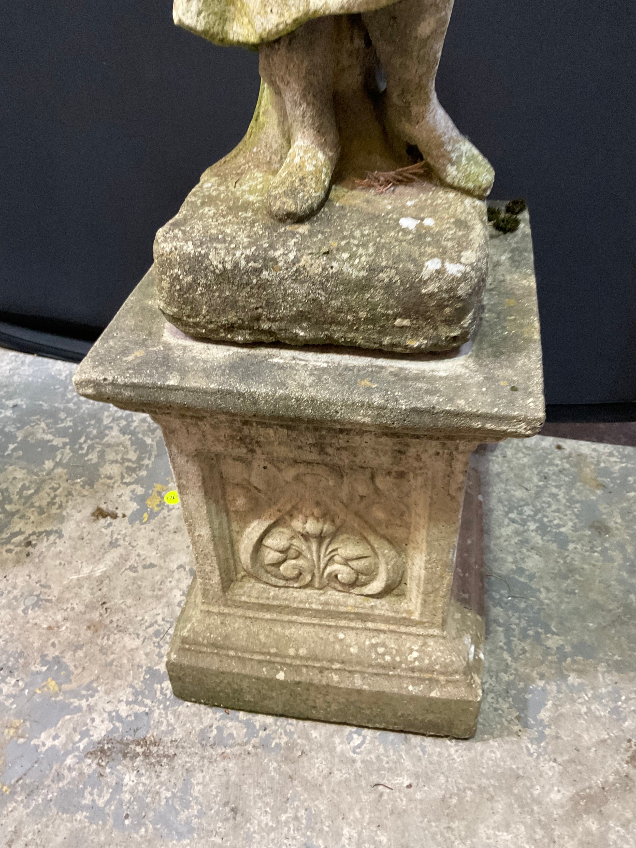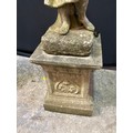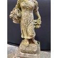 VINTAGE WEATHERED CONCRETE FOUR SEASONS GARDEN STATUE ON PLI...