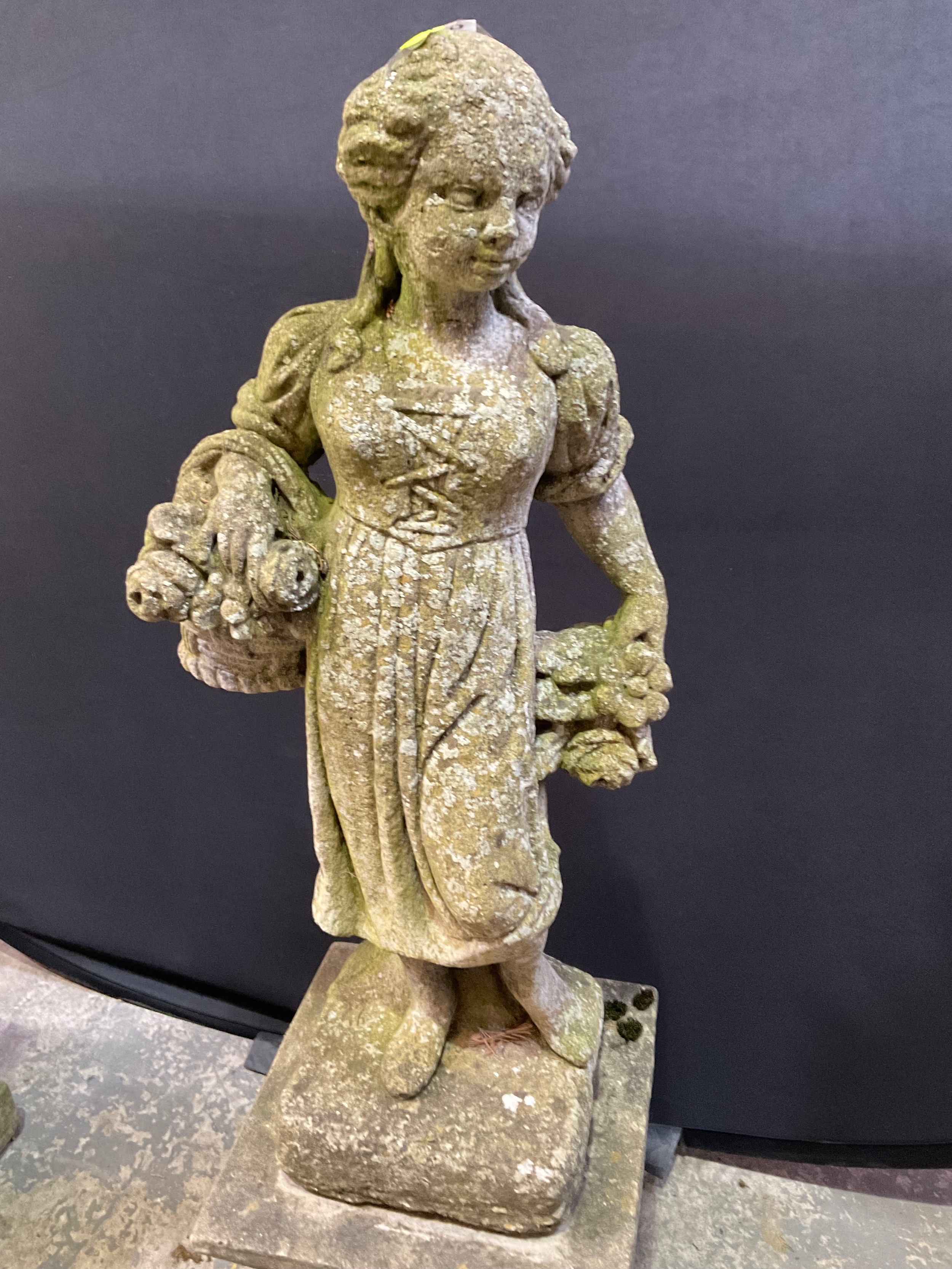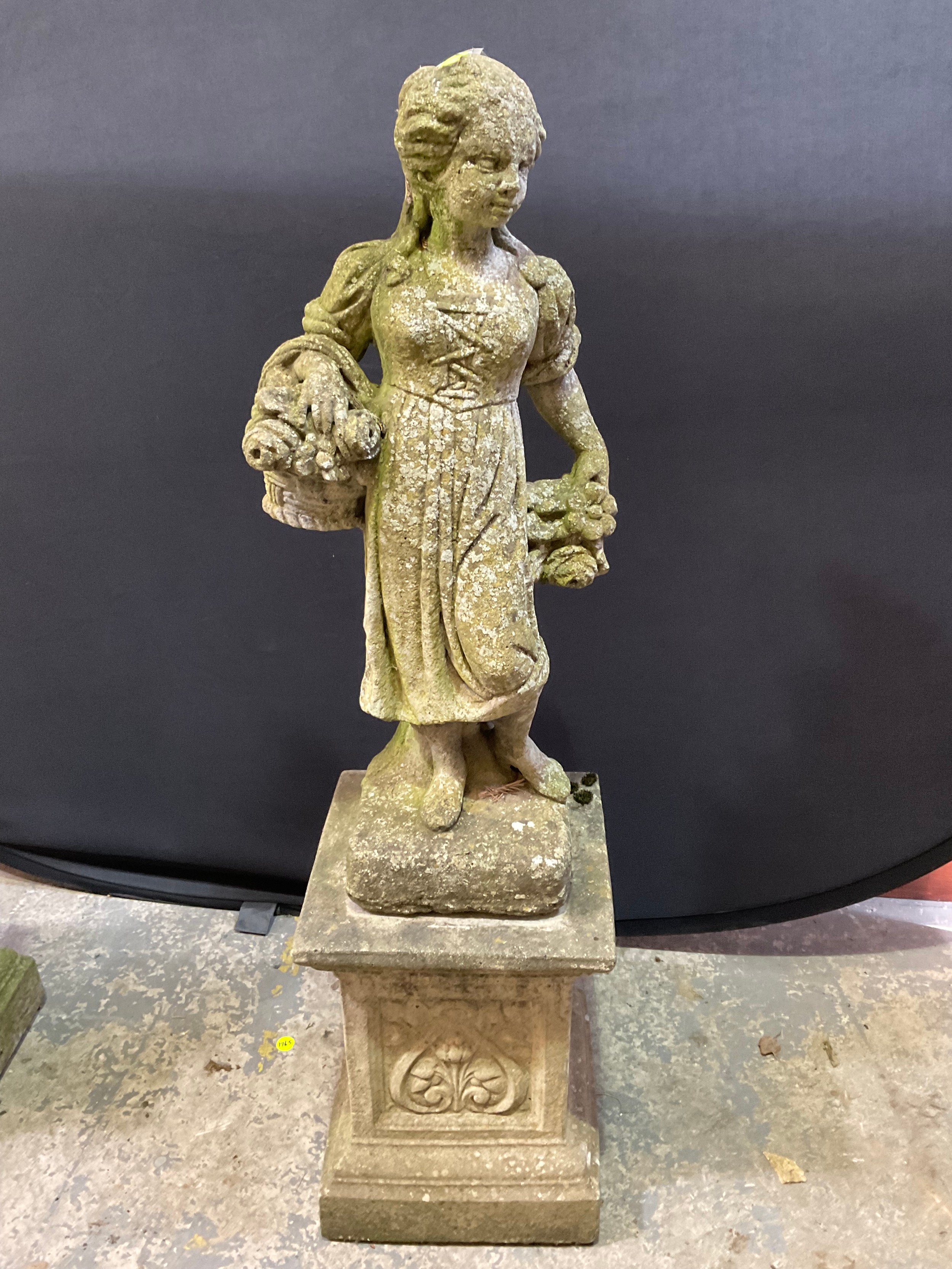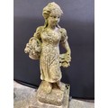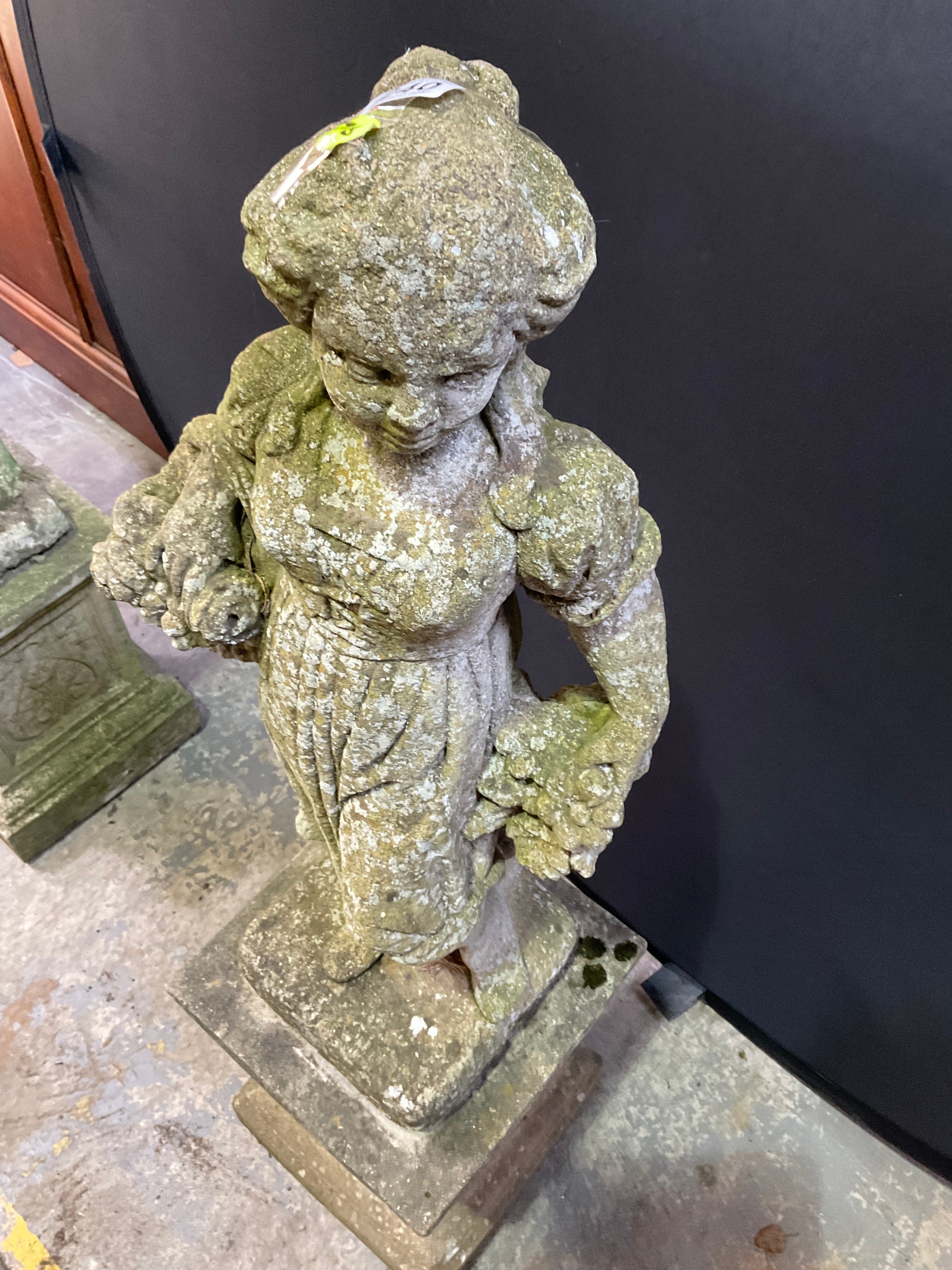 VINTAGE WEATHERED CONCRETE FOUR SEASONS GARDEN STATUE ON PLI...