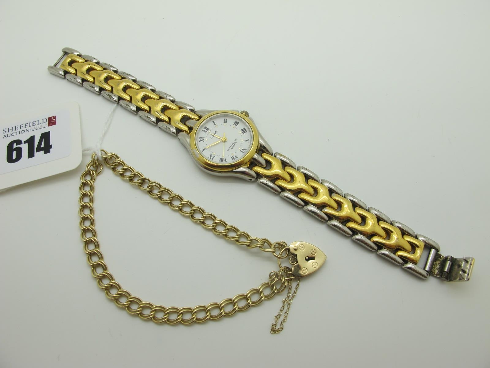 A 9ct Gold Double Curb Link Bracelet, to heart shape padlock style clasp (6grams); Together with A Modern Lorus Ladies Wristwatch. (2)