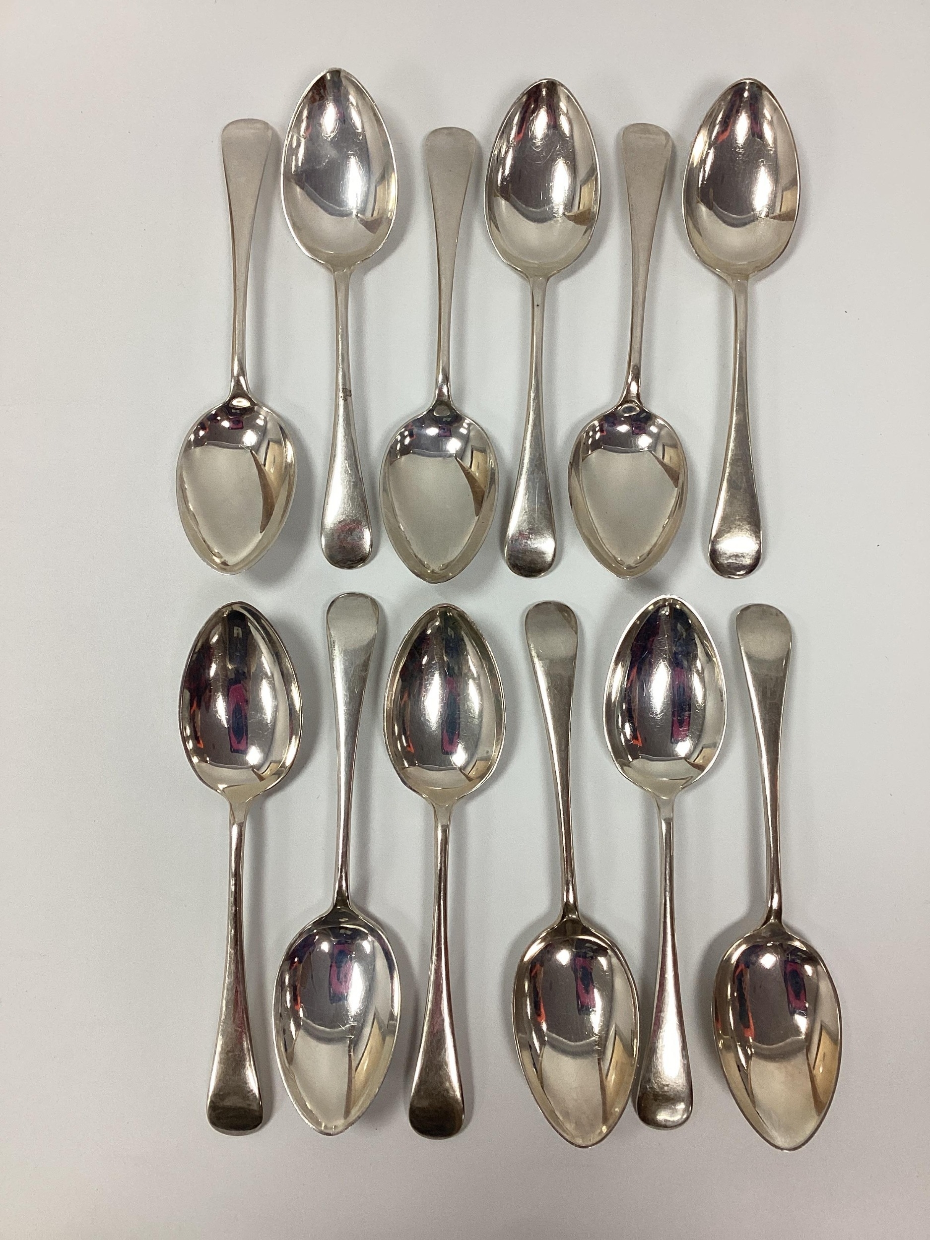 A Set of Twelve Hallmarked Silver Old English Pattern Spoons, EV, Sheffield 1930 (665grams). (12)