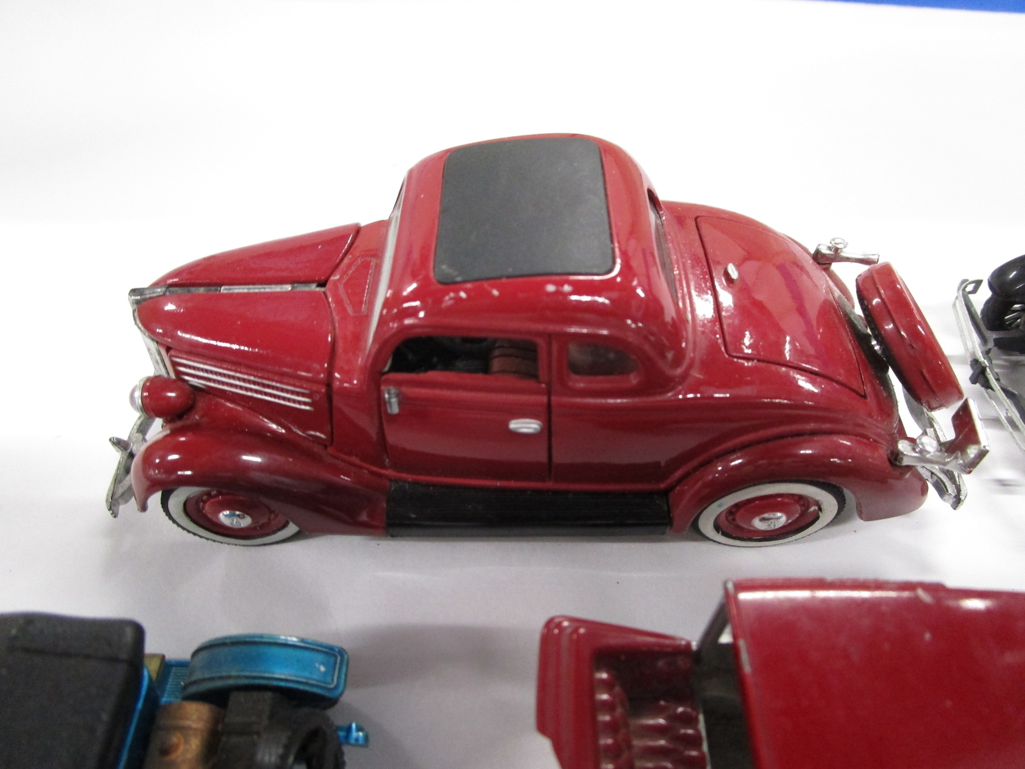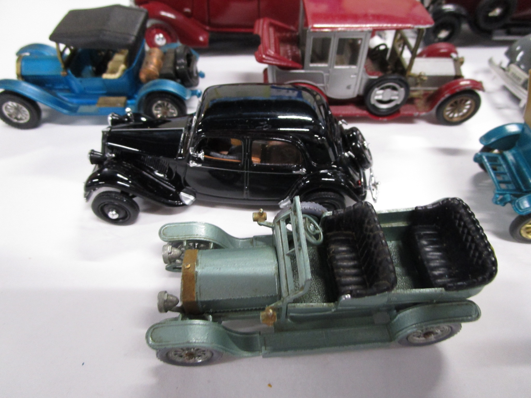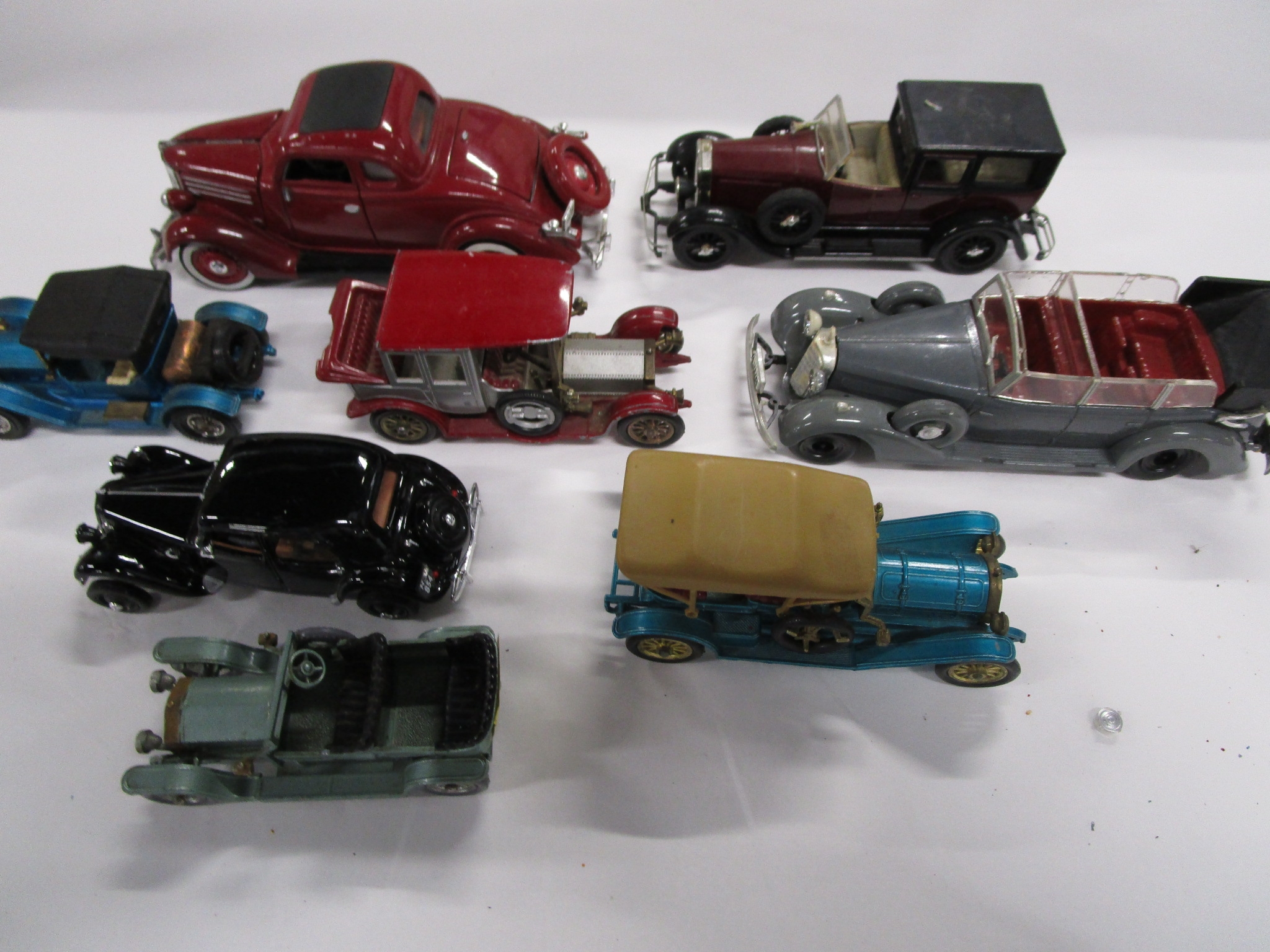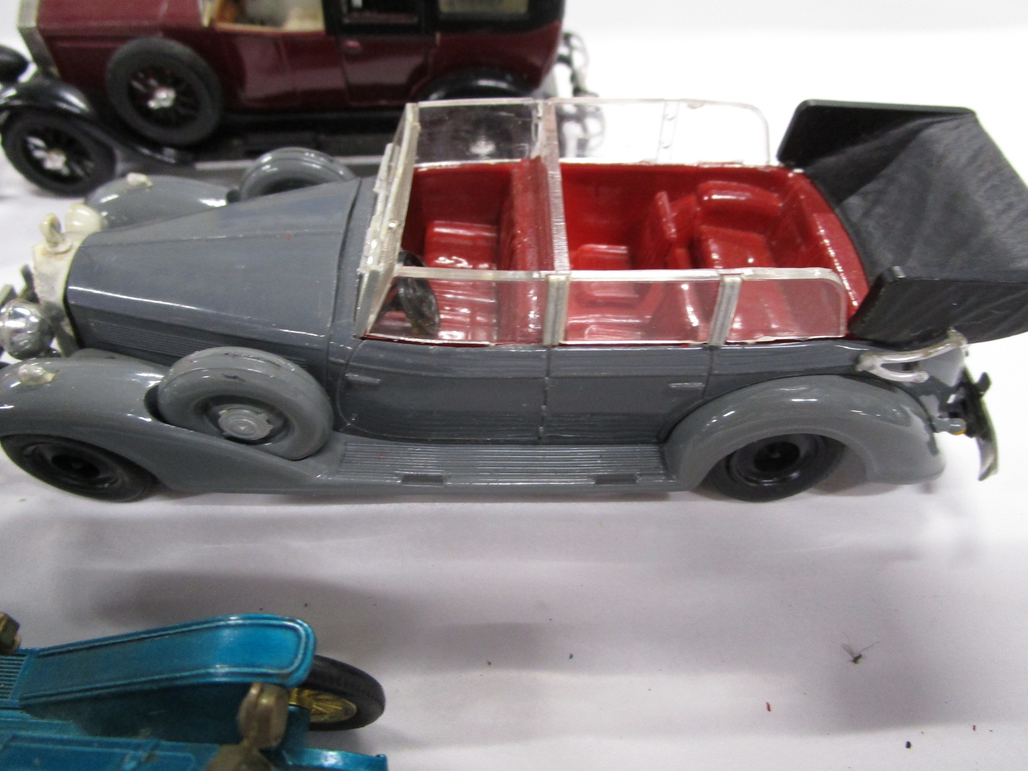 A Selection of Model cars including a Rio Mercedes and an American old timer hot shot type car and some models of yesteryear.