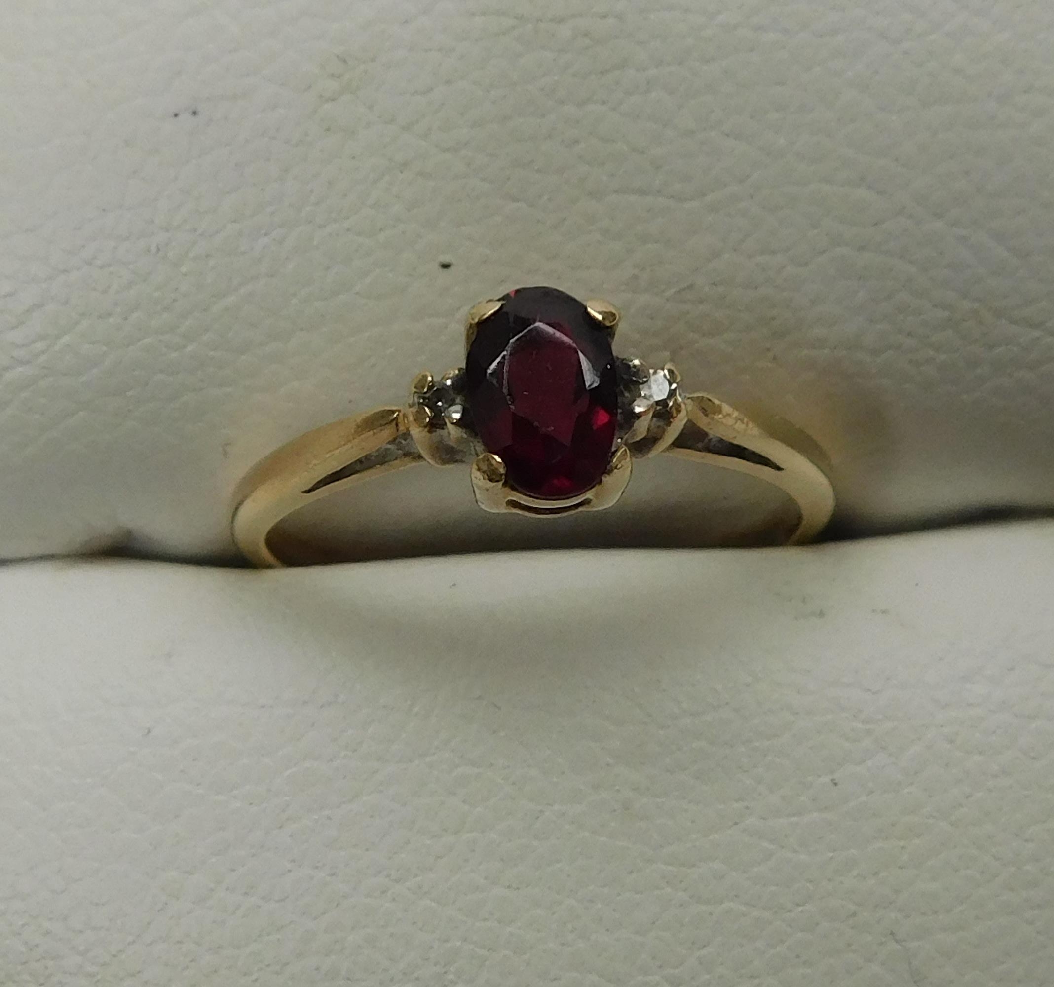 9ct Gold diamond and garnet ring size L 1/2