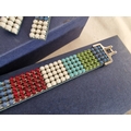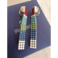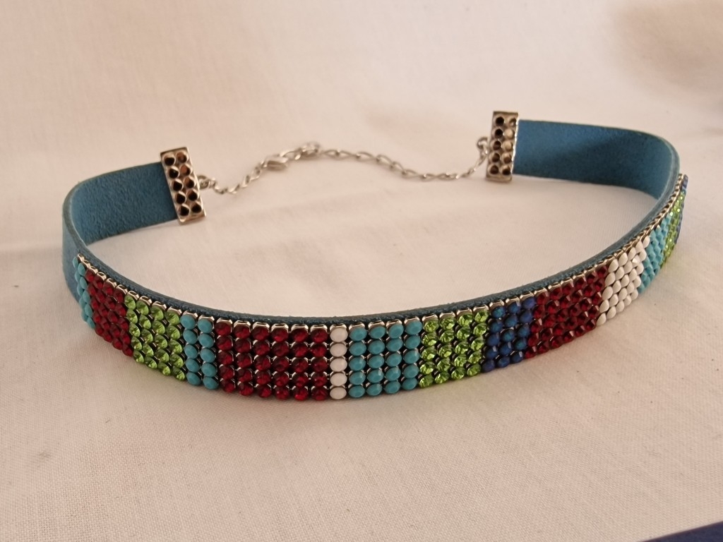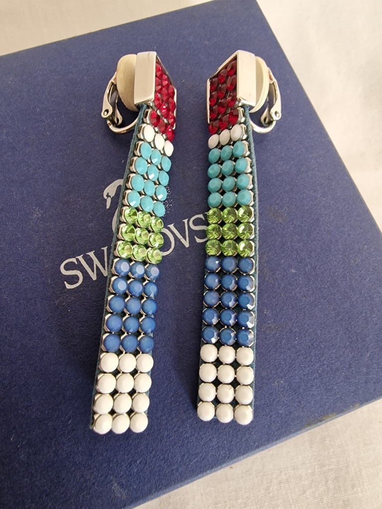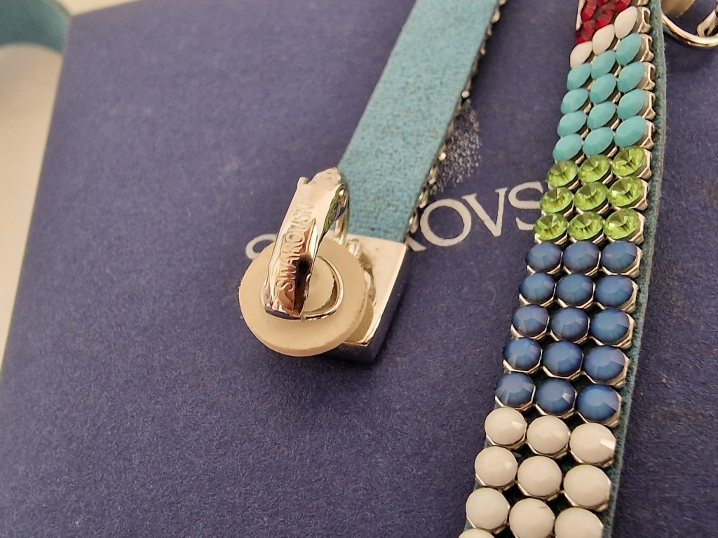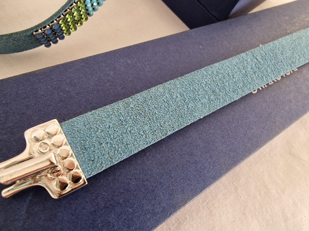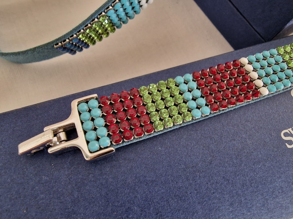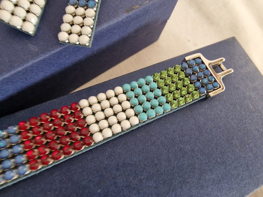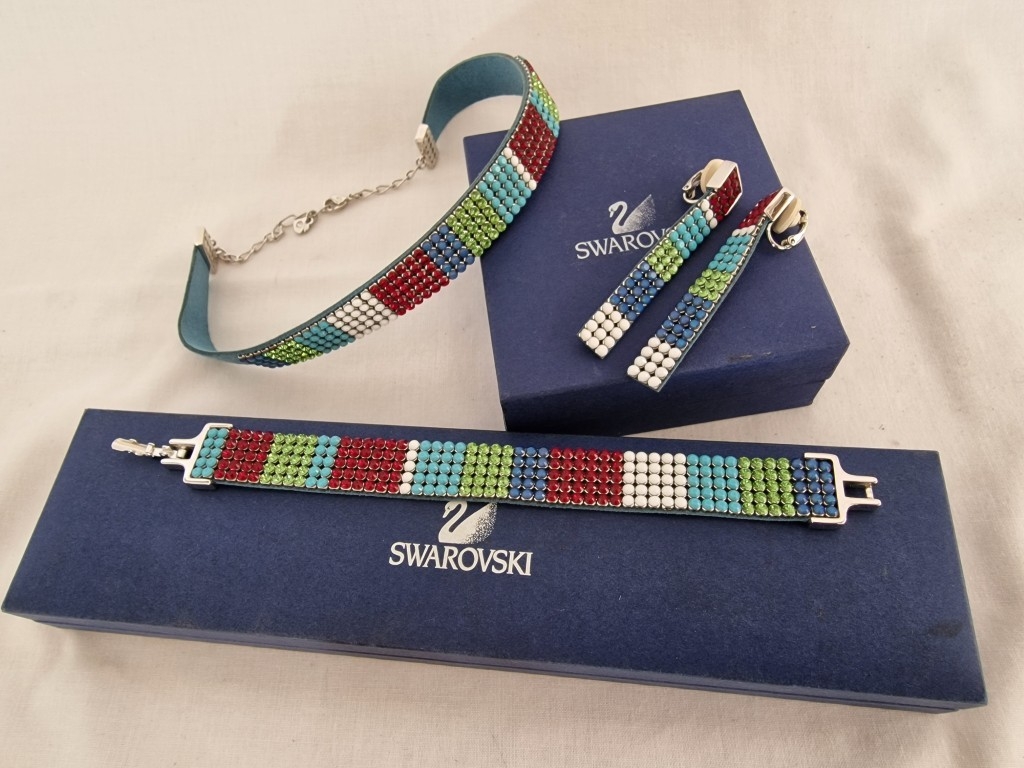 Swarovski Set; Multi-Colour Crystal & Leather Matching Choker Necklace, Bracelet and Earrings, * Looks Unused * with 2 Blue Swarovski Boxes
