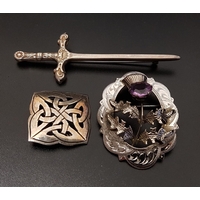 including a pair of Art Deco style black agate set triangular earrings; a pair of turquoise set earrings in attractive pierced mounts; a pair of amber coloured earrings in unmarked silver mounts; and a pair of entwined Celtic knot design earrings (6 pairs)