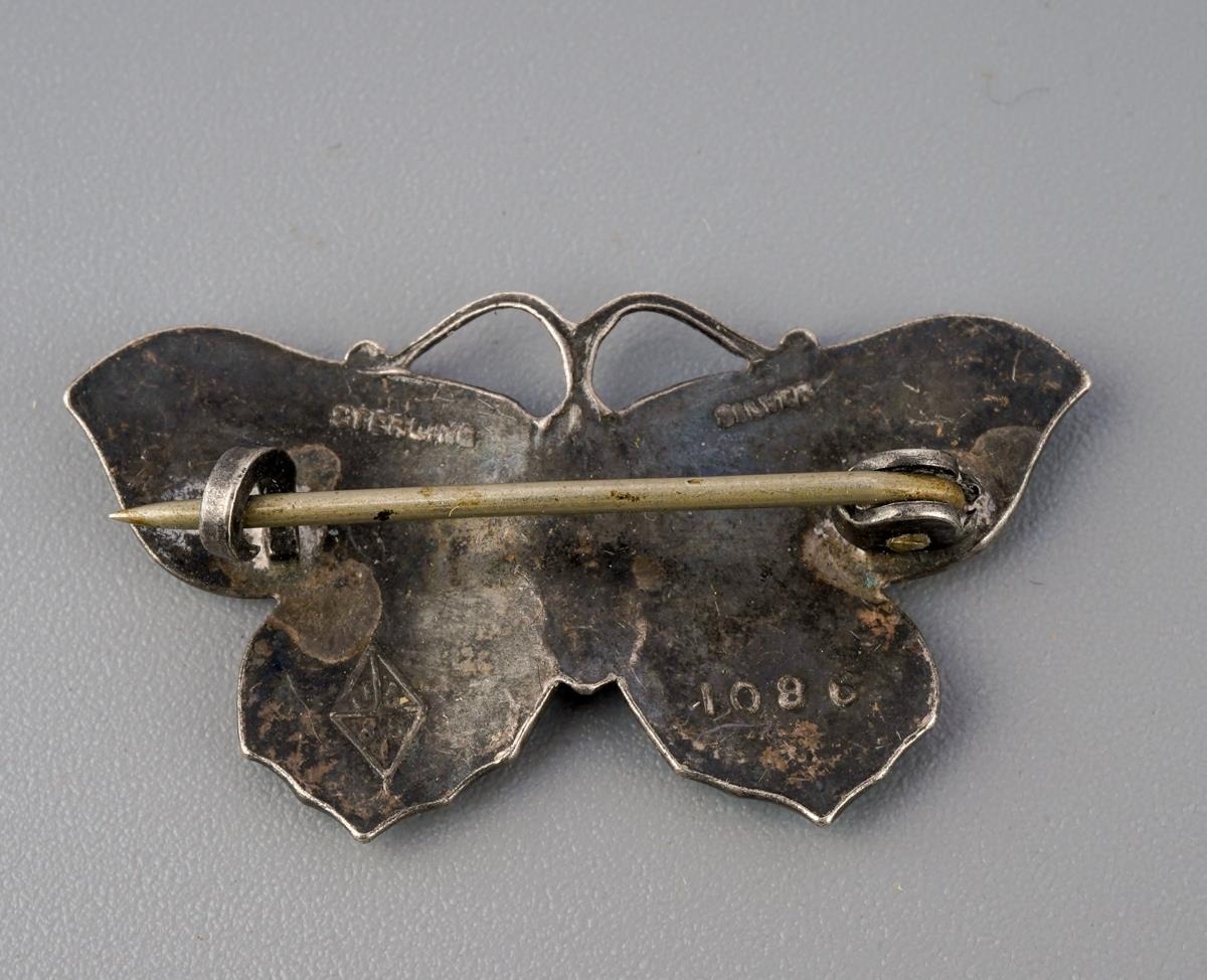 J Aitkin & Son enamel butterfly. Stamped Sterling Silver JA&S 1086 approx length 31mm, approx gross weight 3.40 grams.