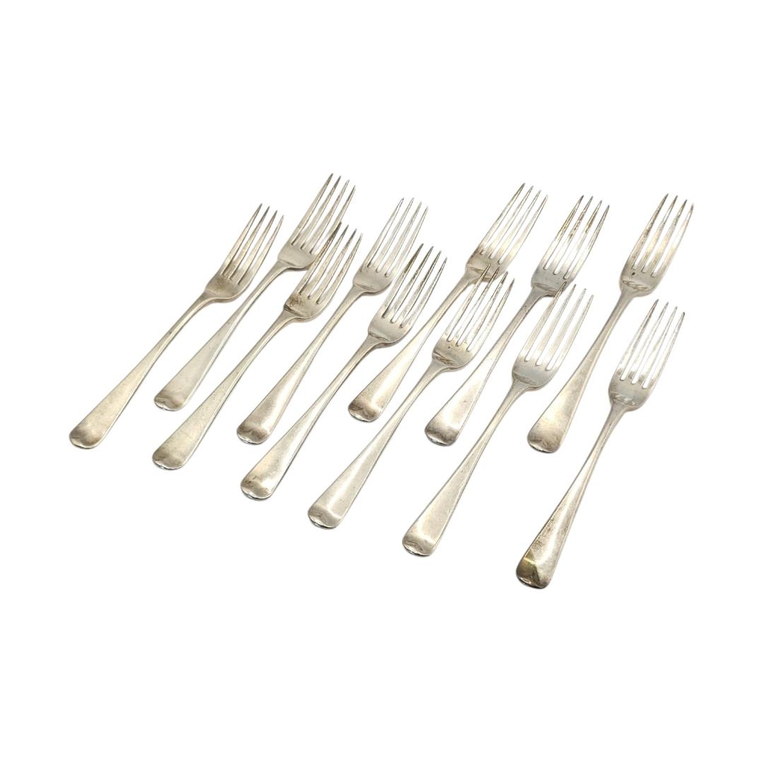 SAMUEL NEVILLE, IRELAND, A SET OF ELEVEN EARLY 19TH CENTURY GEORGE III IRISH SILVER DESSERT FORKS