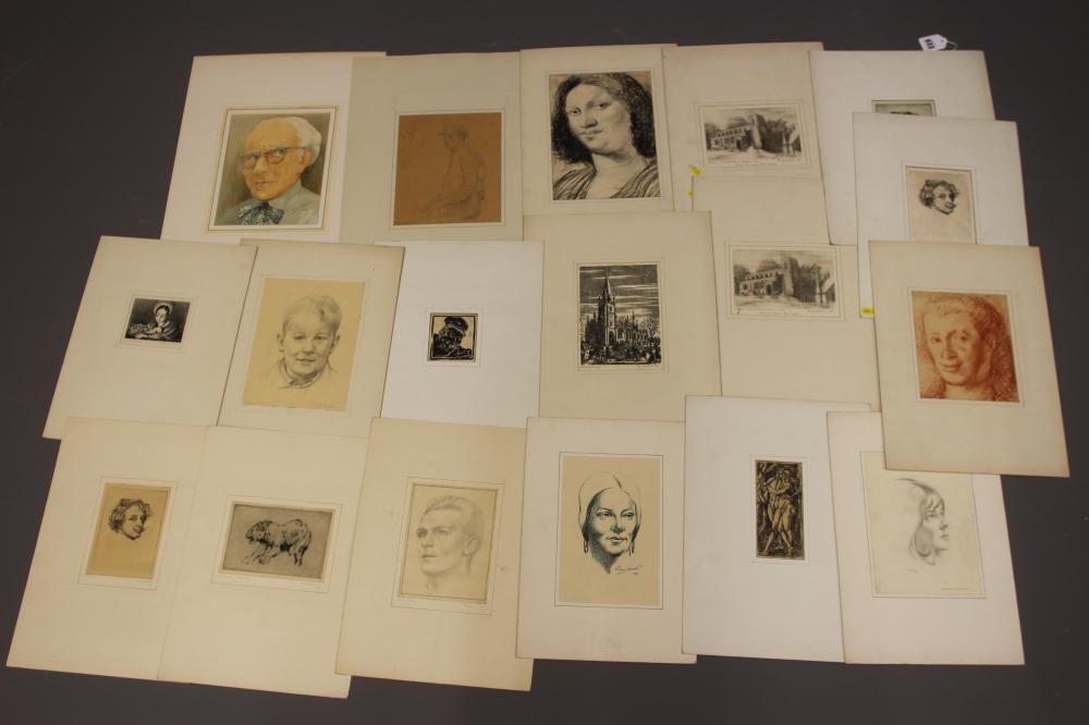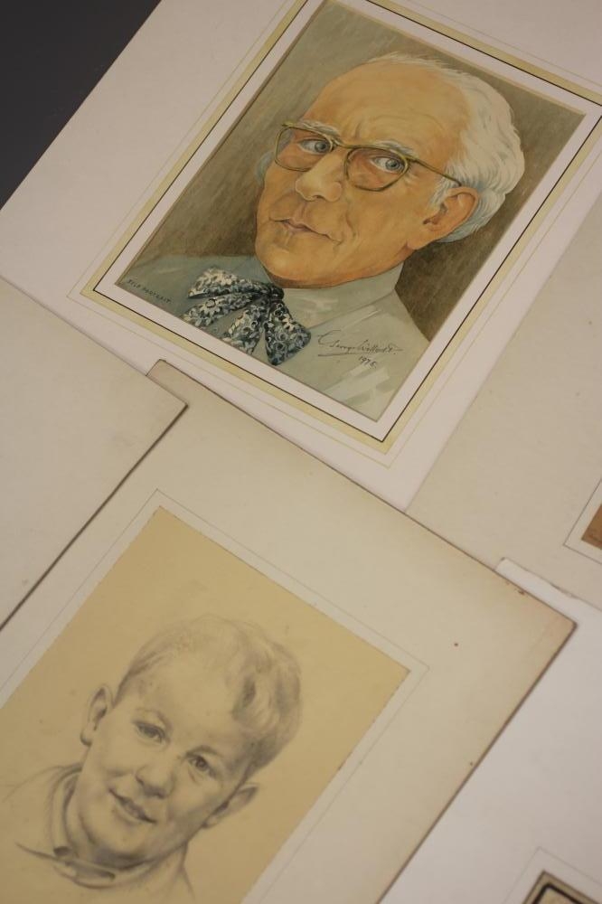 GEORGE WILLOTT (1900-2000) Sixteen unframed works to include a watercolour self portrait, pencil portraits, etchings and wood engravings of a variety of subjects, various sizes Provenance; From the home of George Willott's son, also George, near York (subject to Artists Resale Right) (Est. plus 24% premium inc. VAT)