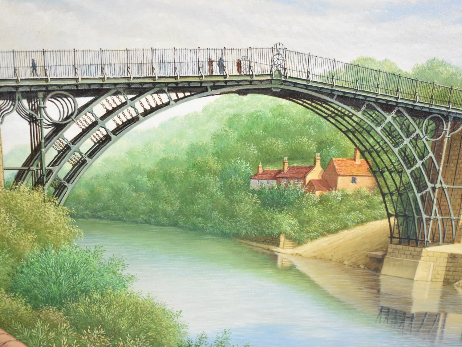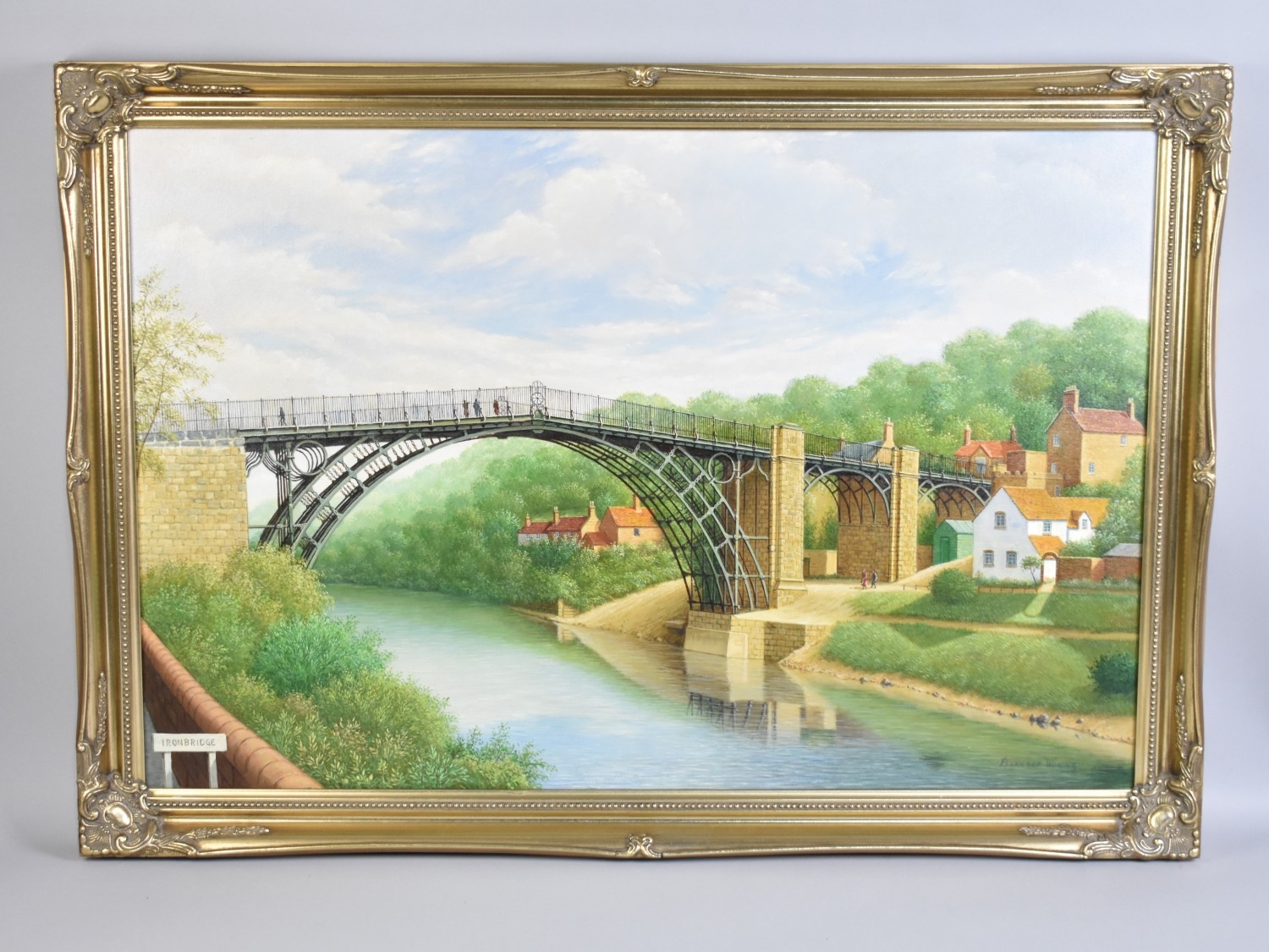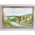 A Large Gilt Framed Oil on Canvas, "Ironbridge" by B Van De Woning, 75x49cms