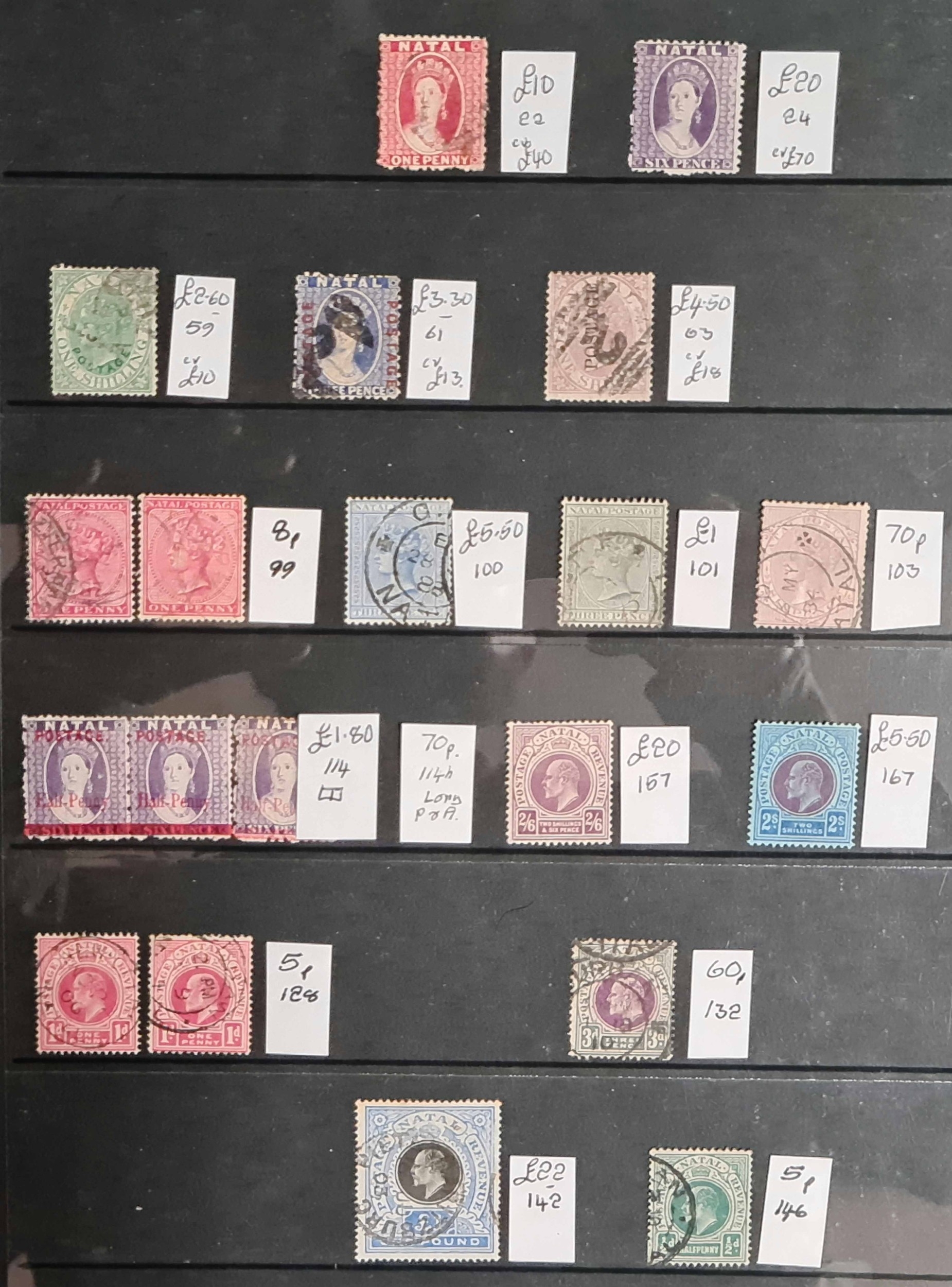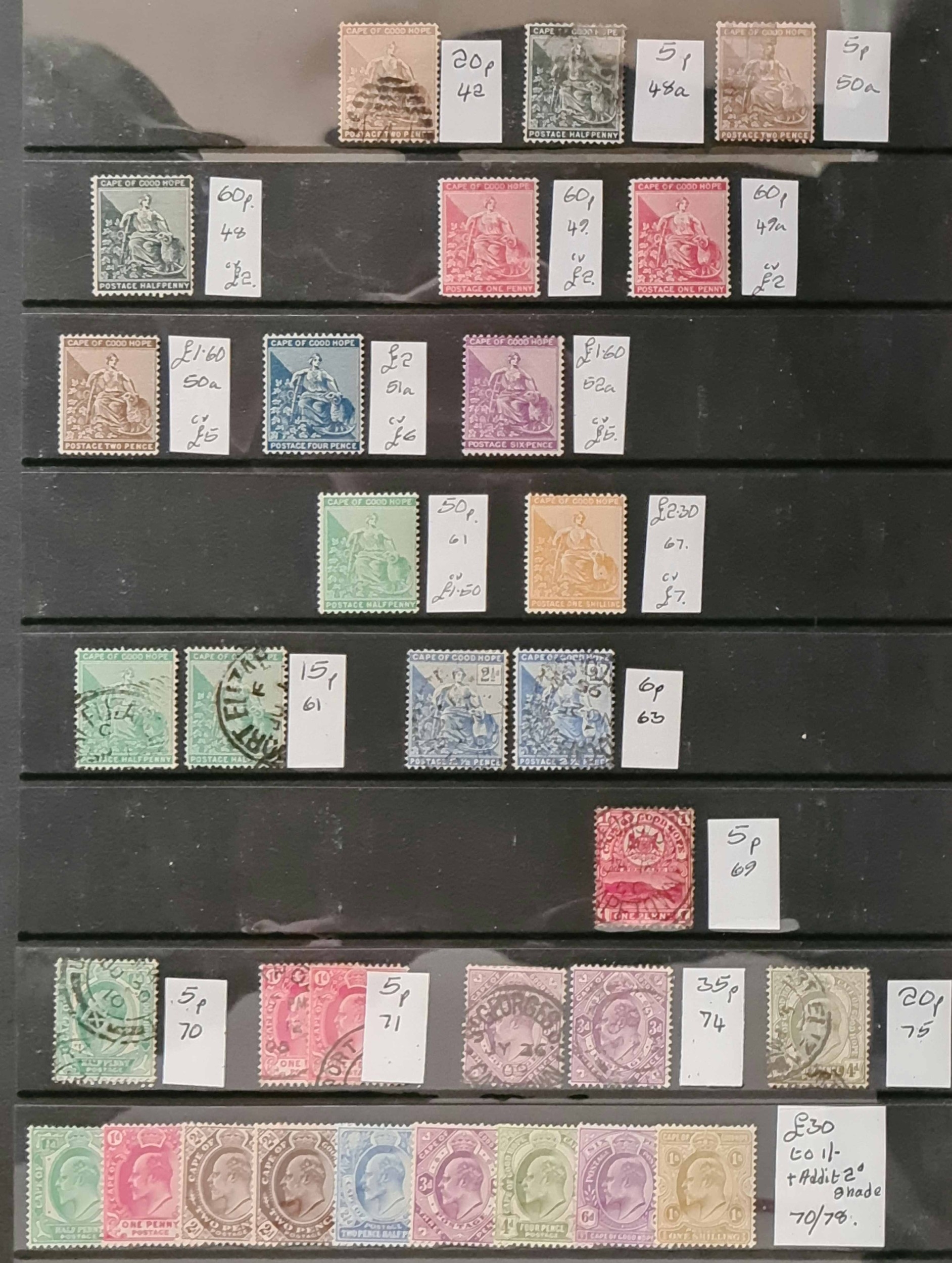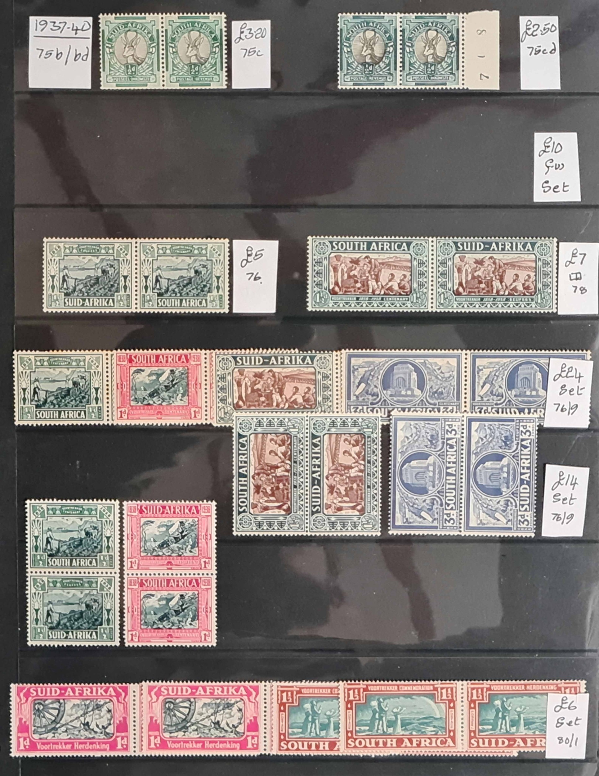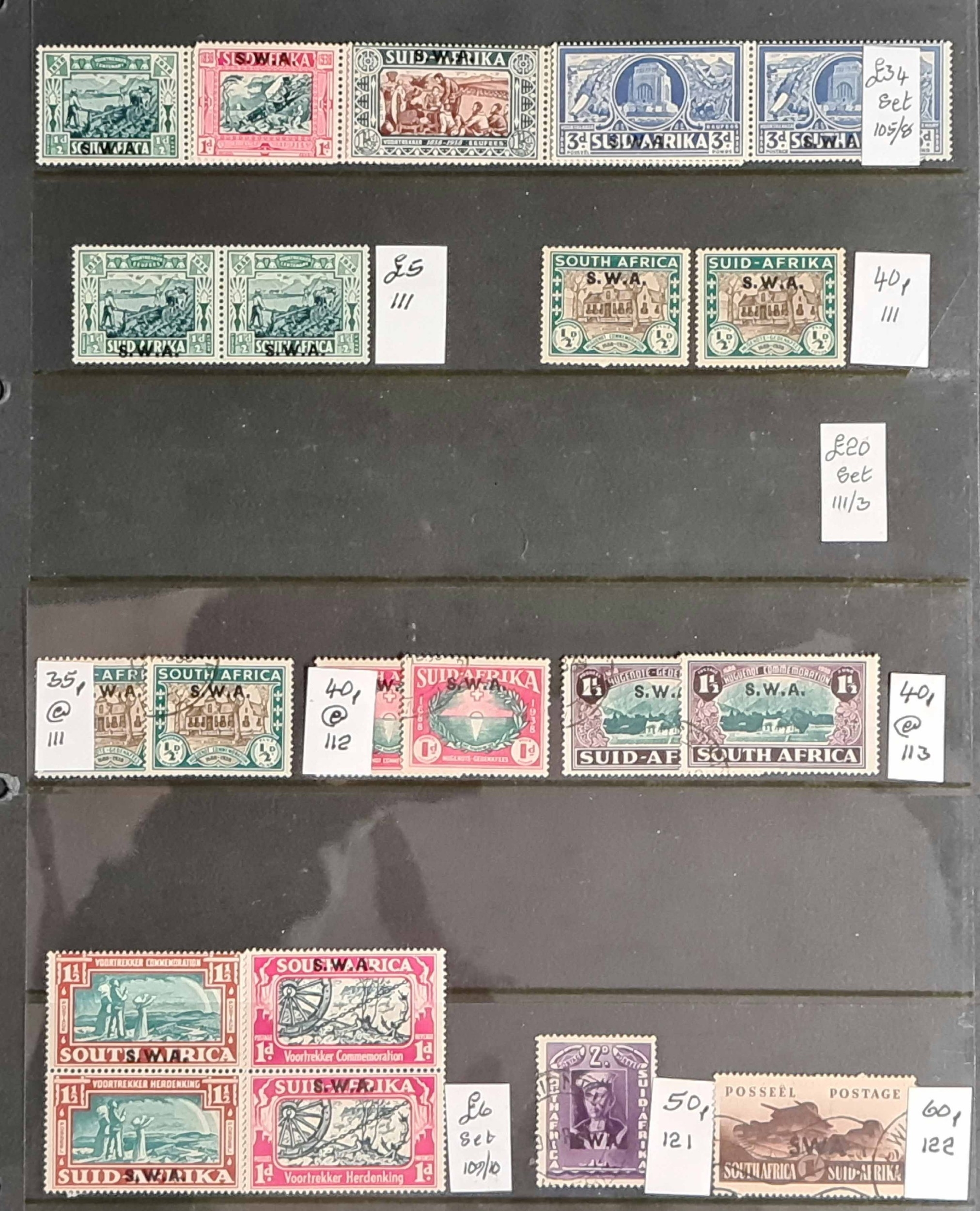 SOUTHERN AFRICA MINT & USED ASSORTMENT: A carton containing three albums and loose stamps. Includes some useful items such as South Africa mint pair sets of 1938 Voortrekker; 1939 Huguenot & 1941 War Effort (to 6d). South West Africa 1931 10/- & 20/- used pairs; 1938 Voortrekker set mint pairs. Cape of Good Hope 1902 mint set (SG70/78 cat. £250). Natal 1863 6d mint (SG 24 cat. £90) with some faults; 1902 £1 (SG142 cat. £95) & 1904 2/6d mint (SG157 cat. £65). Also a modern accumulation of Zambia. Some duplication. (Several 100's)