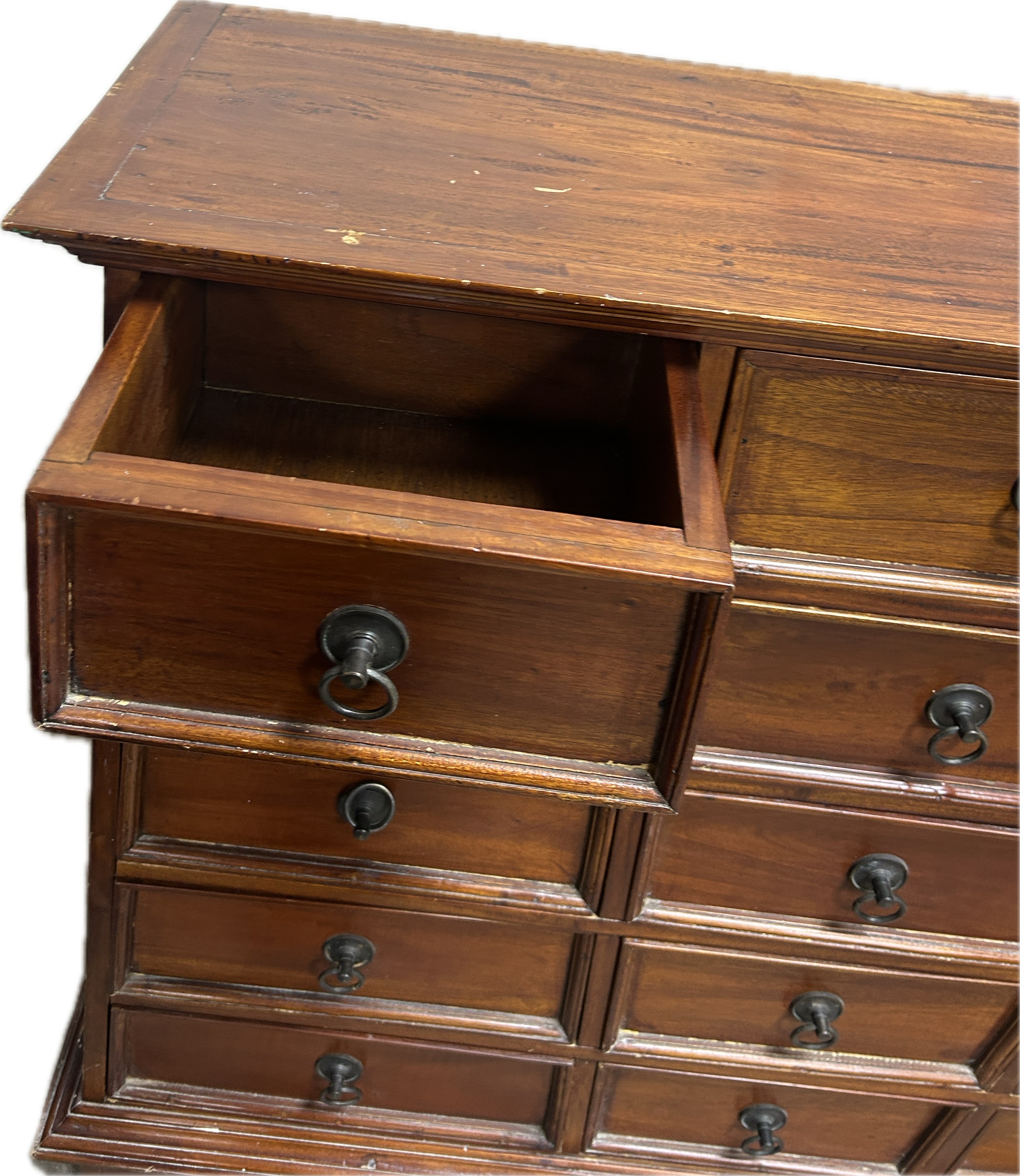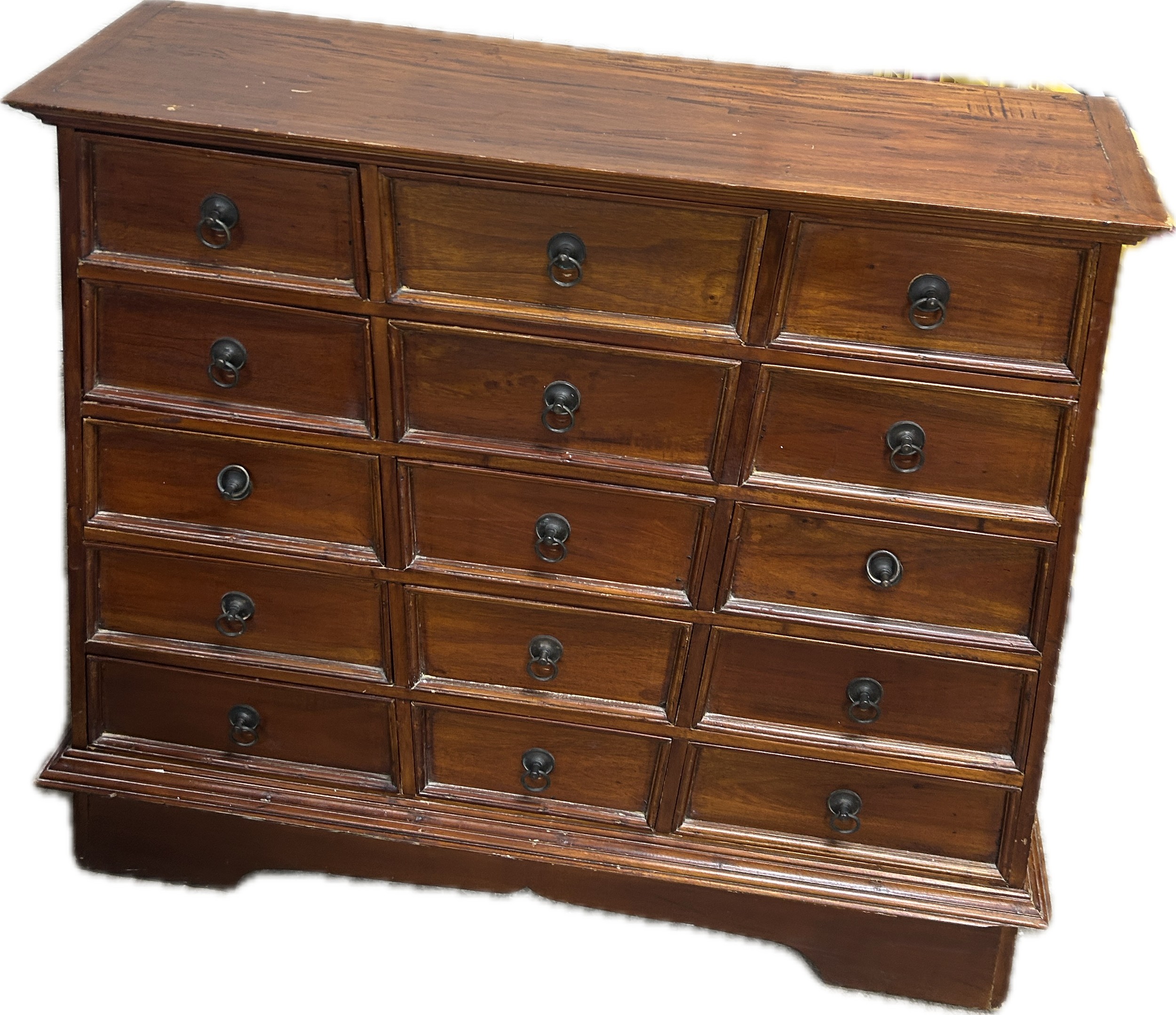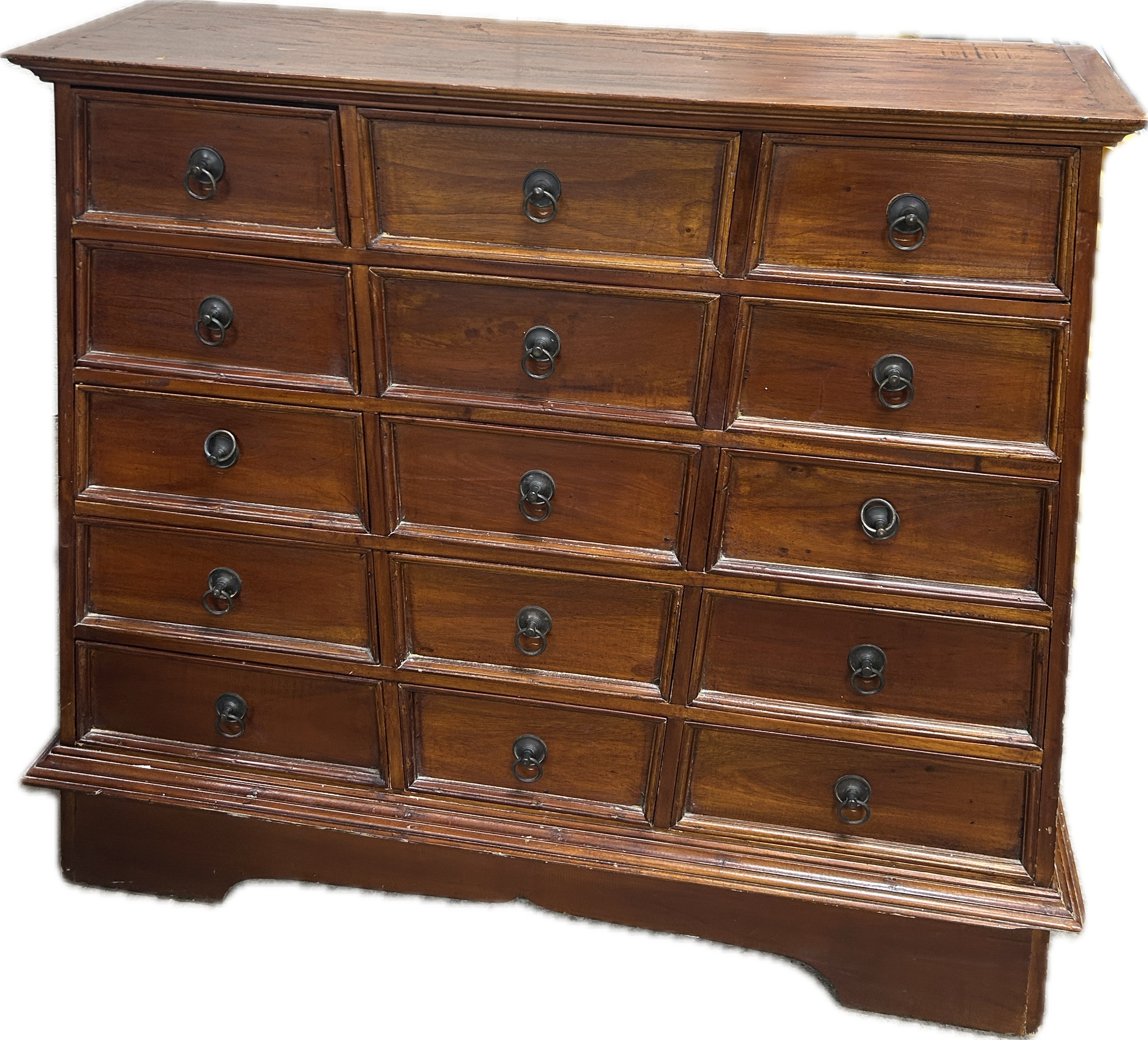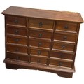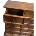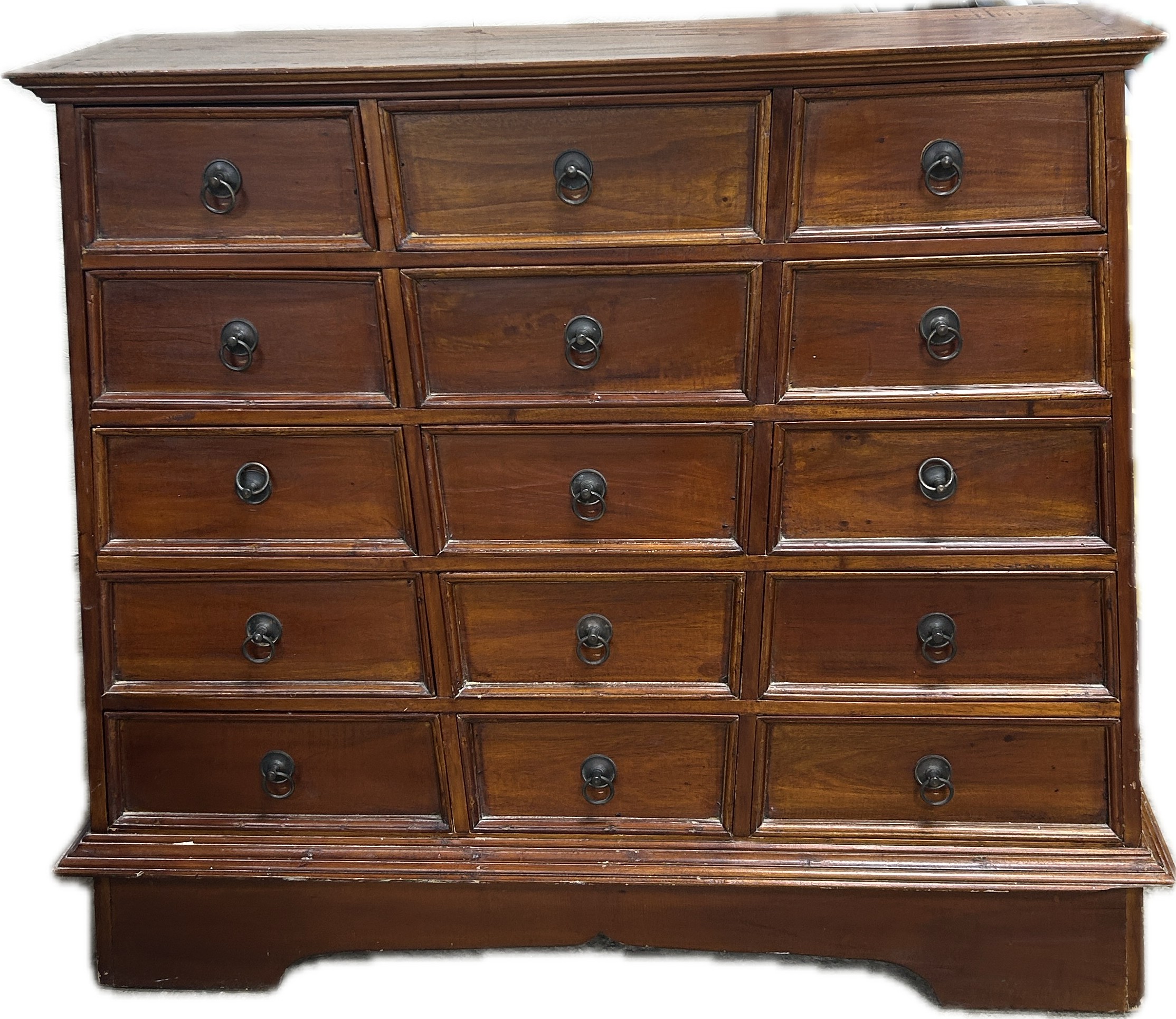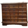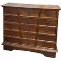 Vintage mahogany apothecary bank of drawers measures approximately: 42 inches tall x 44 wide and 16 deep