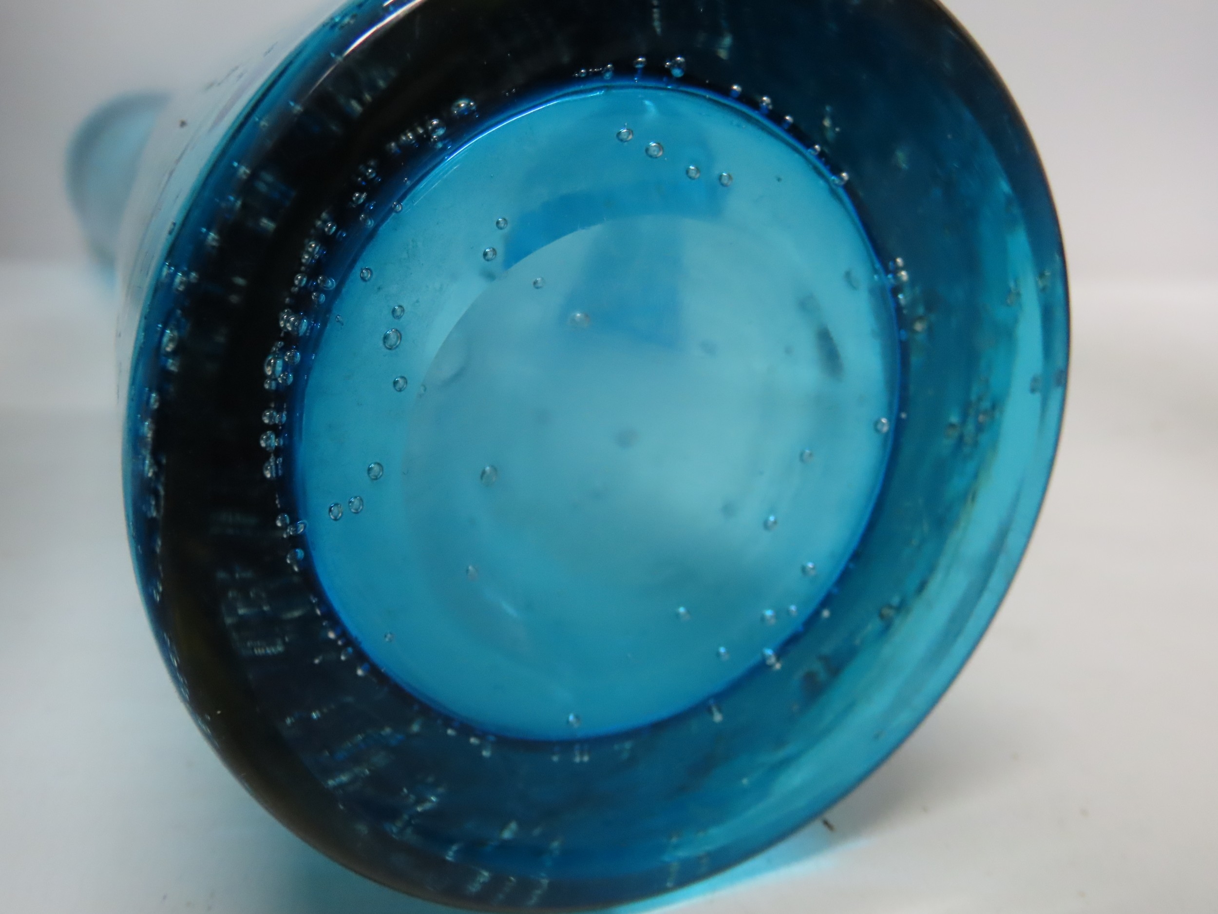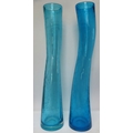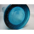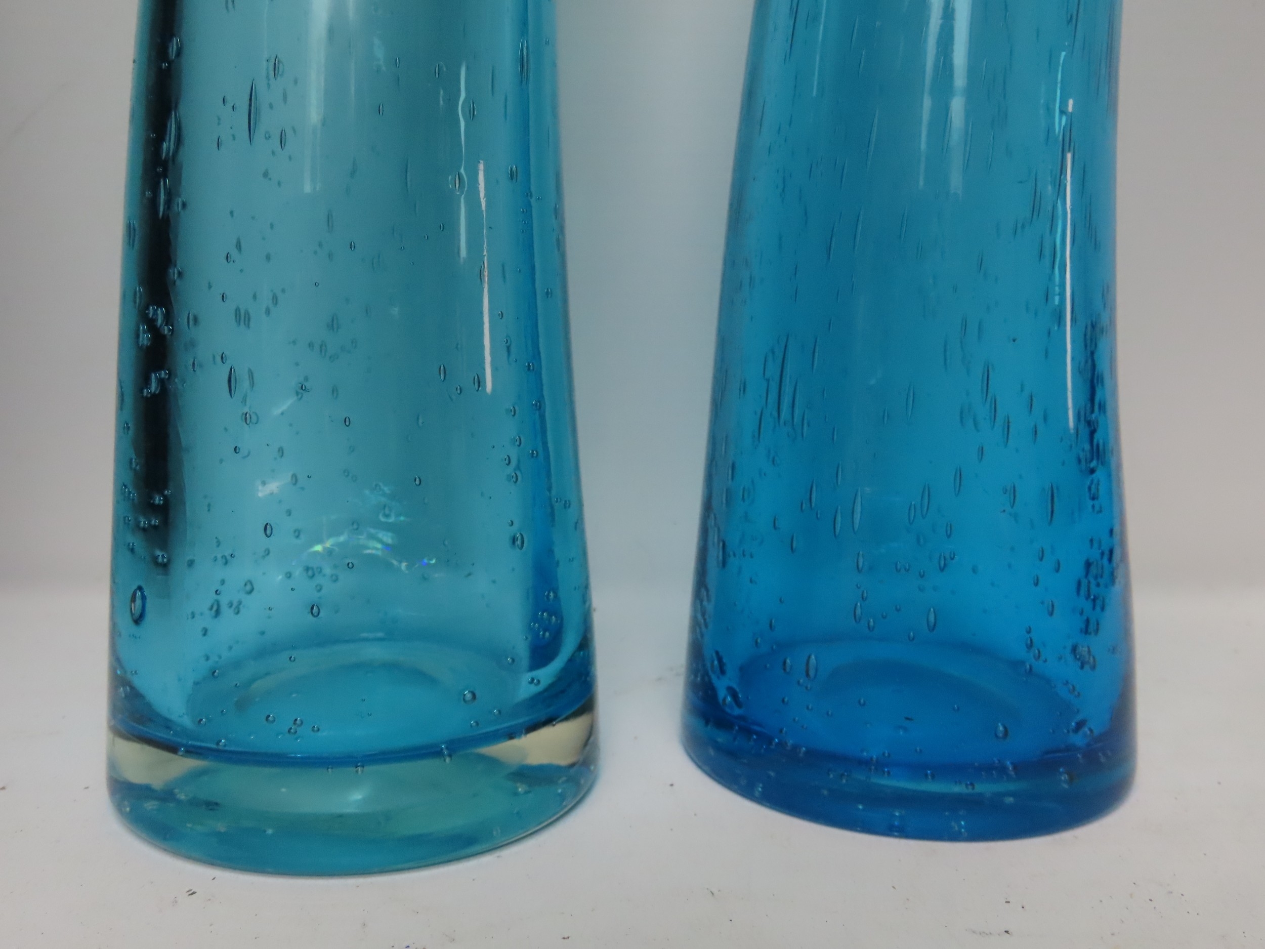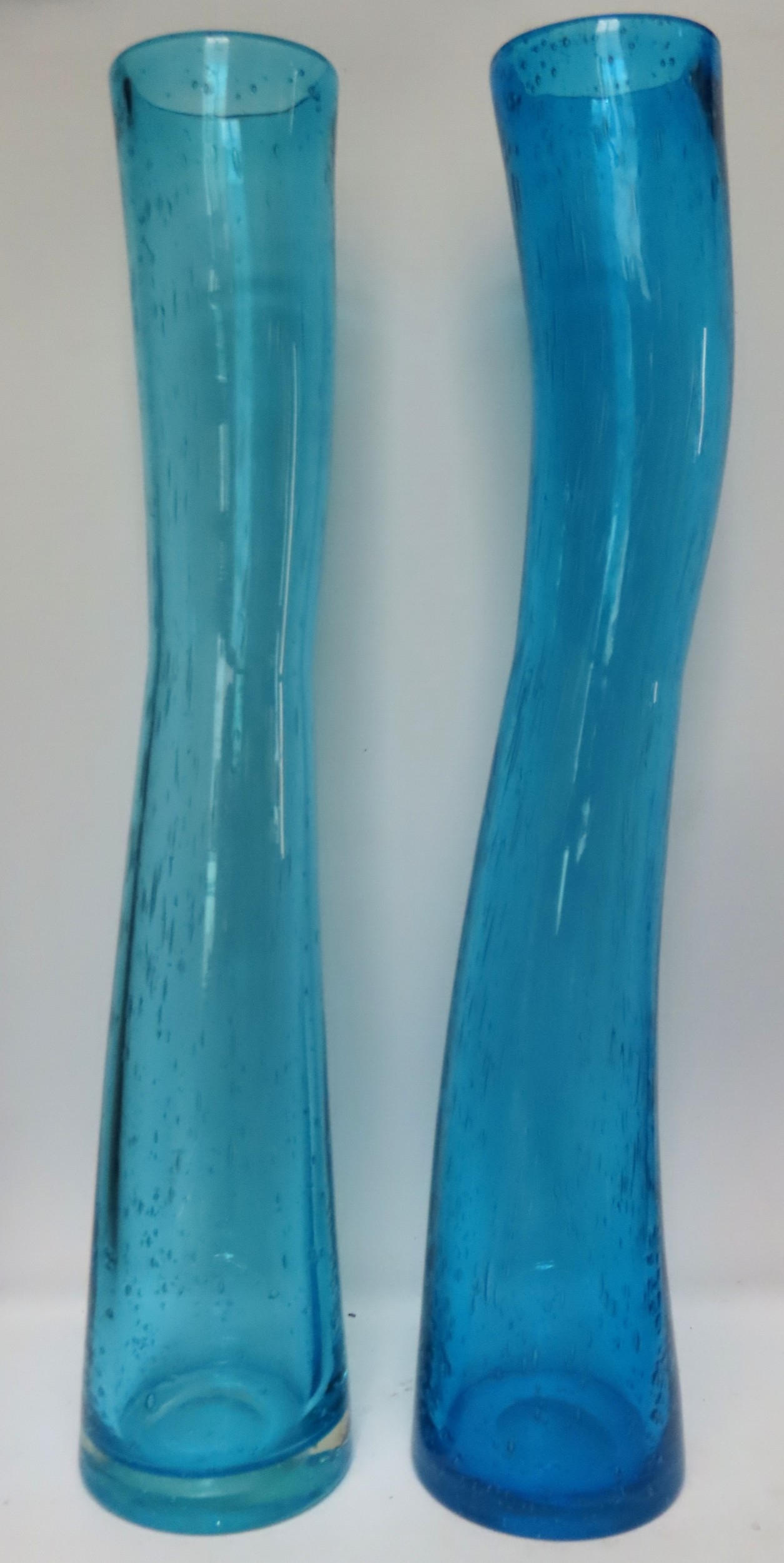 A near pair of tall Scandinavian turquoise art glass bubble vases, 15 3/4" tall.