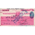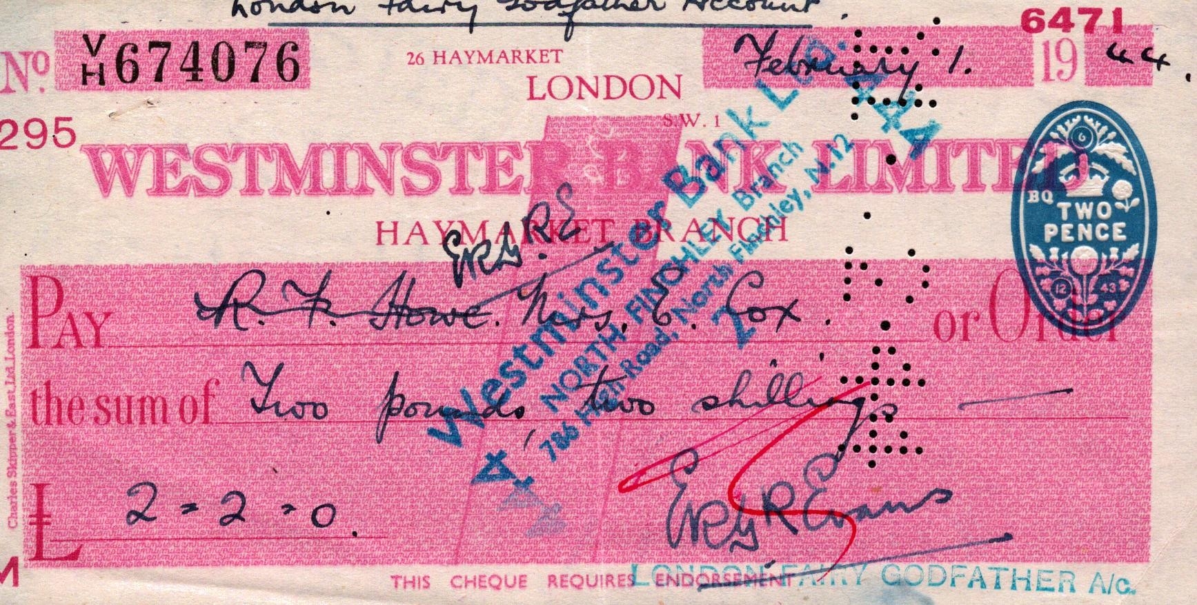 Edward Evans (Antarctic Explorer) signed cheque dated February 1st, 1944.