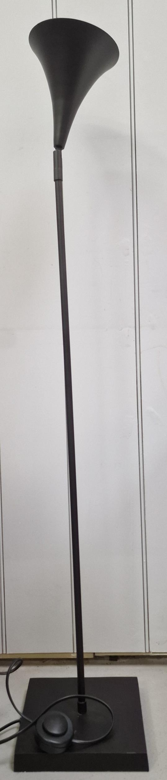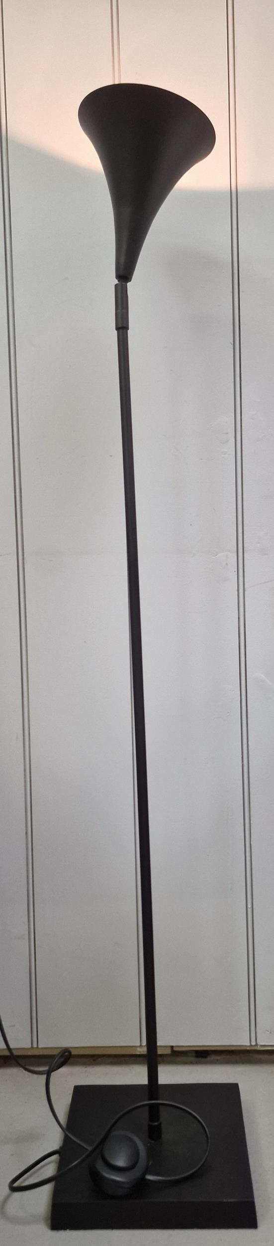A tall black floor lamp, with adjustable head. PAT test pass & functionality test indicates in working order. Height 120cm.
