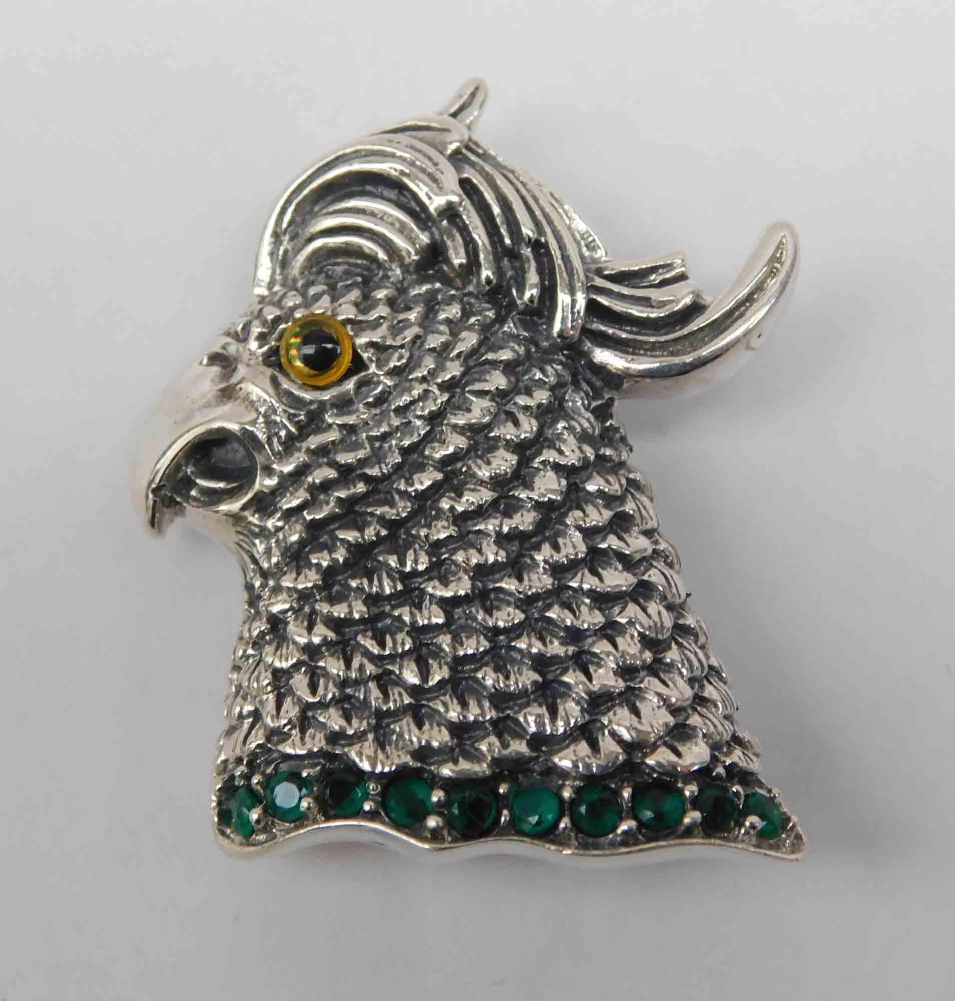 Silver - stone set parrot brooch