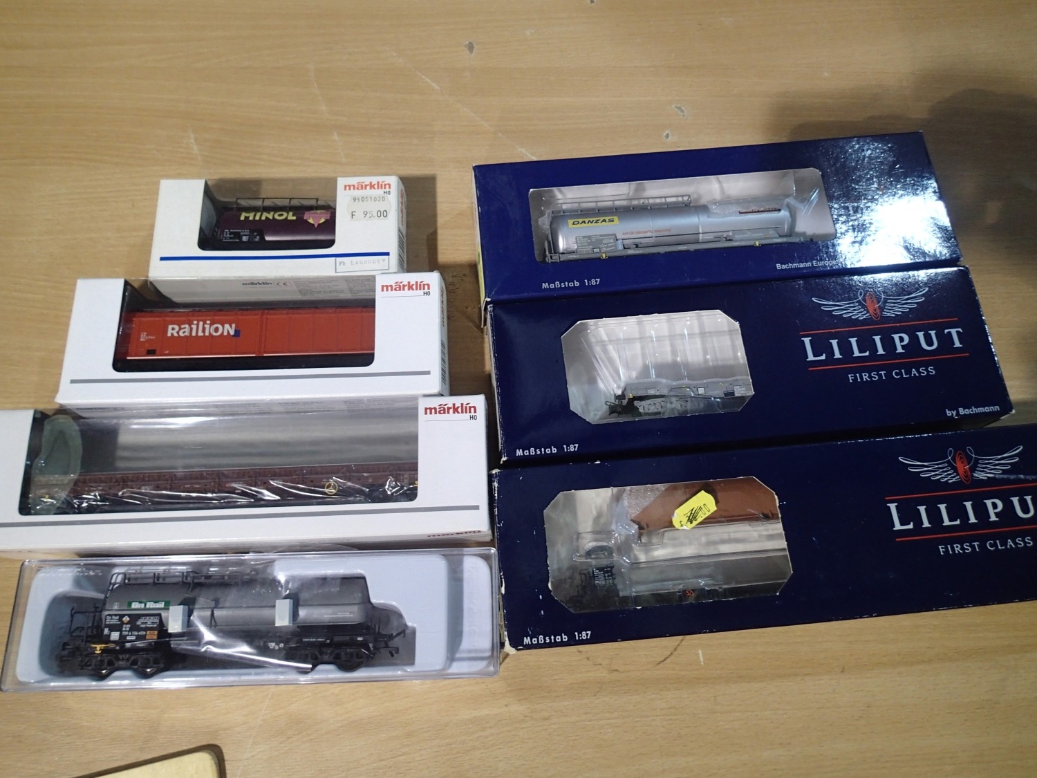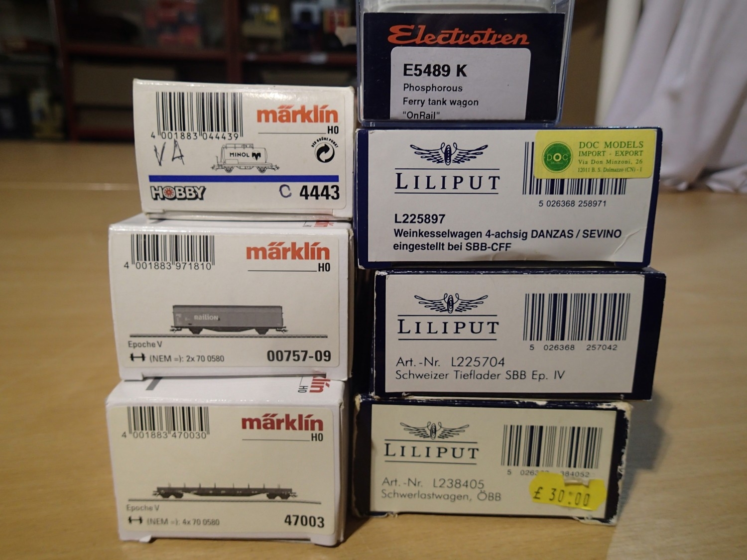 HO scale seven continental wagons from Marklin, LS models, Electrotren, Liliput, mostly excellent condition, boxed. UK P&P Group 2 (£24+VAT for the first lot and £5+VAT for subsequent lots)