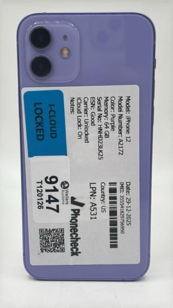 APPLE IPHONE 12 / A2172 / 64GB / IMEI: 355541829756950 / I-CLOUD LOCKED