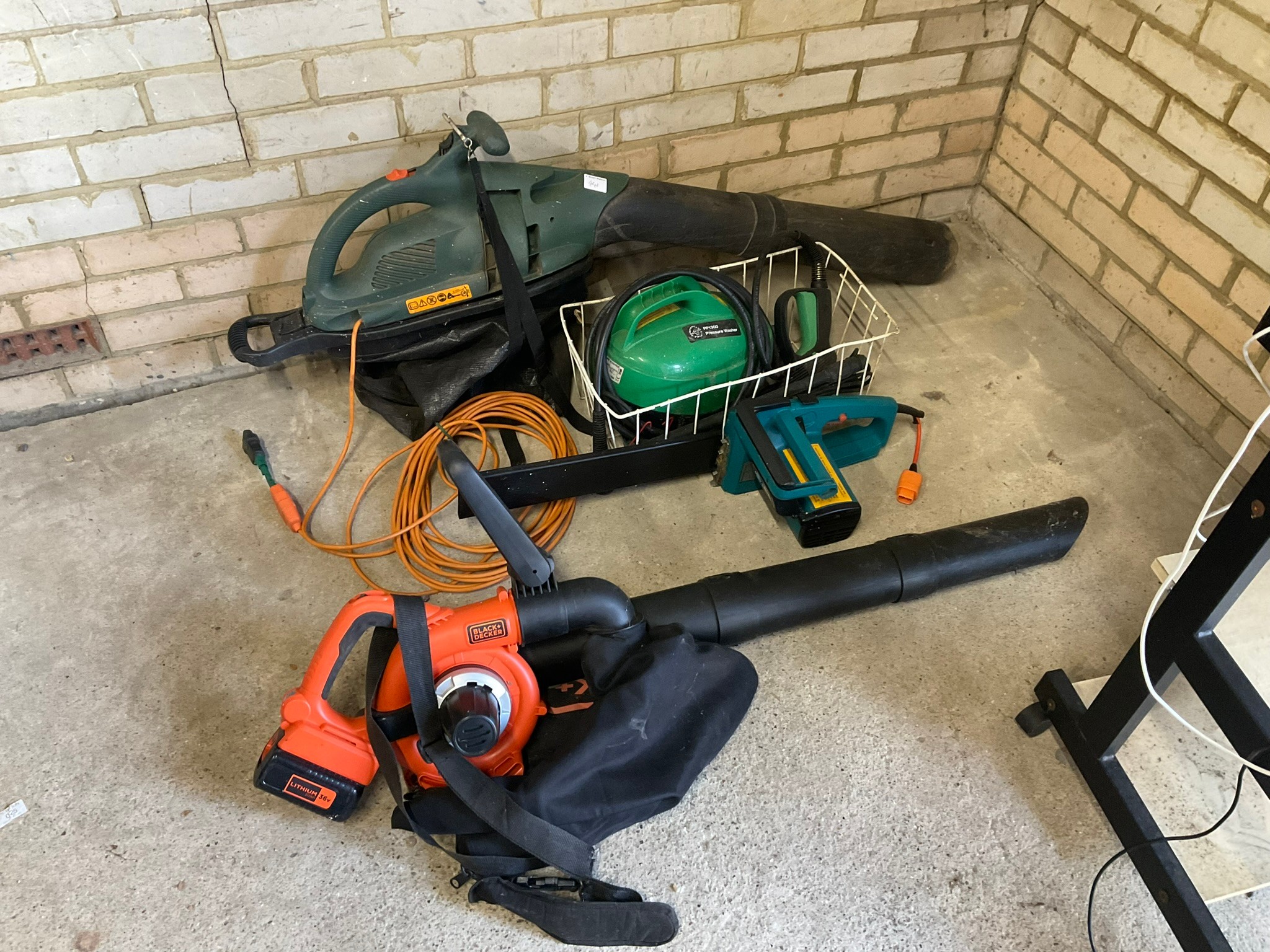 Black and decker cordless leaf blower, pressure washer, electric chainsaw and electric blower