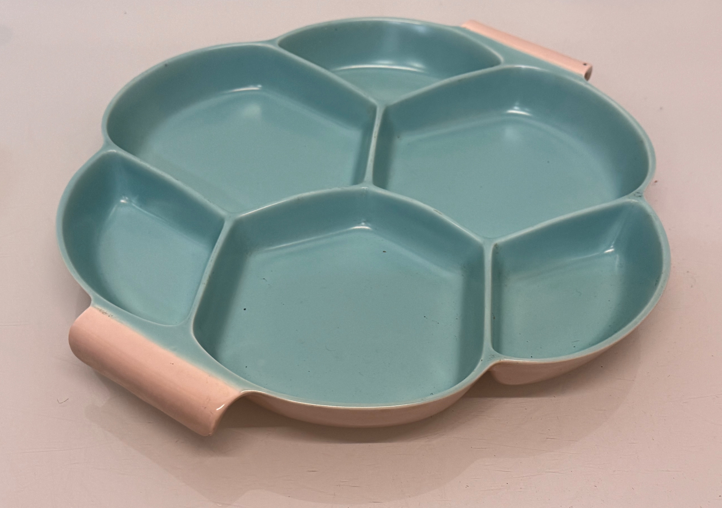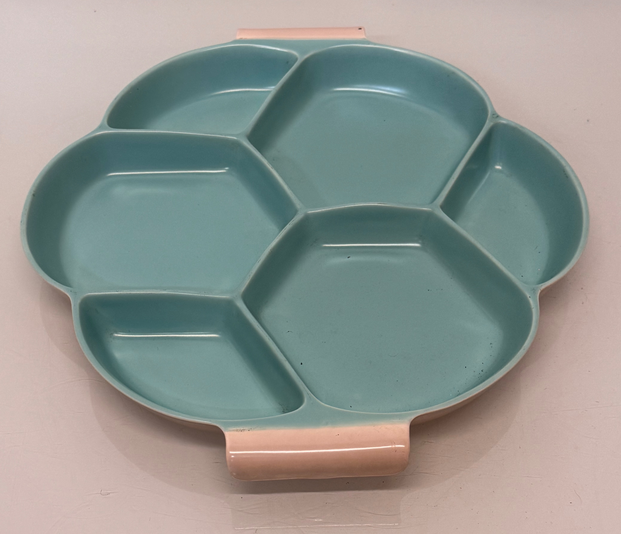 Poole Pottery, mid century ceramics, a Twintone serving platter, 34 cm wide.