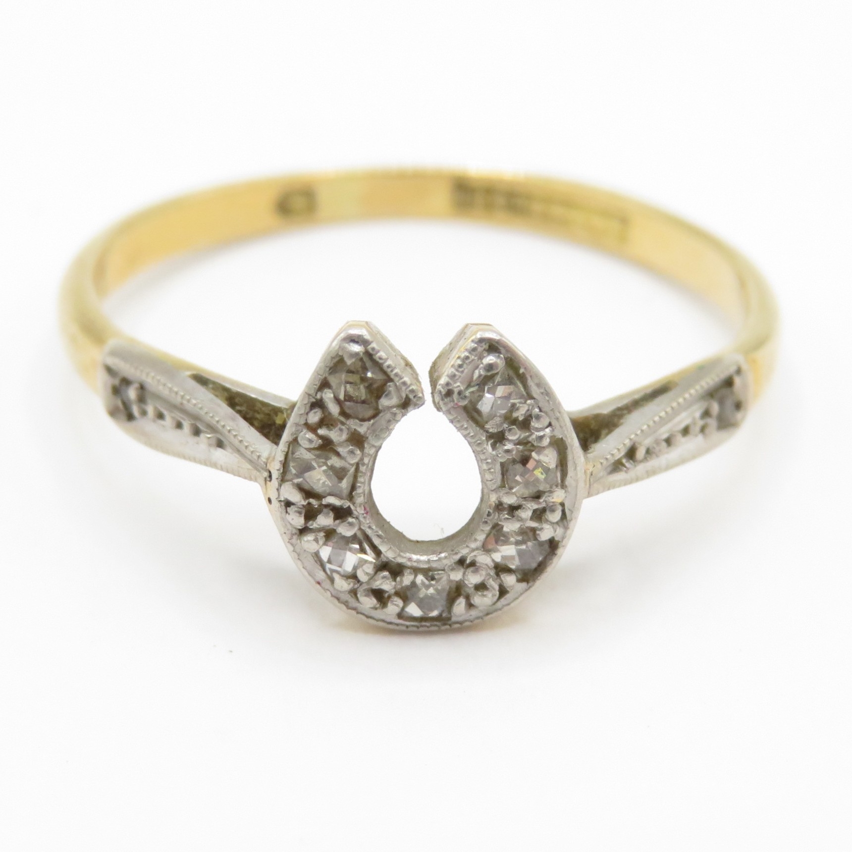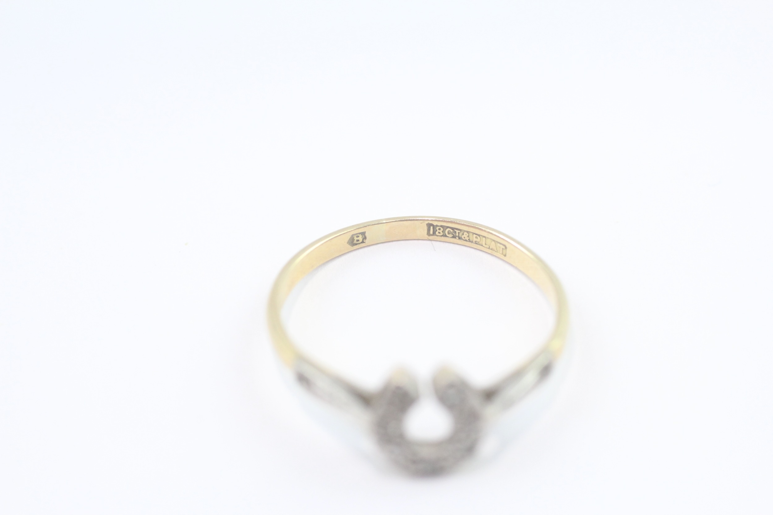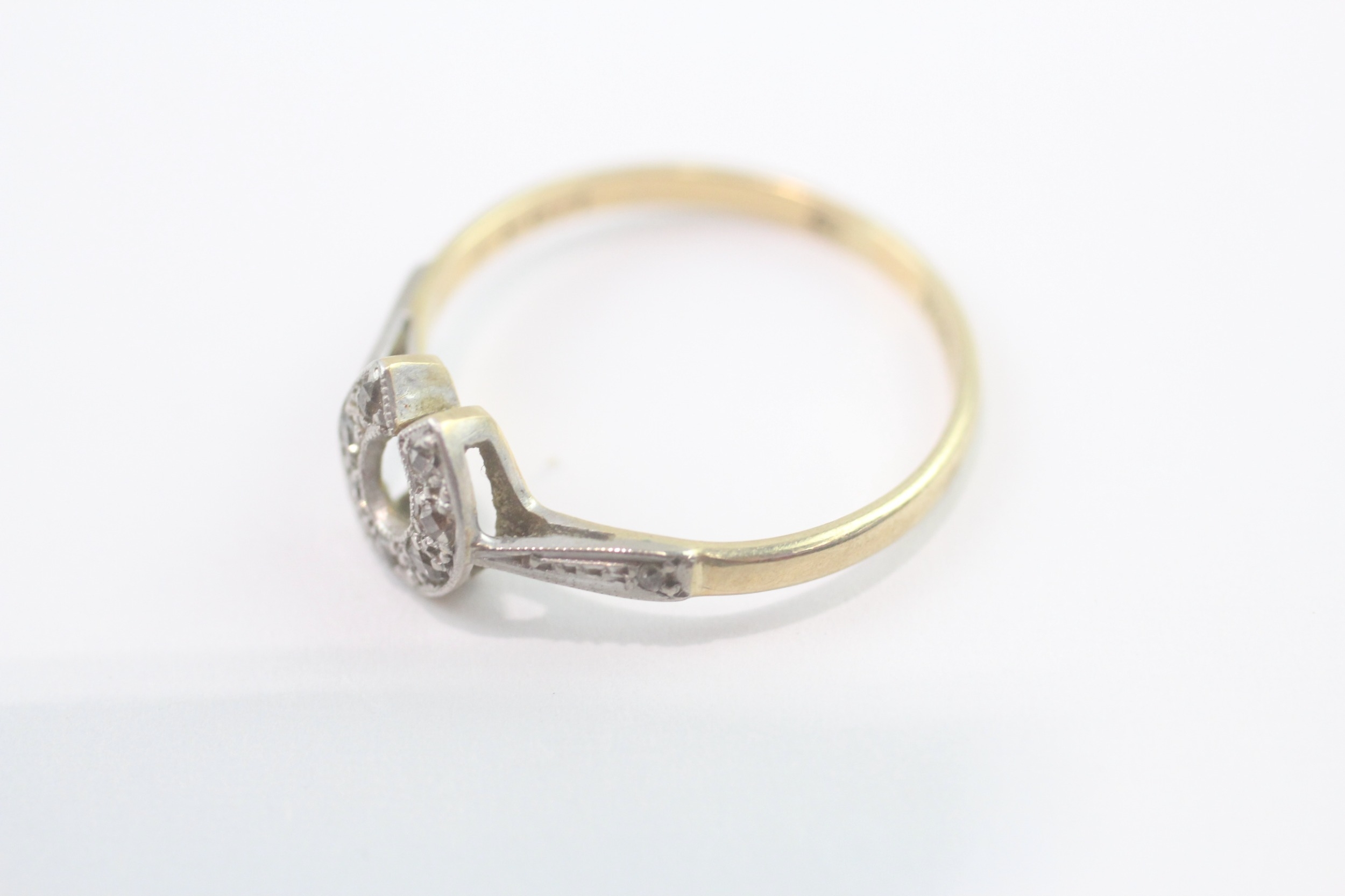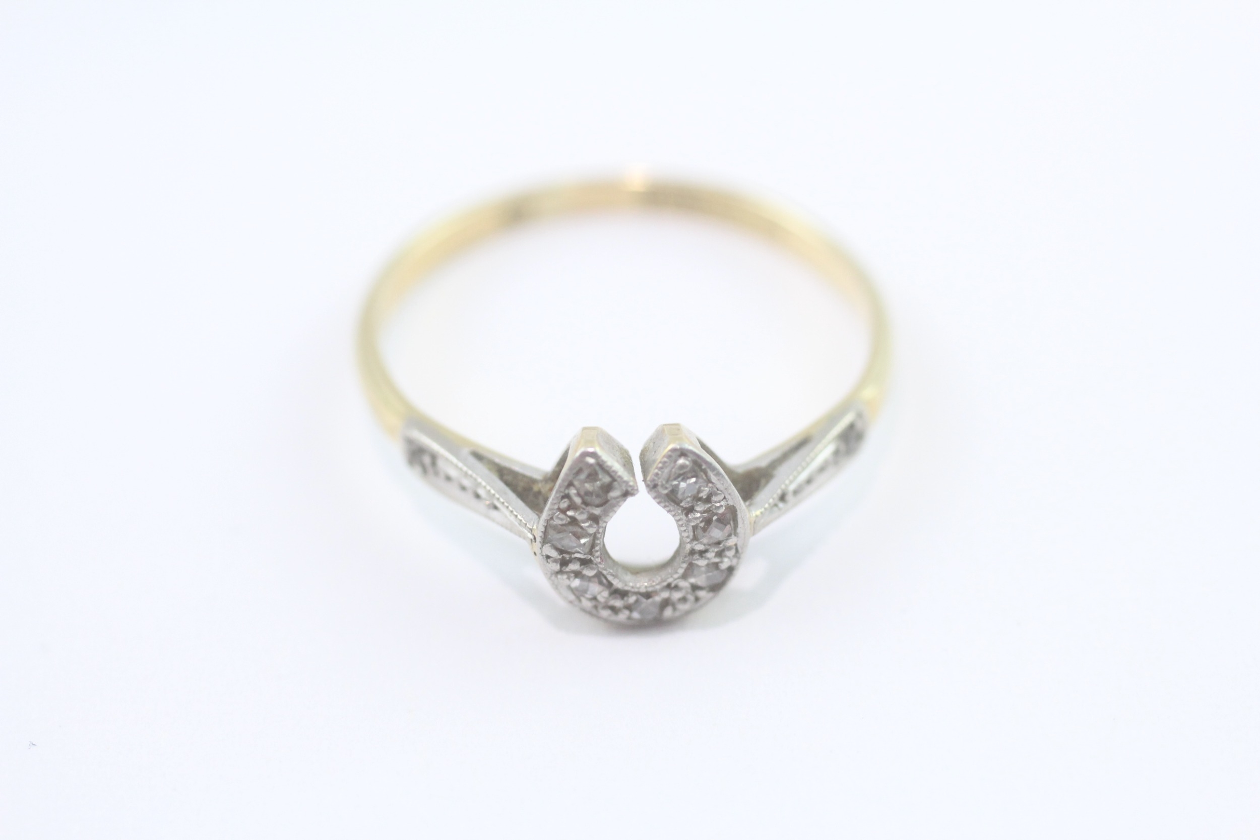 18ct gold and platinum diamond horseshoe ring (2.2g) Size Q