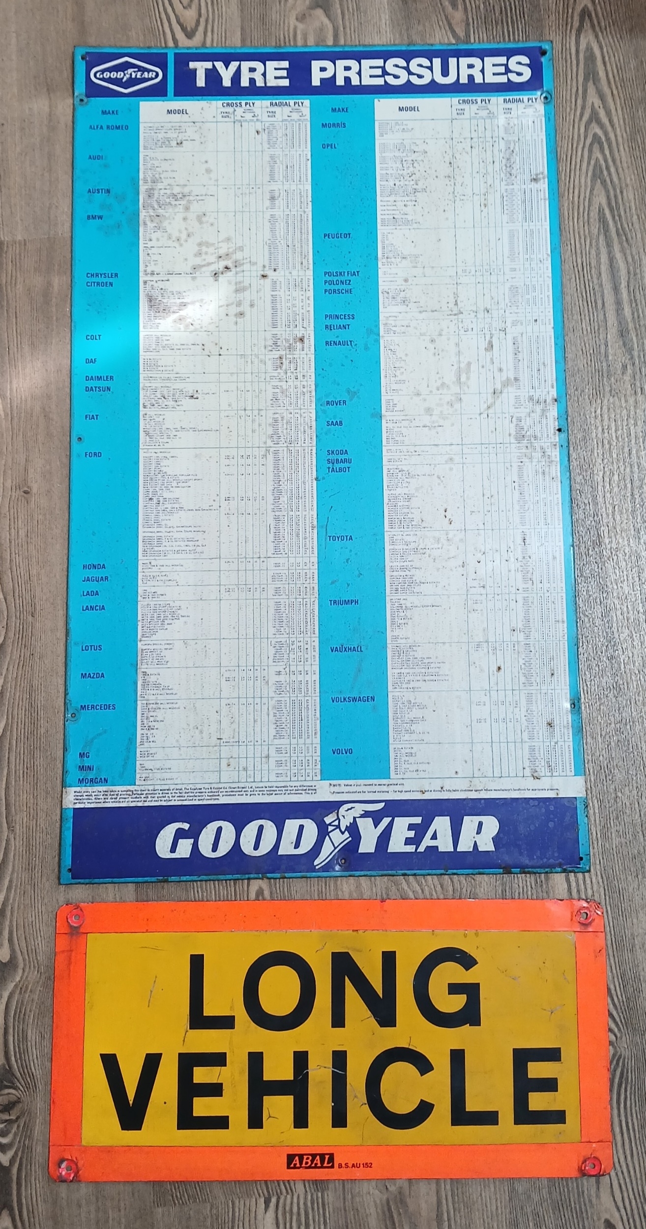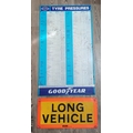 A Good Yea tyre pressures chart and a long vehicle sign.