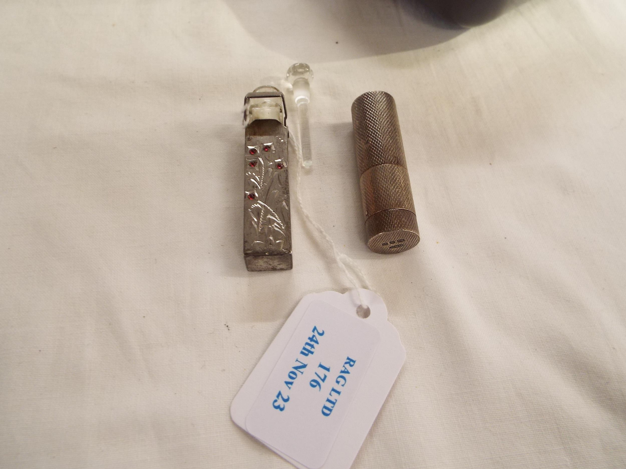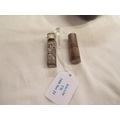 A London silver lipstick holder and a white metal perfume bottle