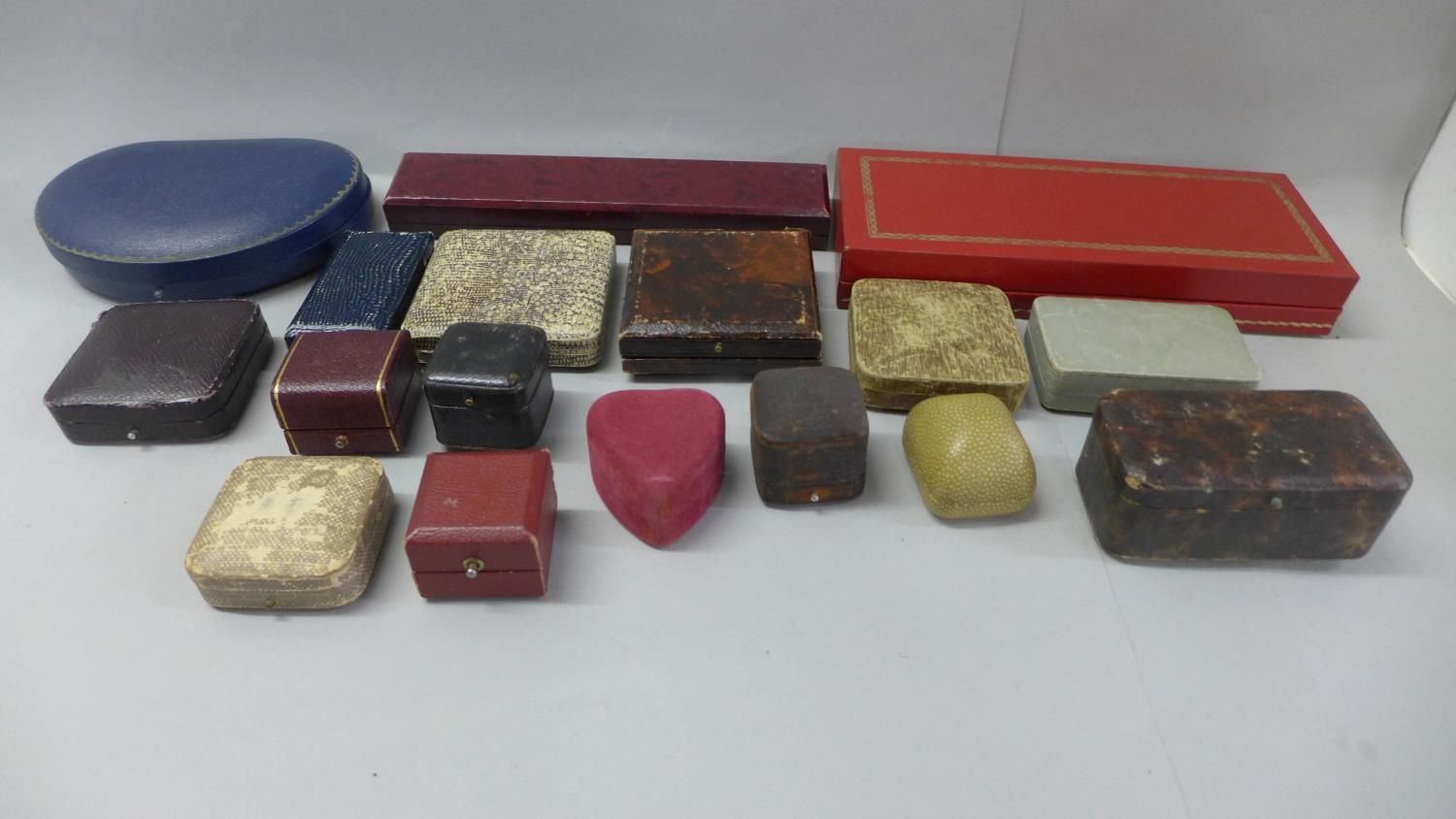 A collection of seventeen vintage jewellery boxes including five ring boxes