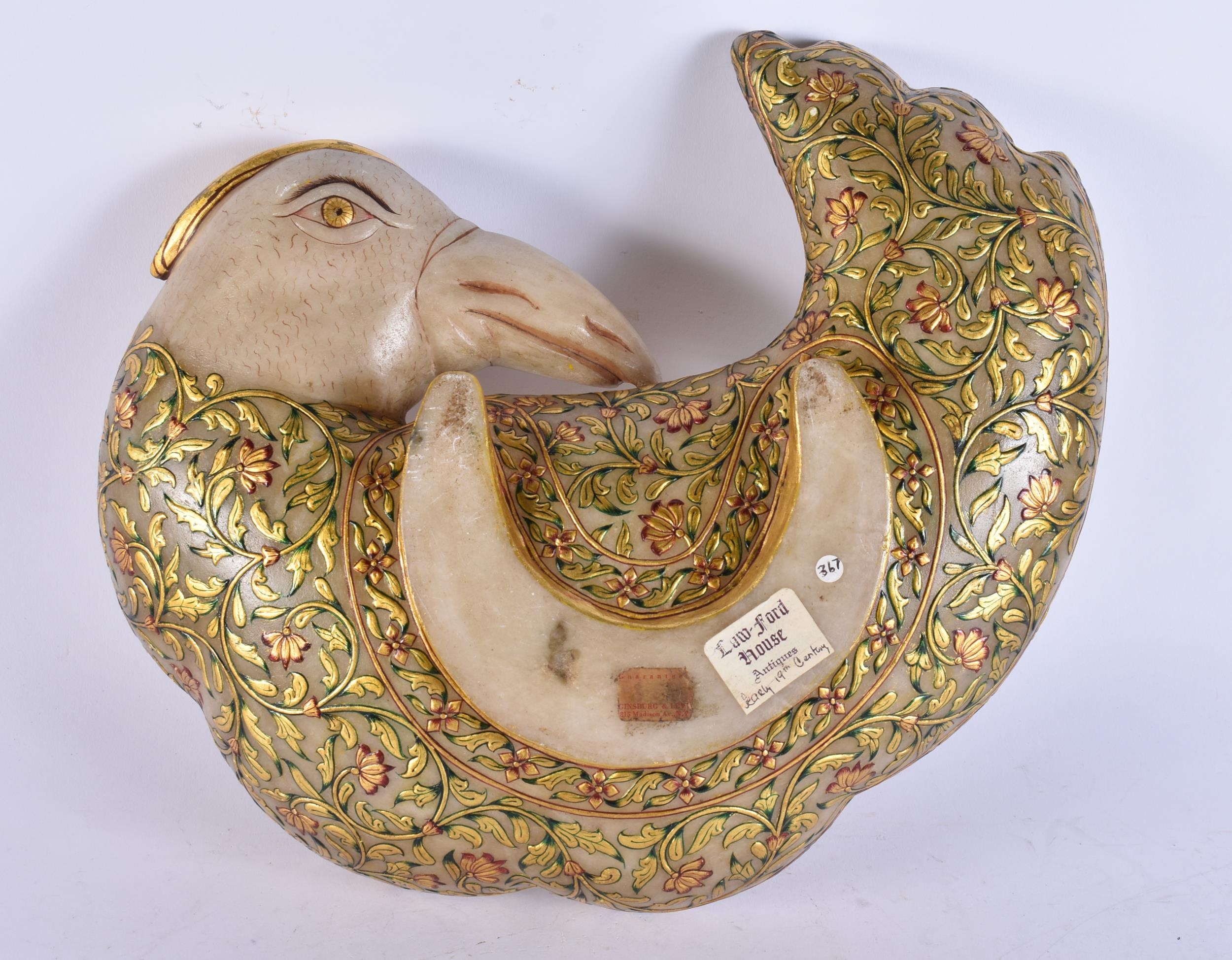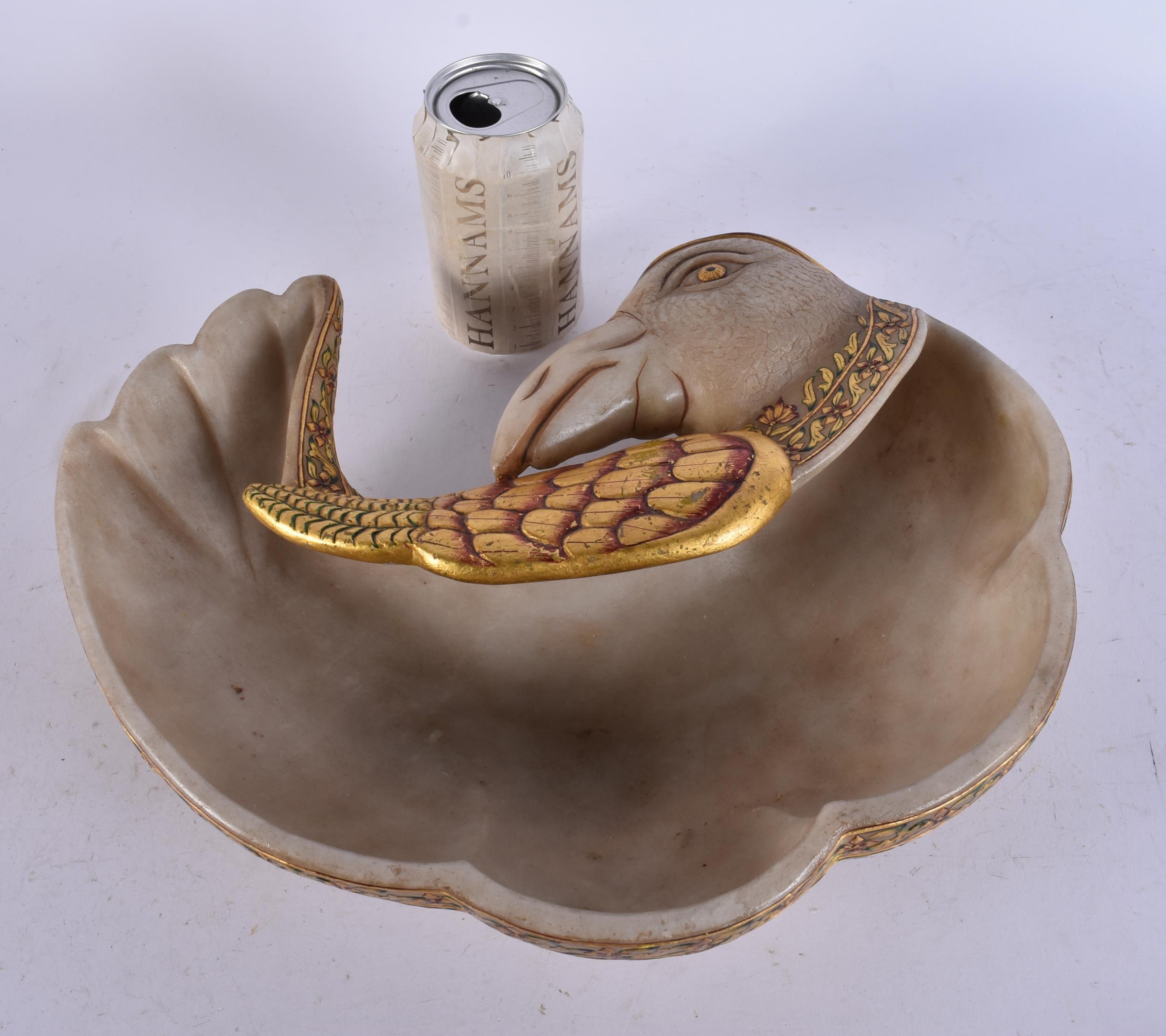 A FINE AND RARE LARGE 19TH CENTURY INDIAN RAJASTHANI ENAMELLED BOWL formed as a bird. 34 cm x 25 cm.