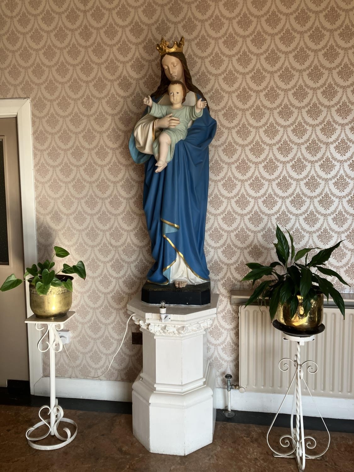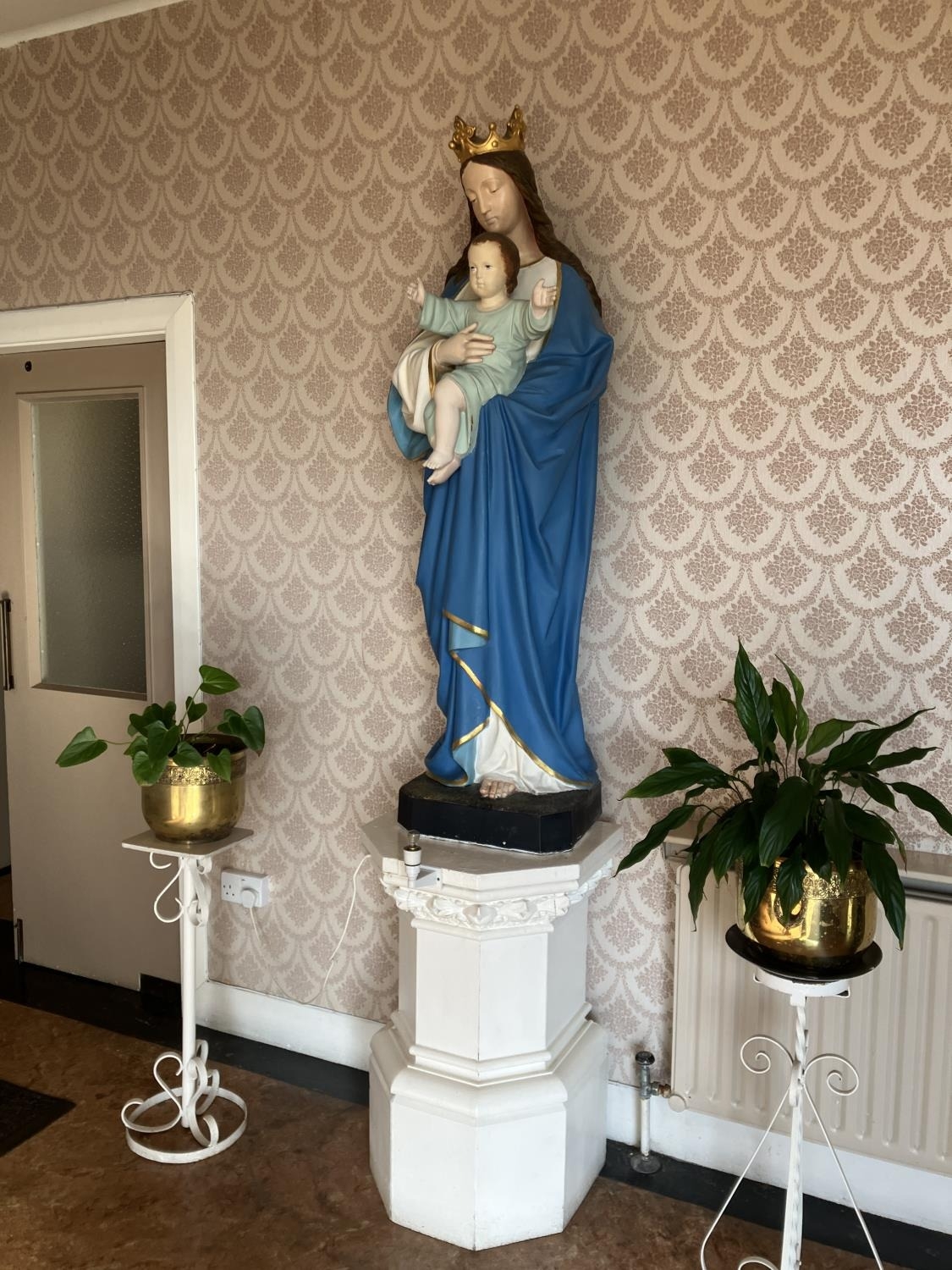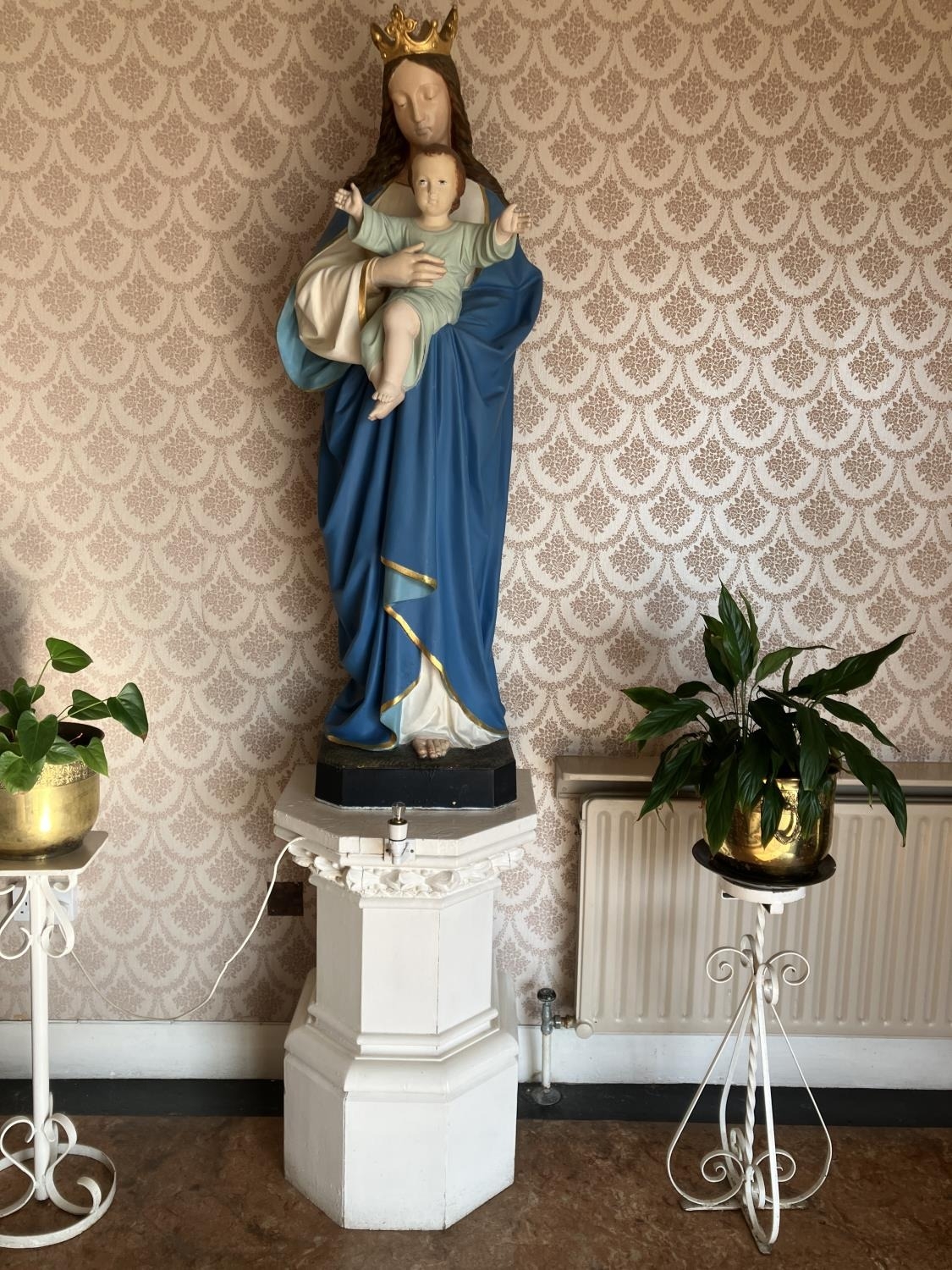 A large statue of our Lady and Child together with painted pedestal. H. of statue -156cm, overall height 240cm.