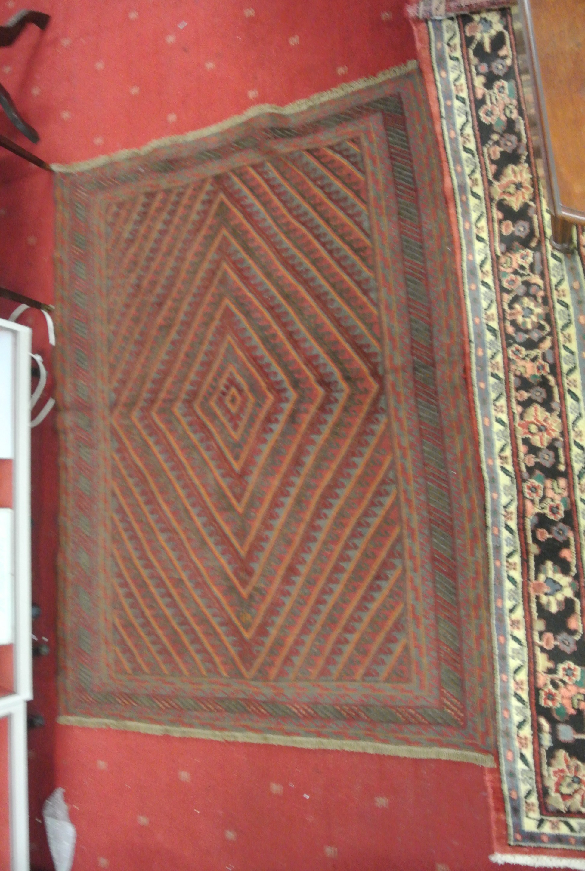 Hand woven wool pile Afghan Mashwani kilim with embossed pattern