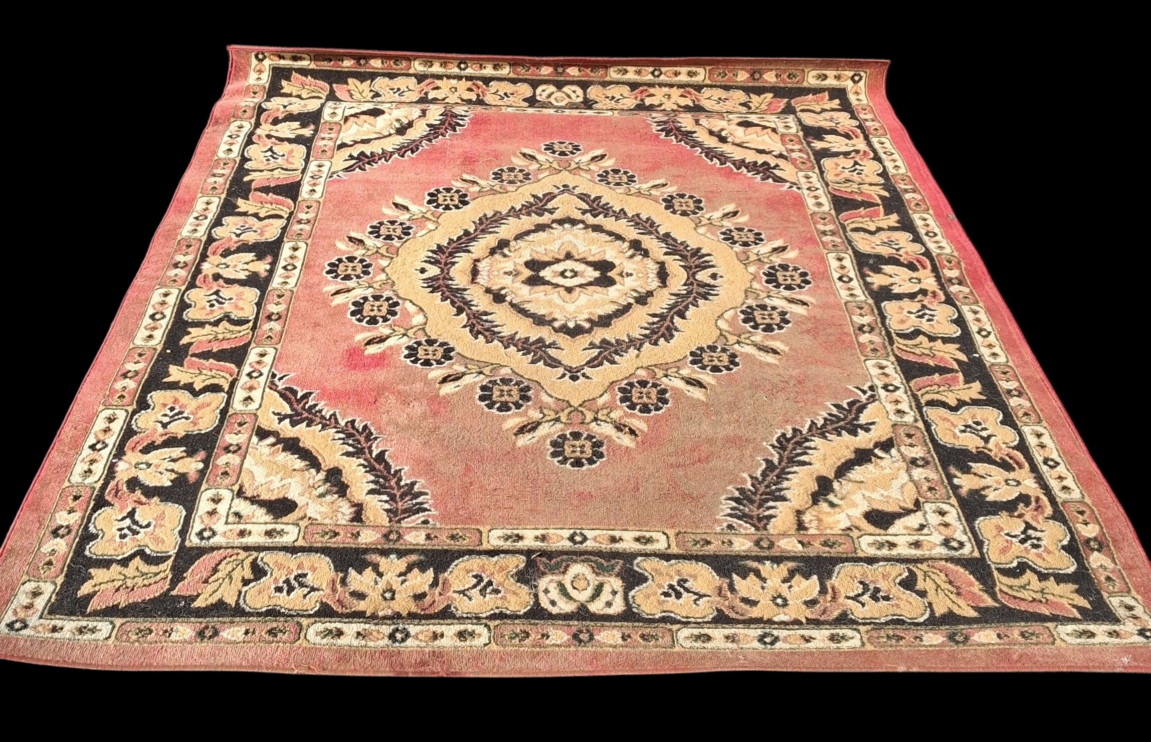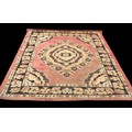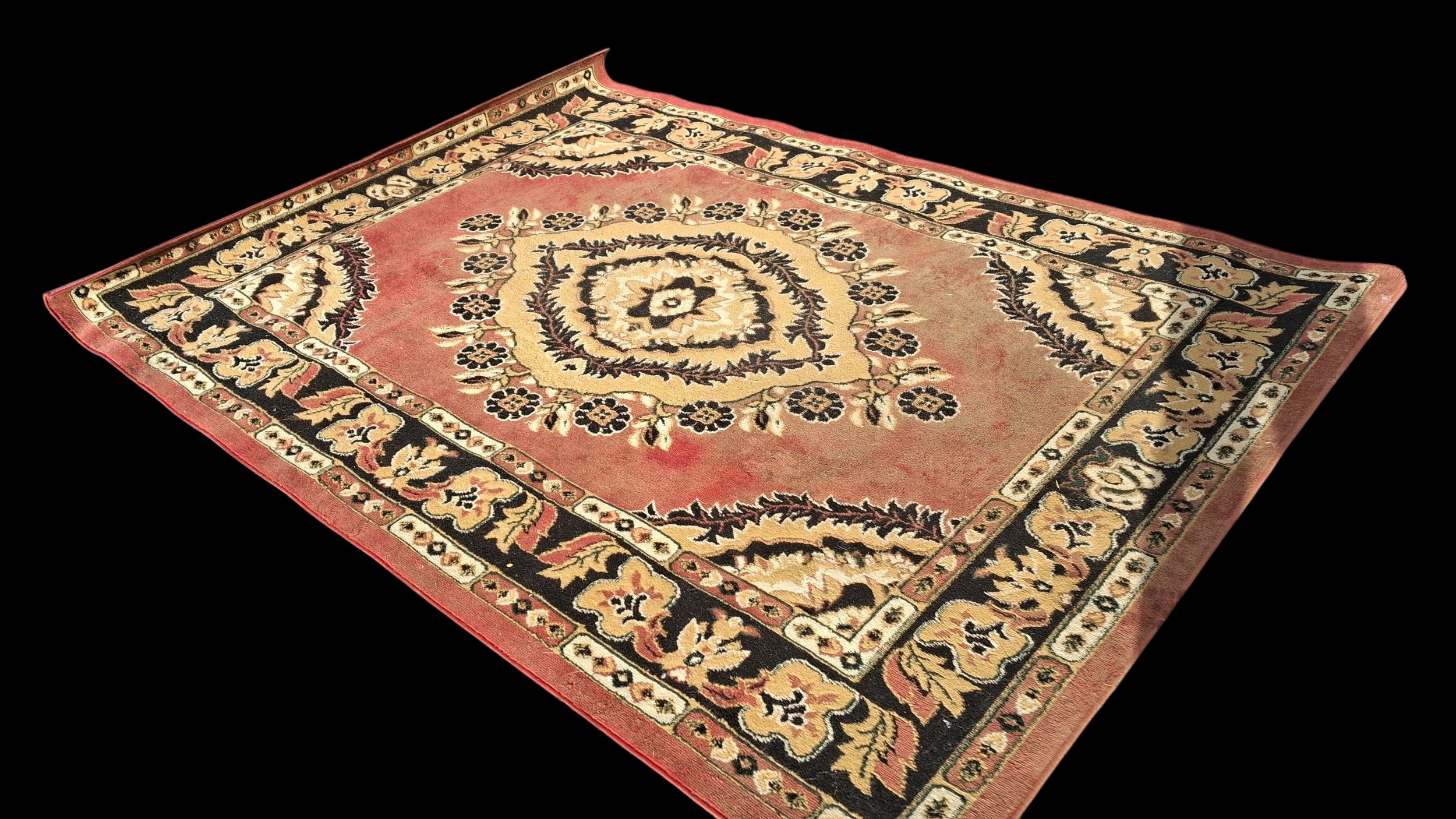 A RED PATTERNED RUG MEASURING 180 x 250