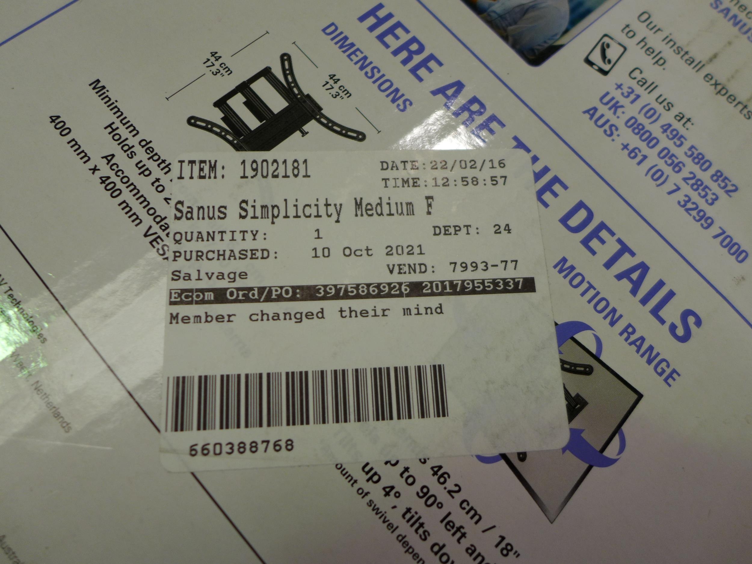 Sanus Medium Tv Wall Mount , (249-410) * This lot is subject to vat