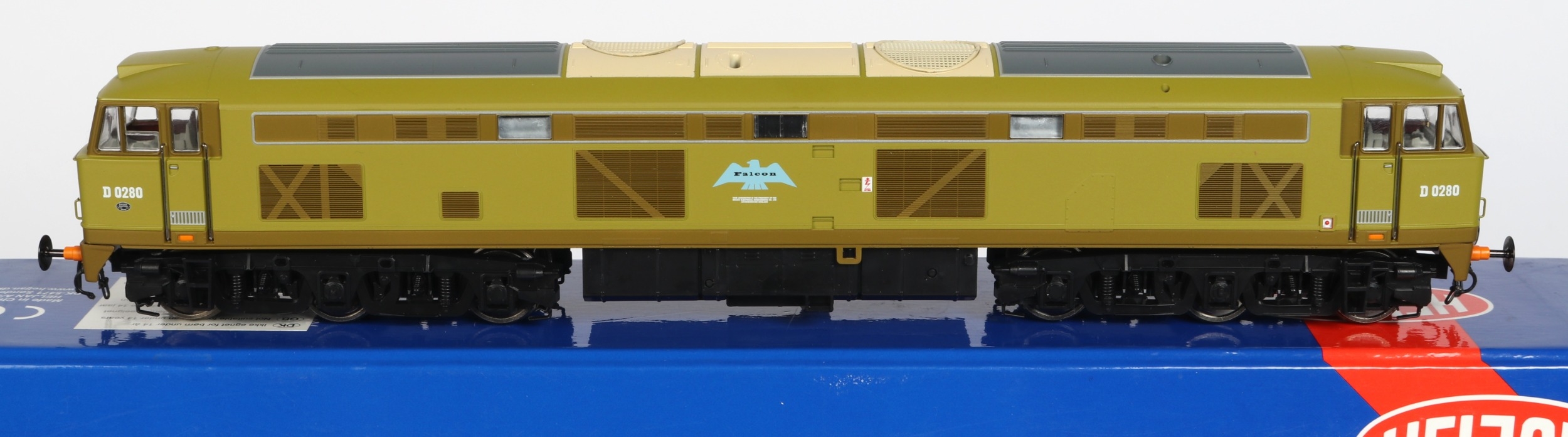 A Heljan OO gauge Brush Co-Co diesel locomotive prototype Falcon D0280. In lime green and light brown livery. (53001). A Limited Edition of 800 (785). Boxed, contents Mint. £70-100