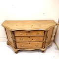 Unusual antique pine sideboard with serpentine front on bun feet - 152cm x 55cm x 85cm