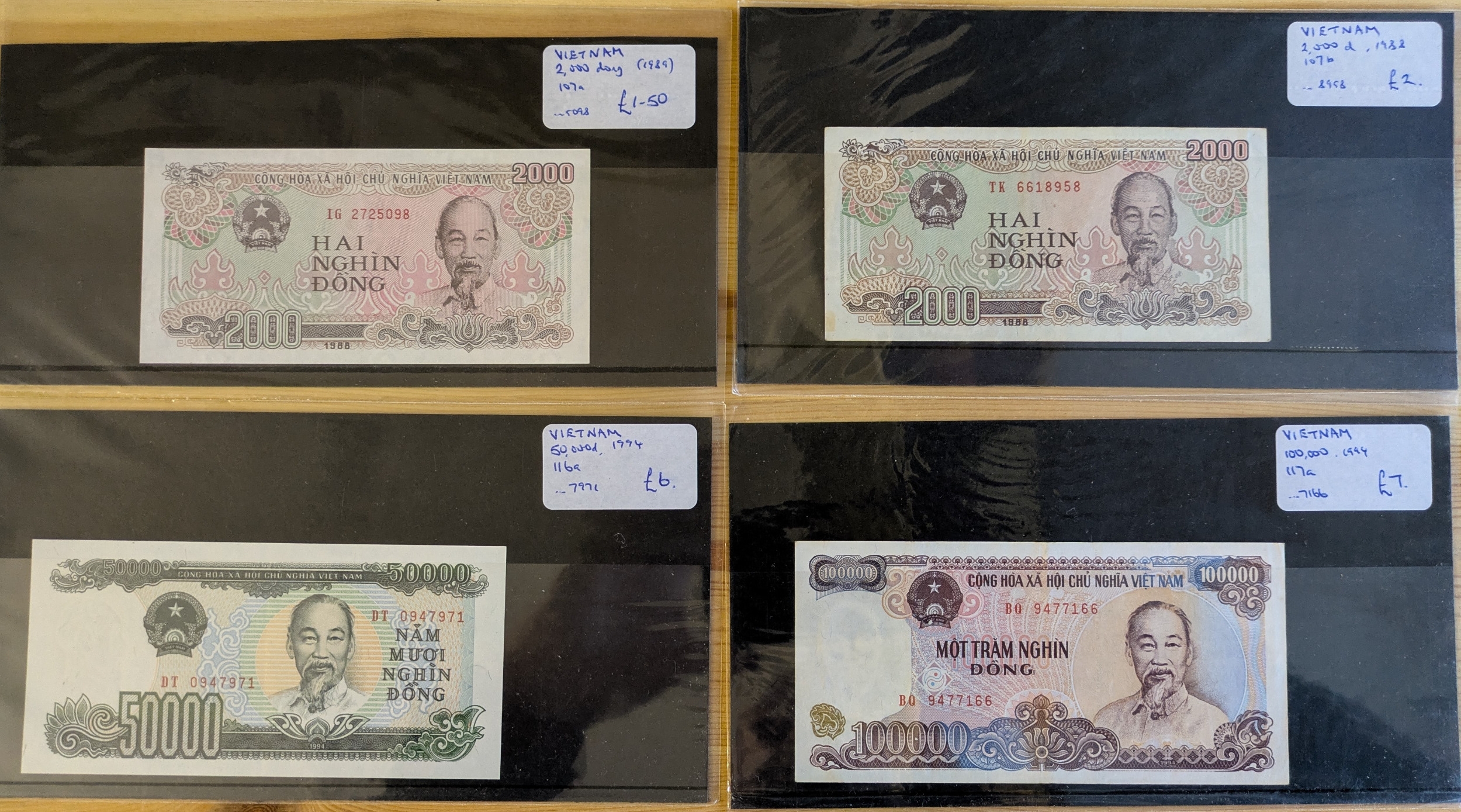 BanknotesVietnam; 1987-1994 seln. of 10 different notes, plus 4 duplicates. Retail £27¼.