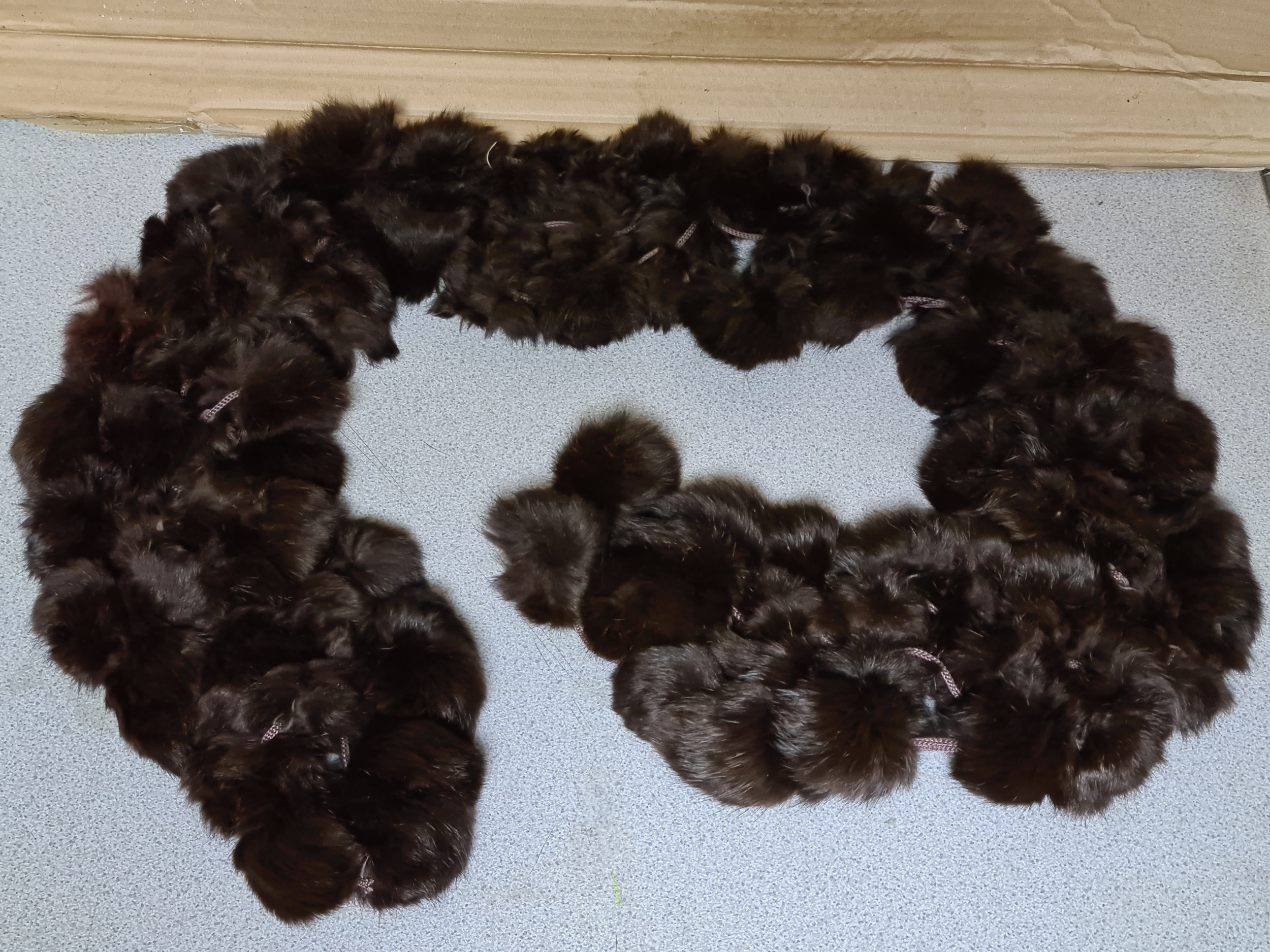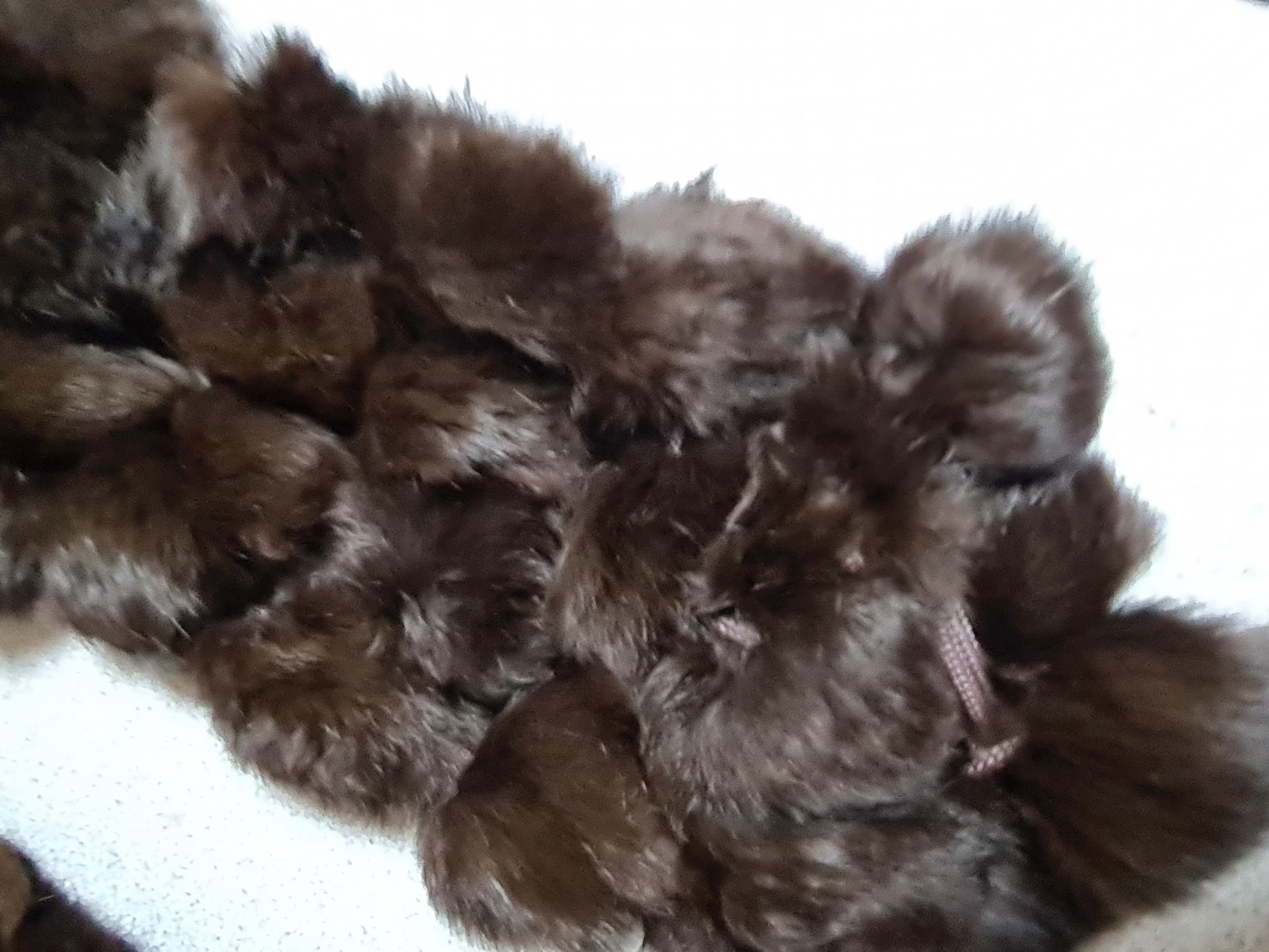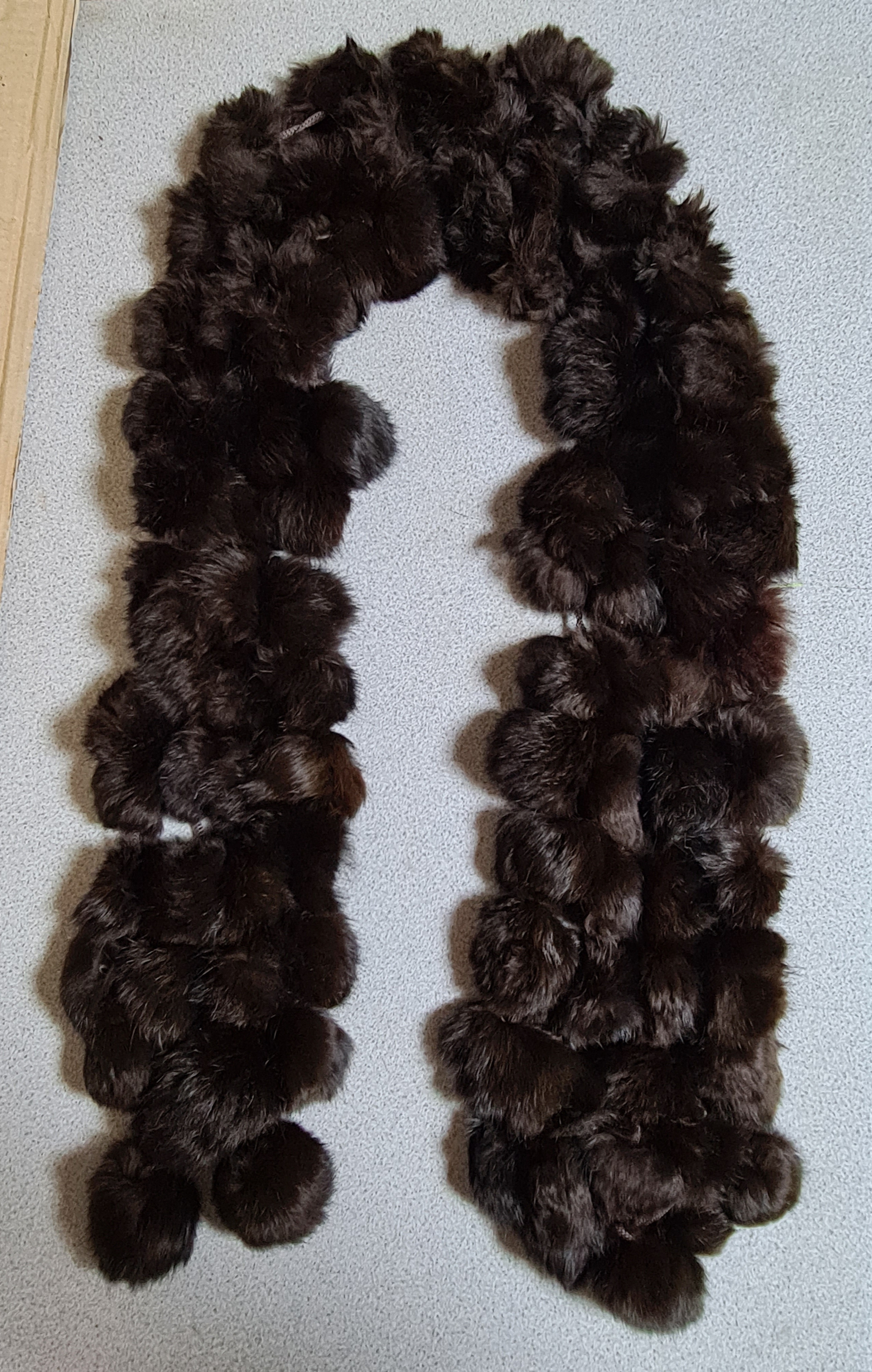 Ladies vintage brown Fur Stole, possibly Rabbit Fur & a beige fur Pompom. Stole measures 150cm.