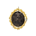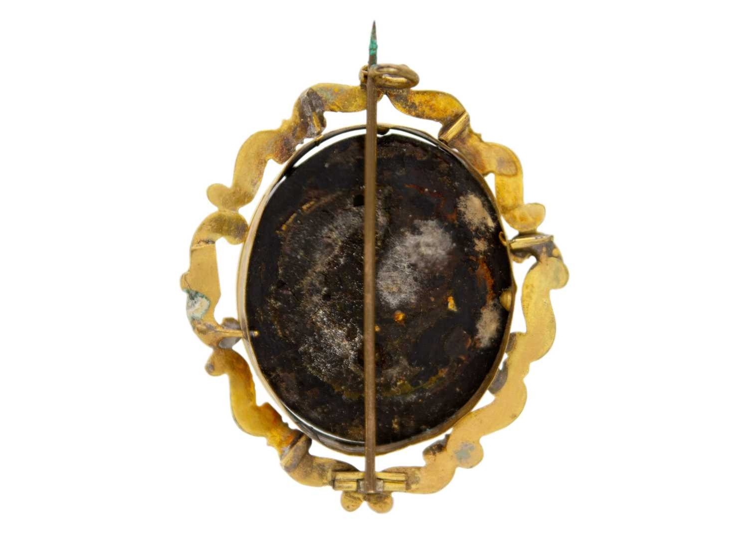 A Victorian jet cameo in high purity yellow gold frame. An oval 'Lily of the Valley' carving in jet, 4.8cm x 4cm, total weight 11.3g. Tests 18k gold.