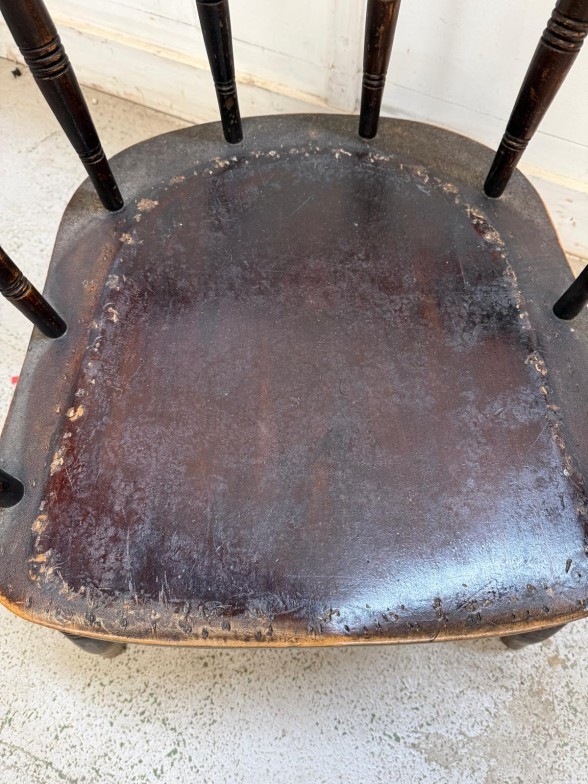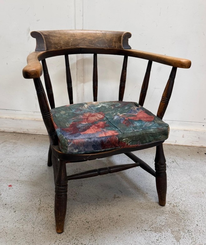 An oak captain's chair on turned legs