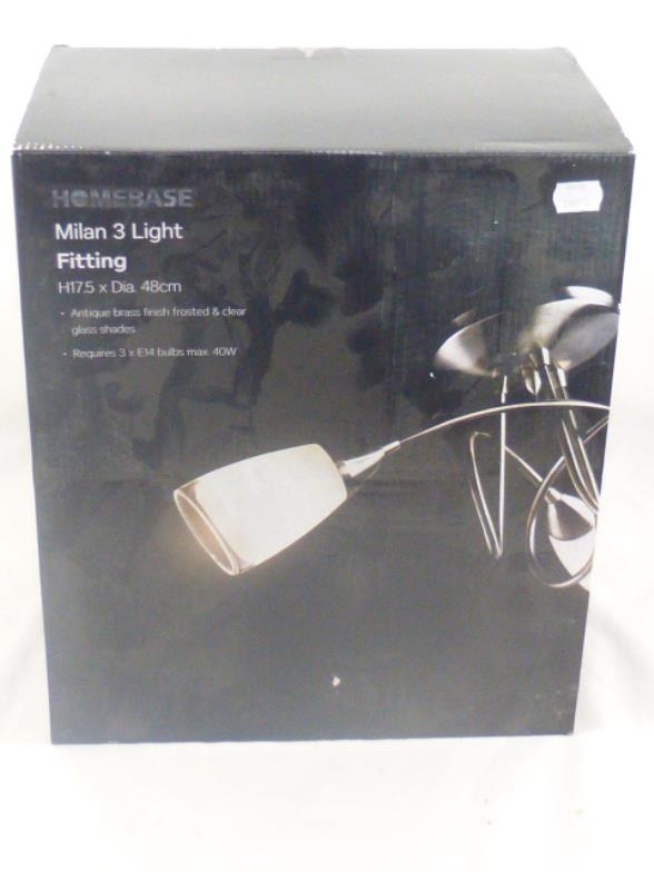 New Homebase Milan 3 Light Fitting with Brass Finish and Clear Glass Shades