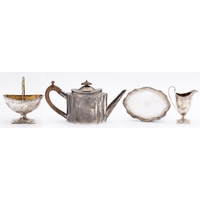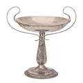 A George V silver fruit stand, with scrolling, bifurcated handles, on octagonal foot, 31cm h, by Henry Williamson Ltd, Birmingham 1911, 32oz
