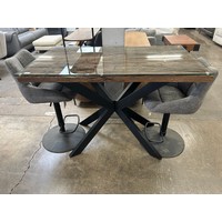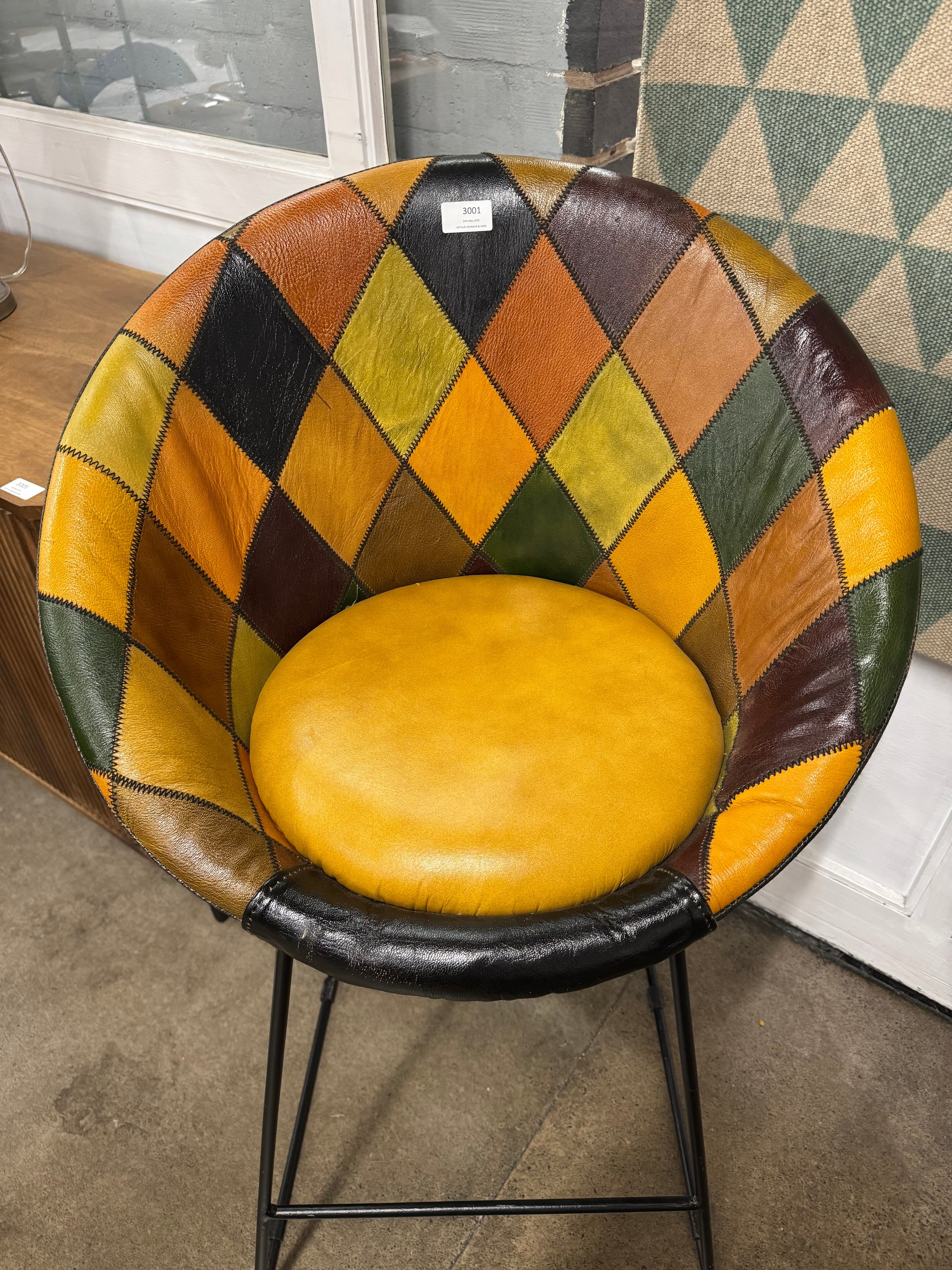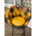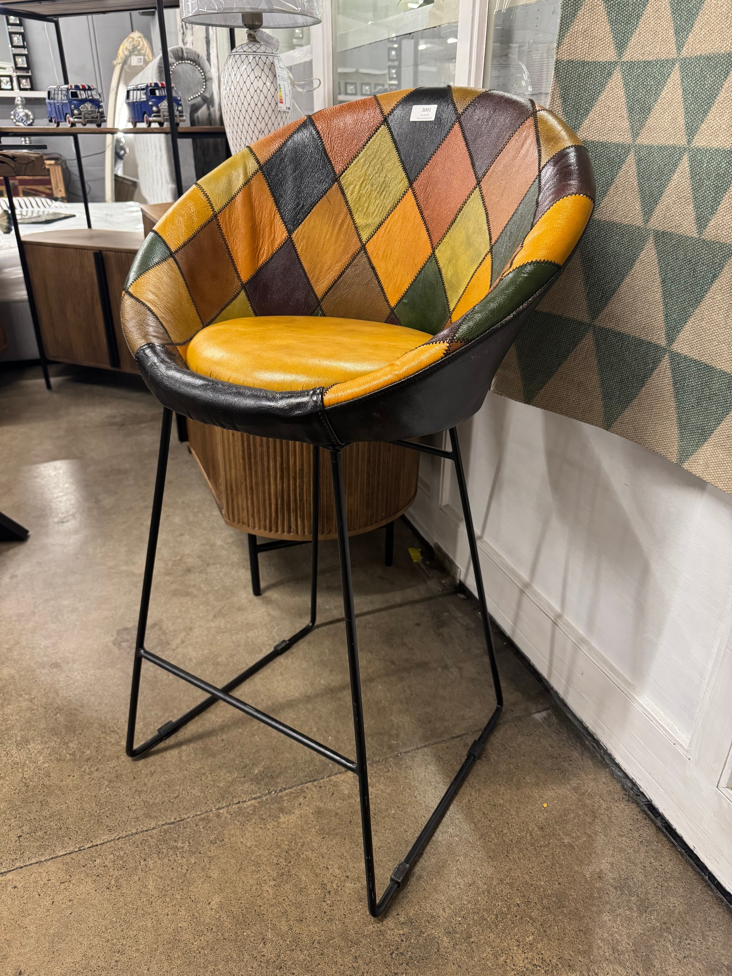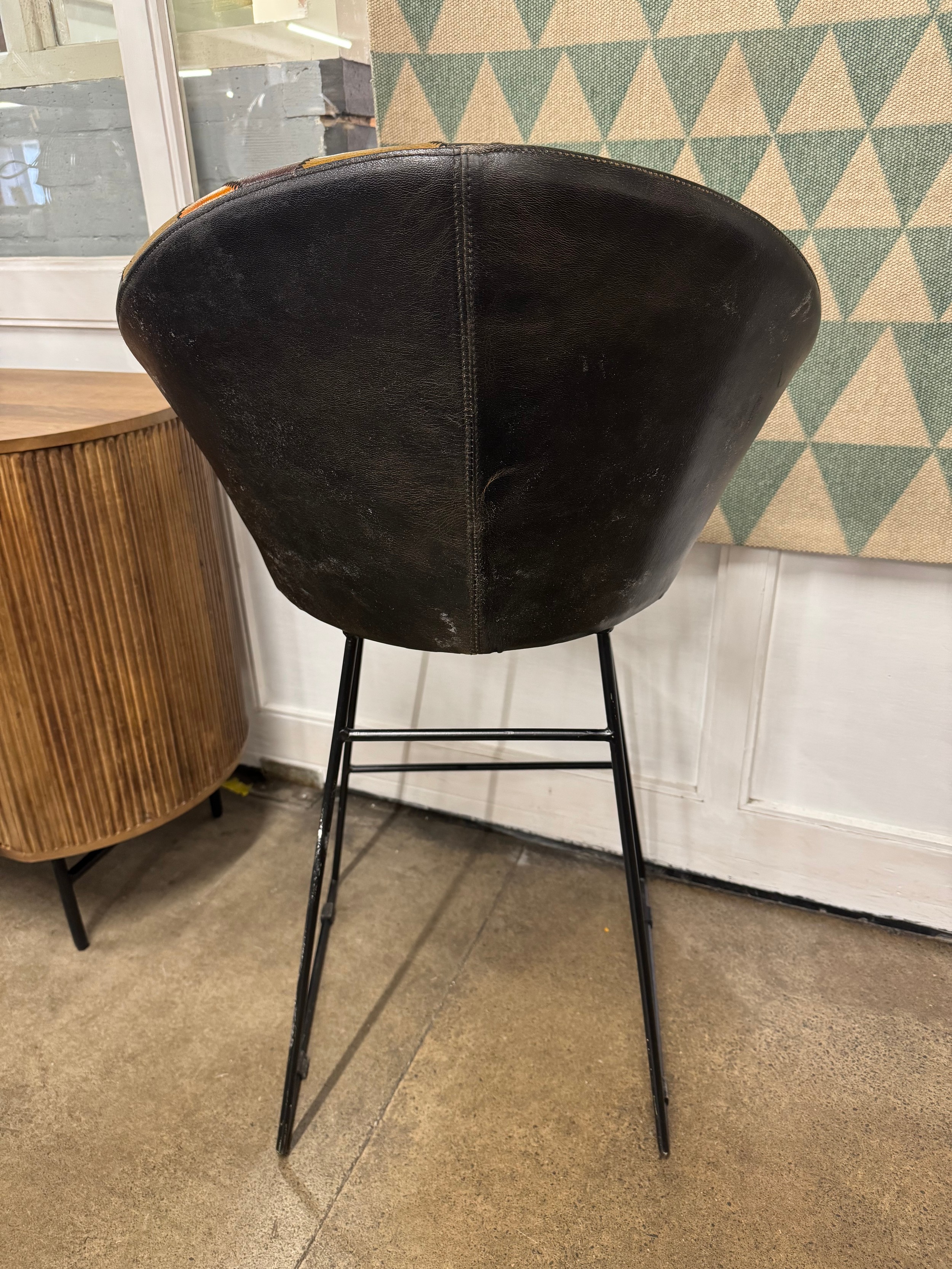 A patchwork leather bar stool