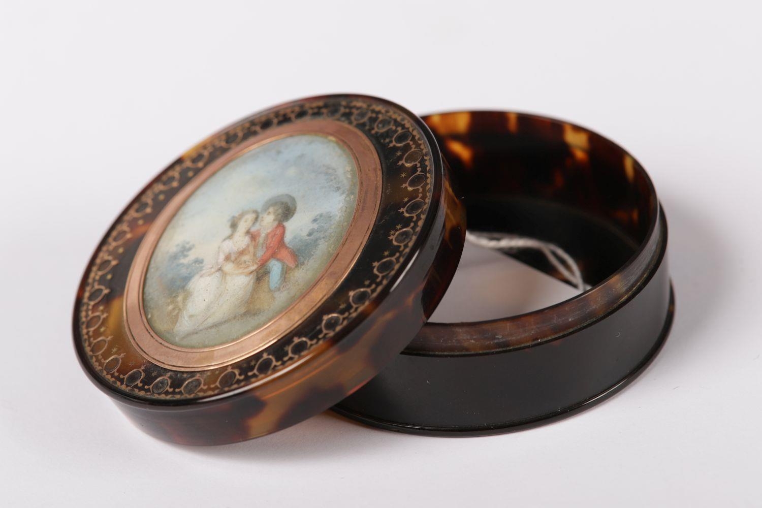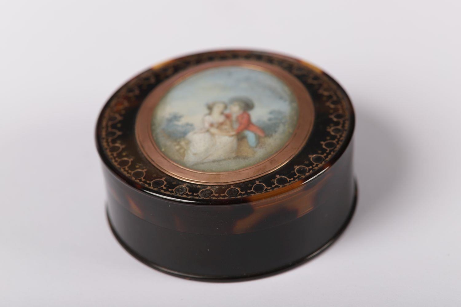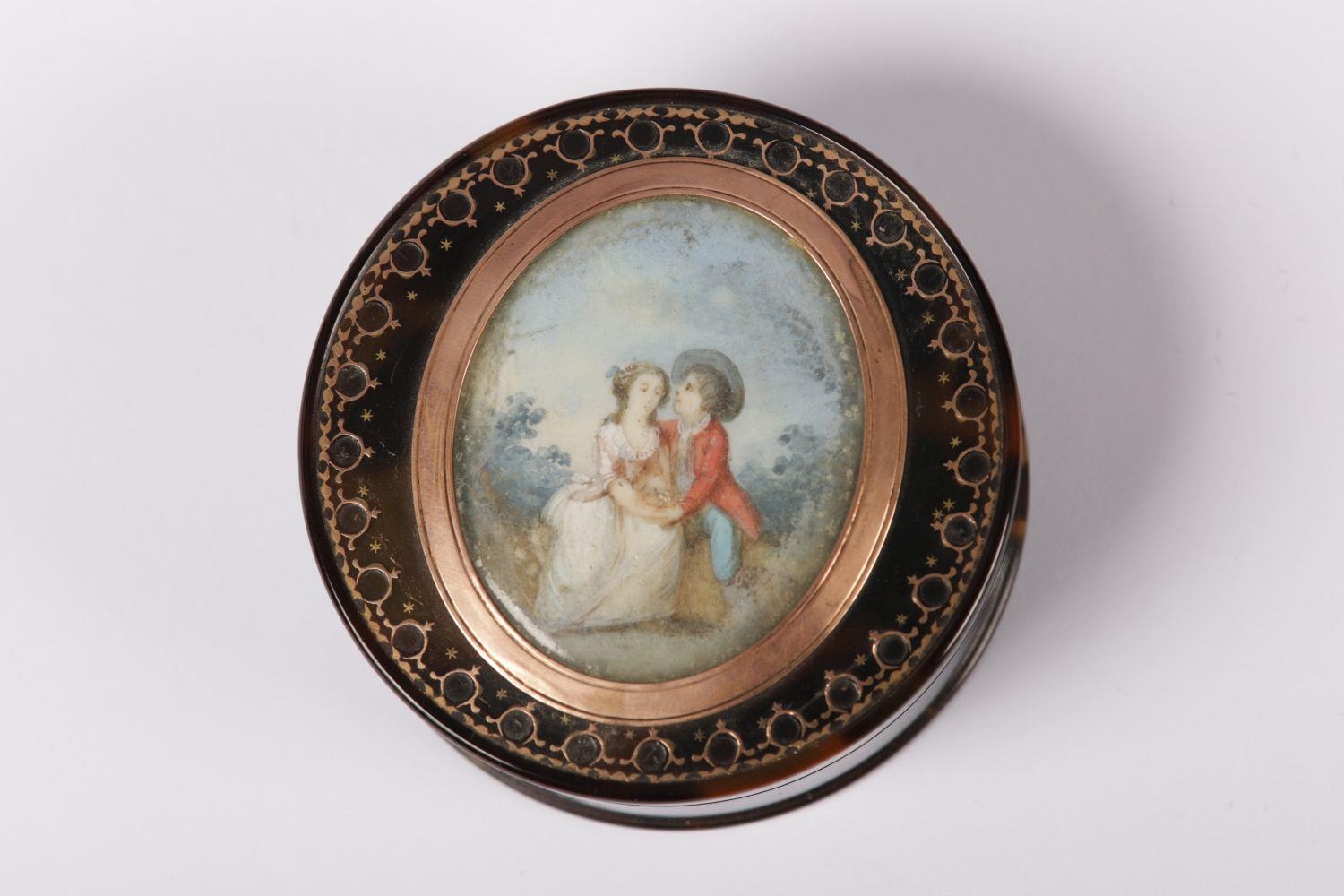 depicting lovers in a landscape, with gold plique-a-jour. ANTIQUE BOXES Wednesday 1st May 2024 10:36:40