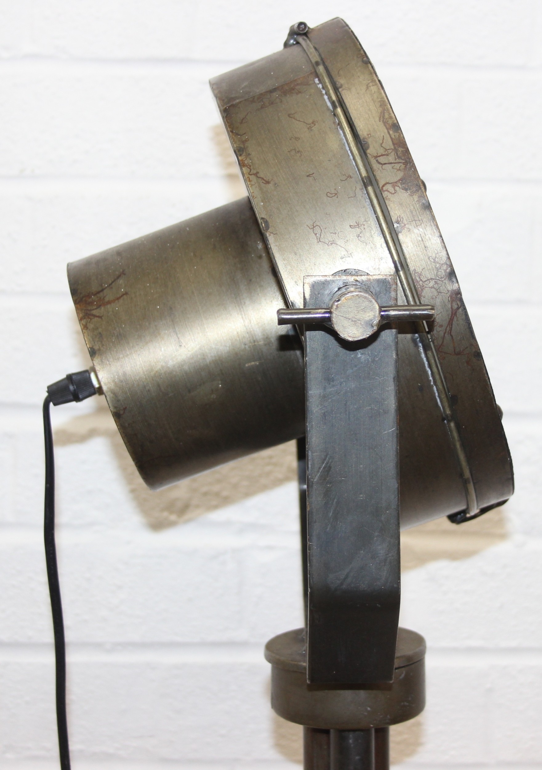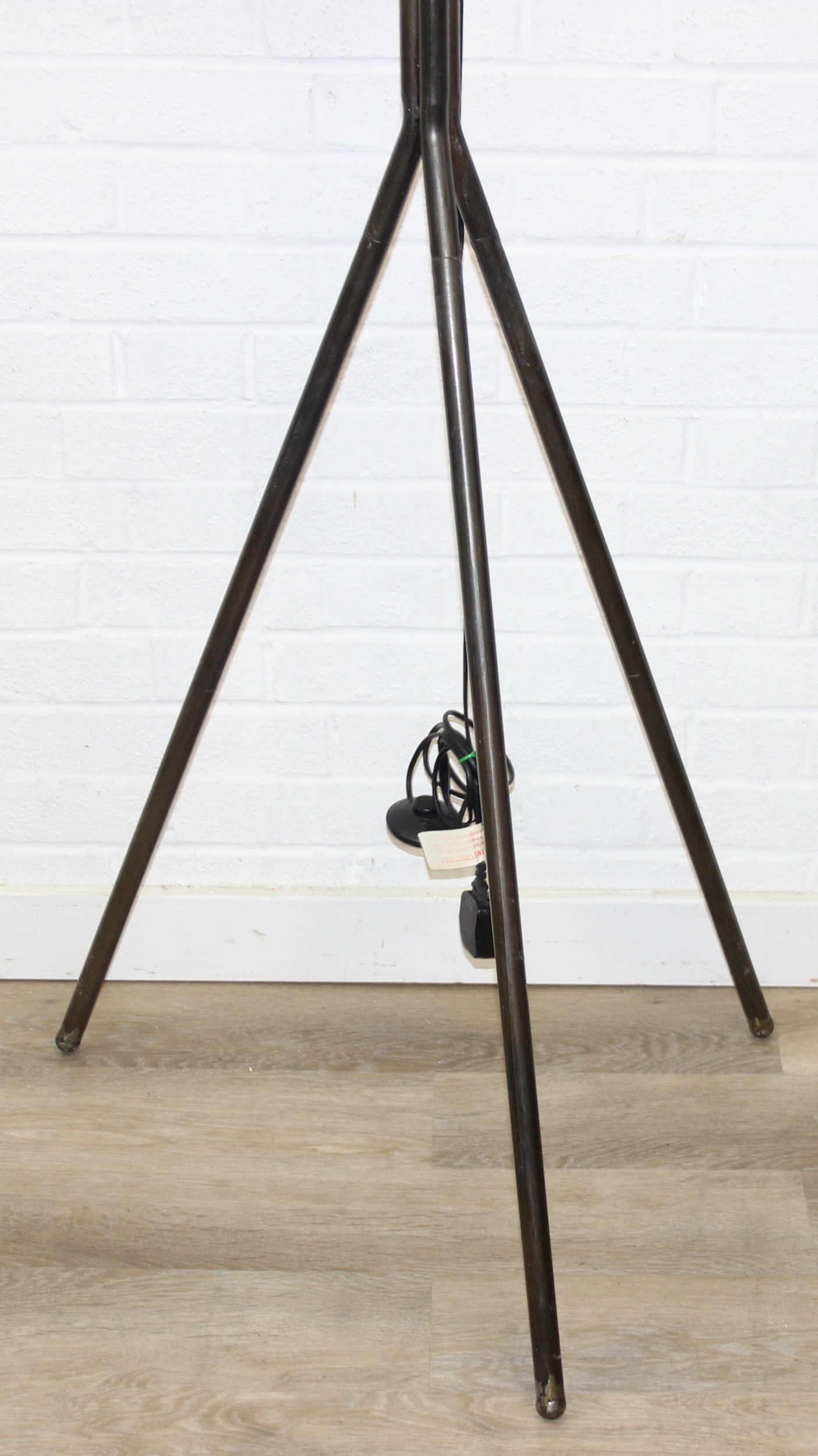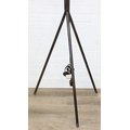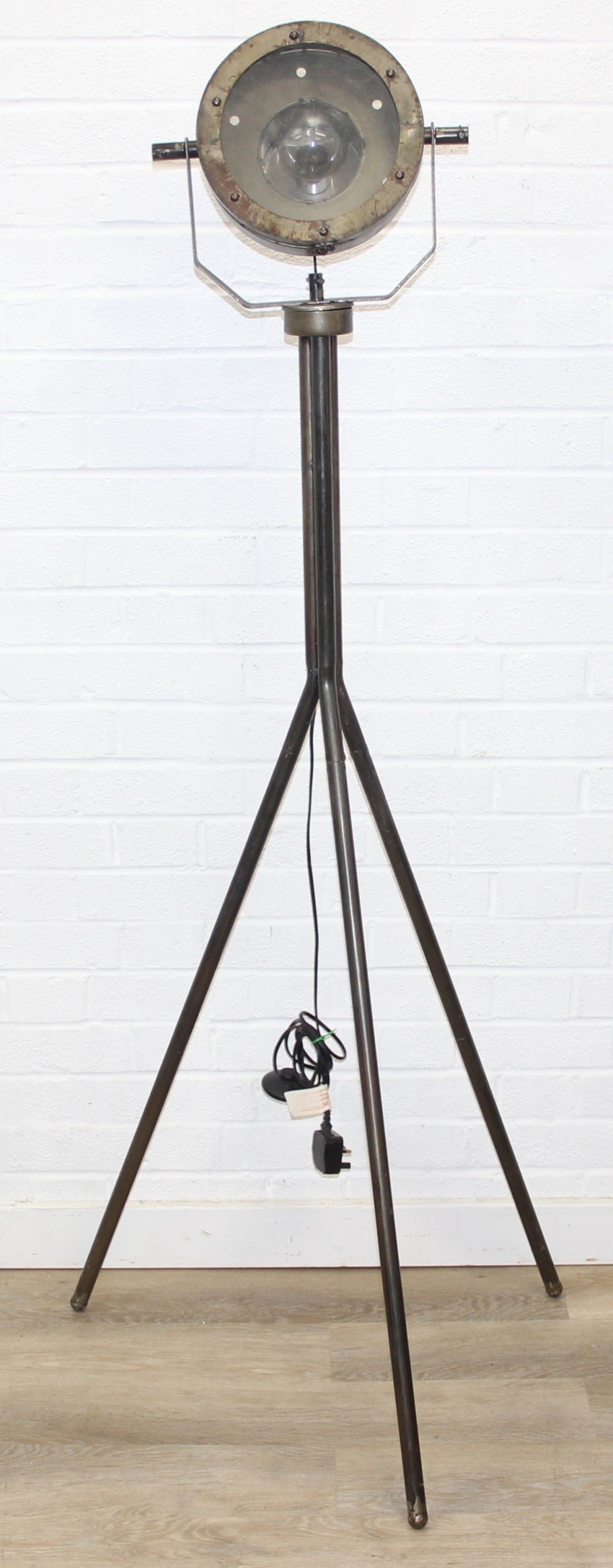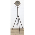 An industrial style floor standing lamp with tripos legs, 165cm tall