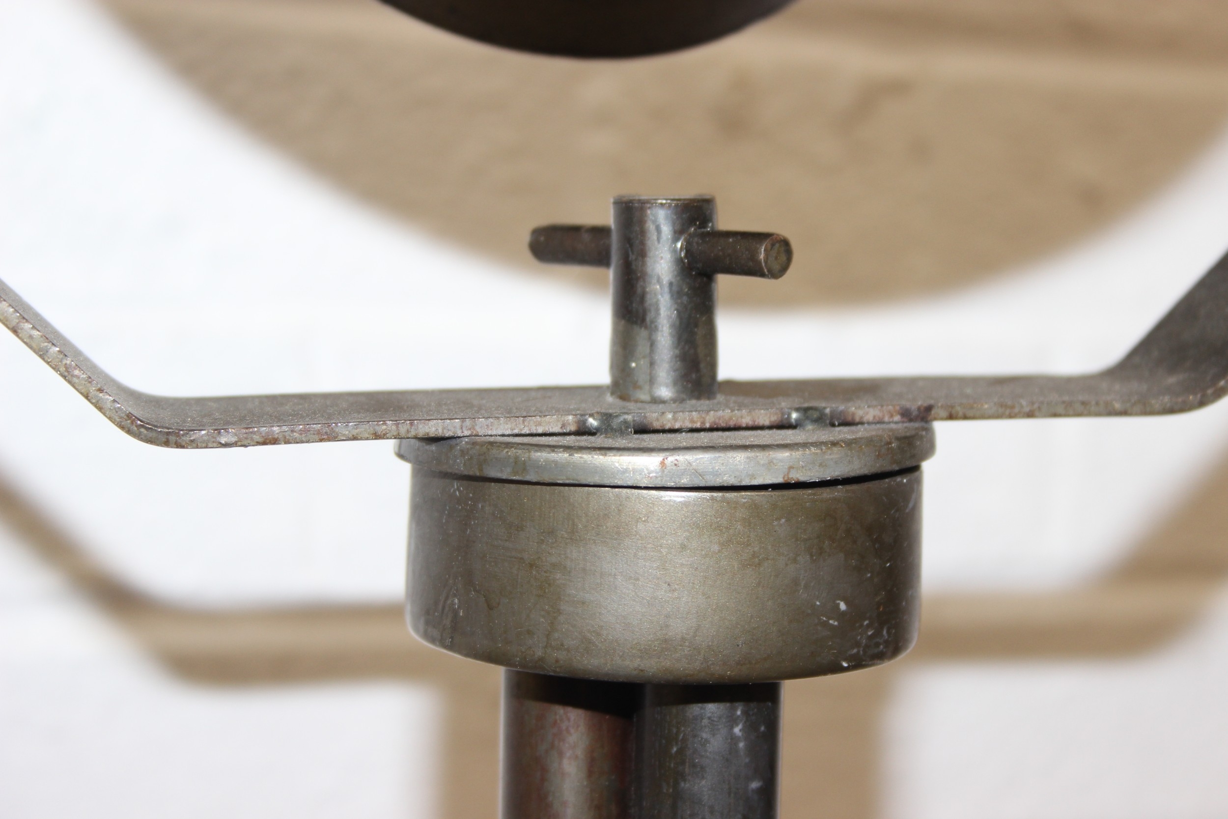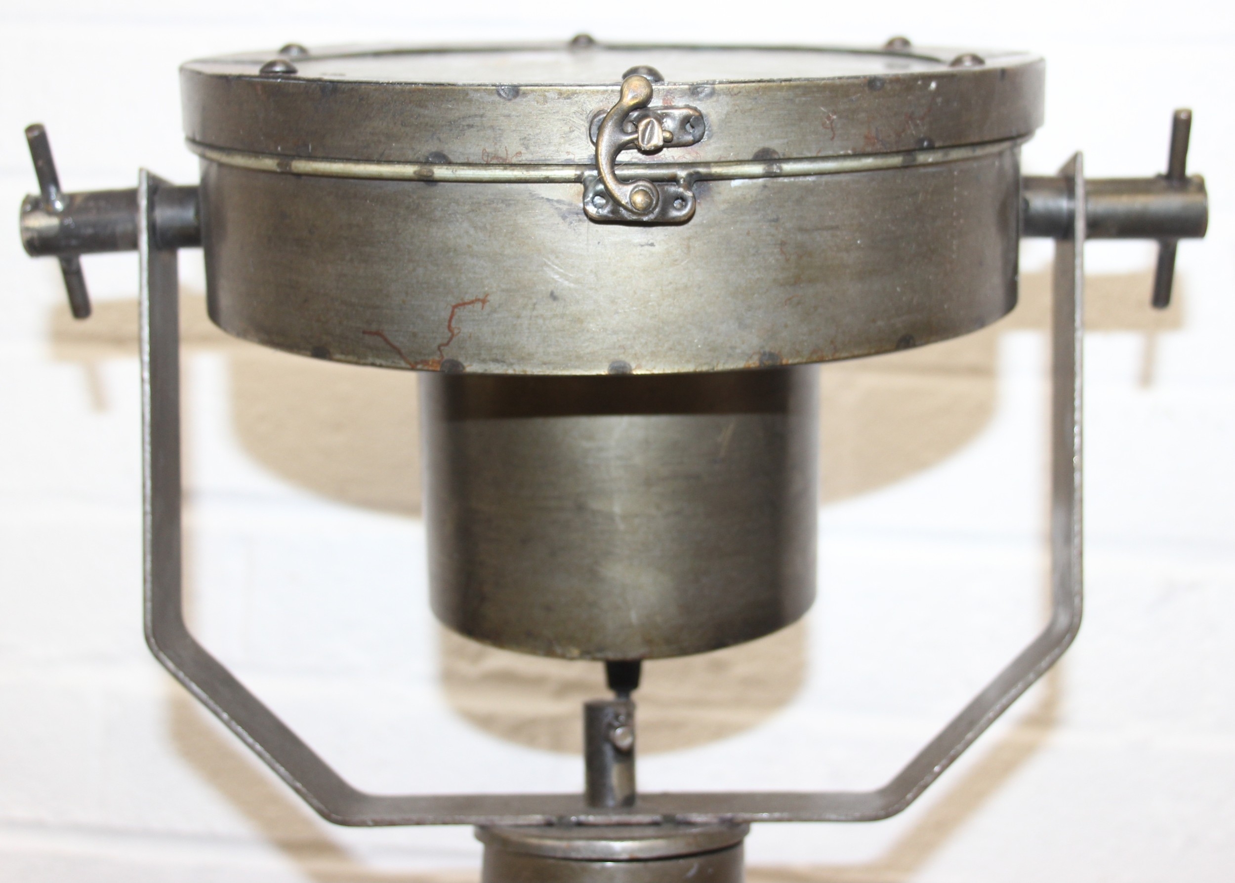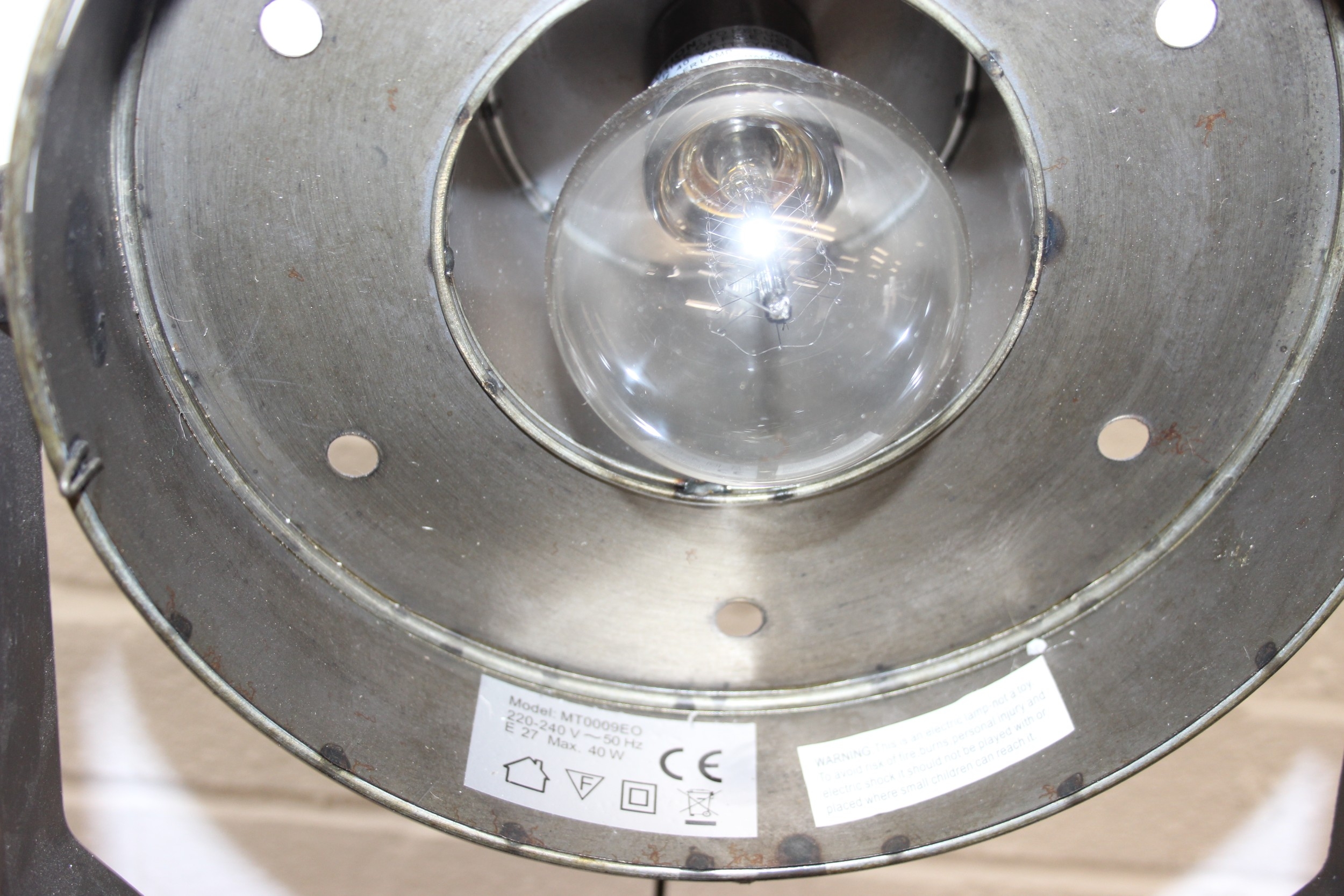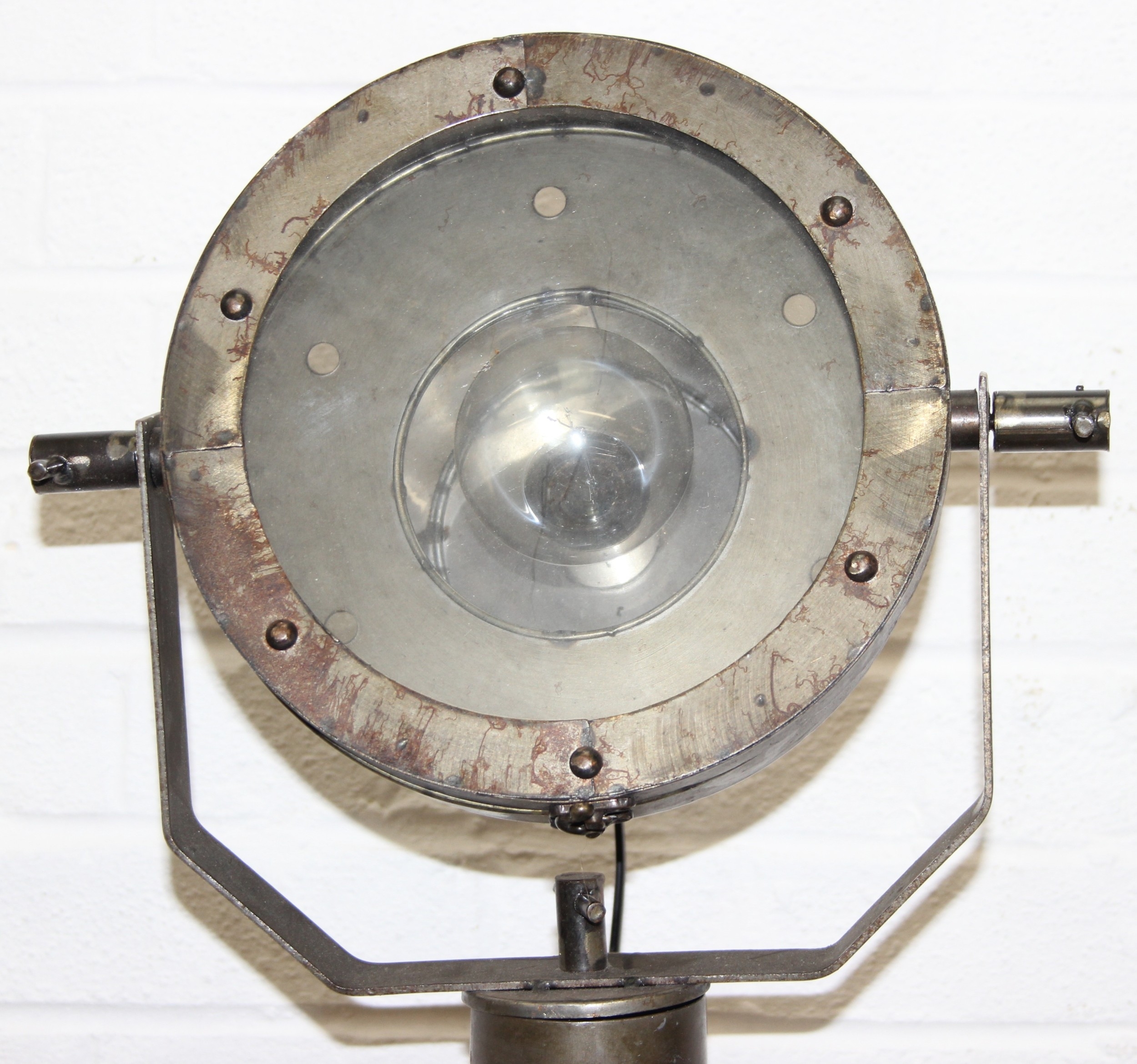 An industrial style floor standing lamp with tripos legs, 165cm tall