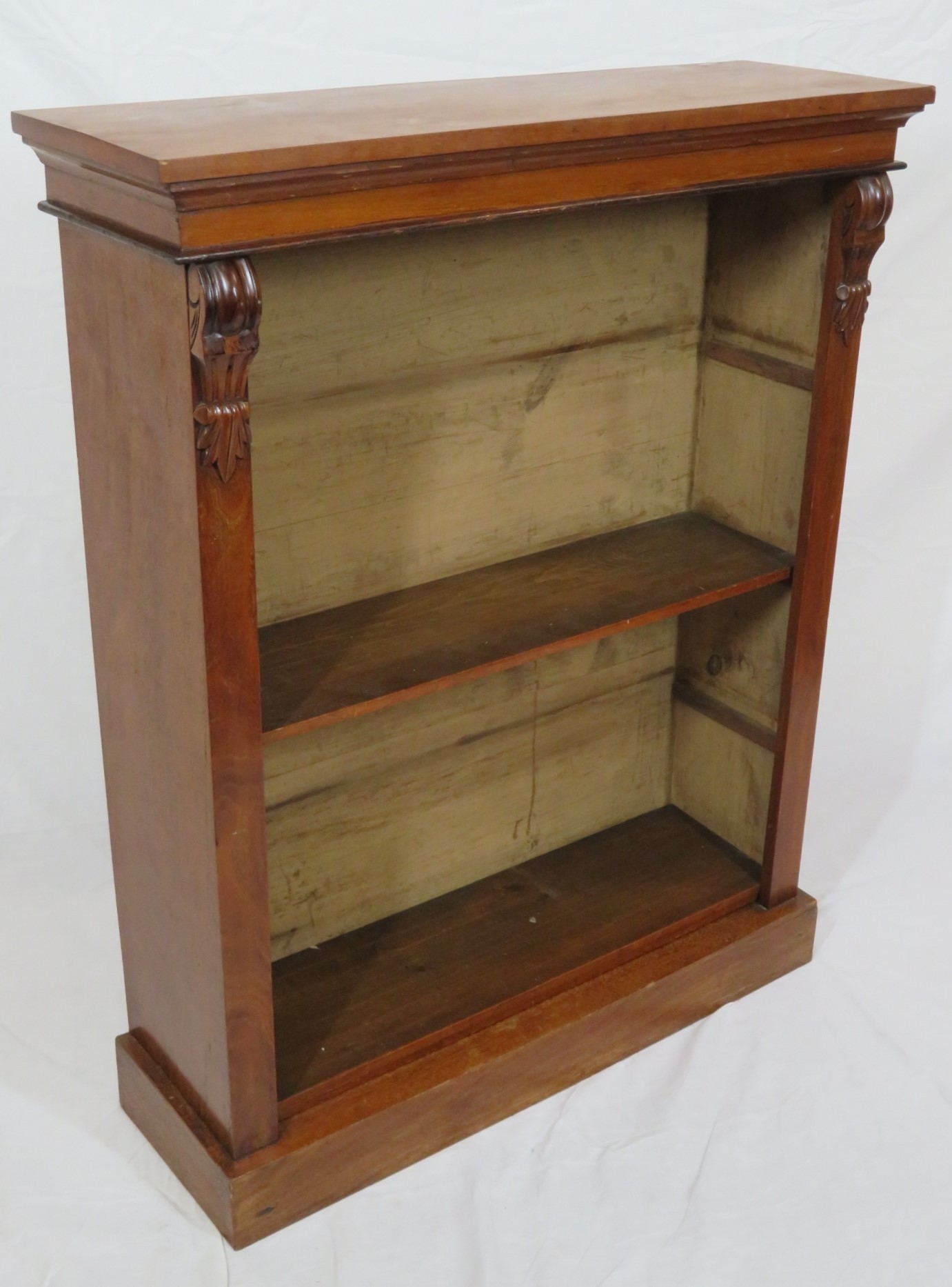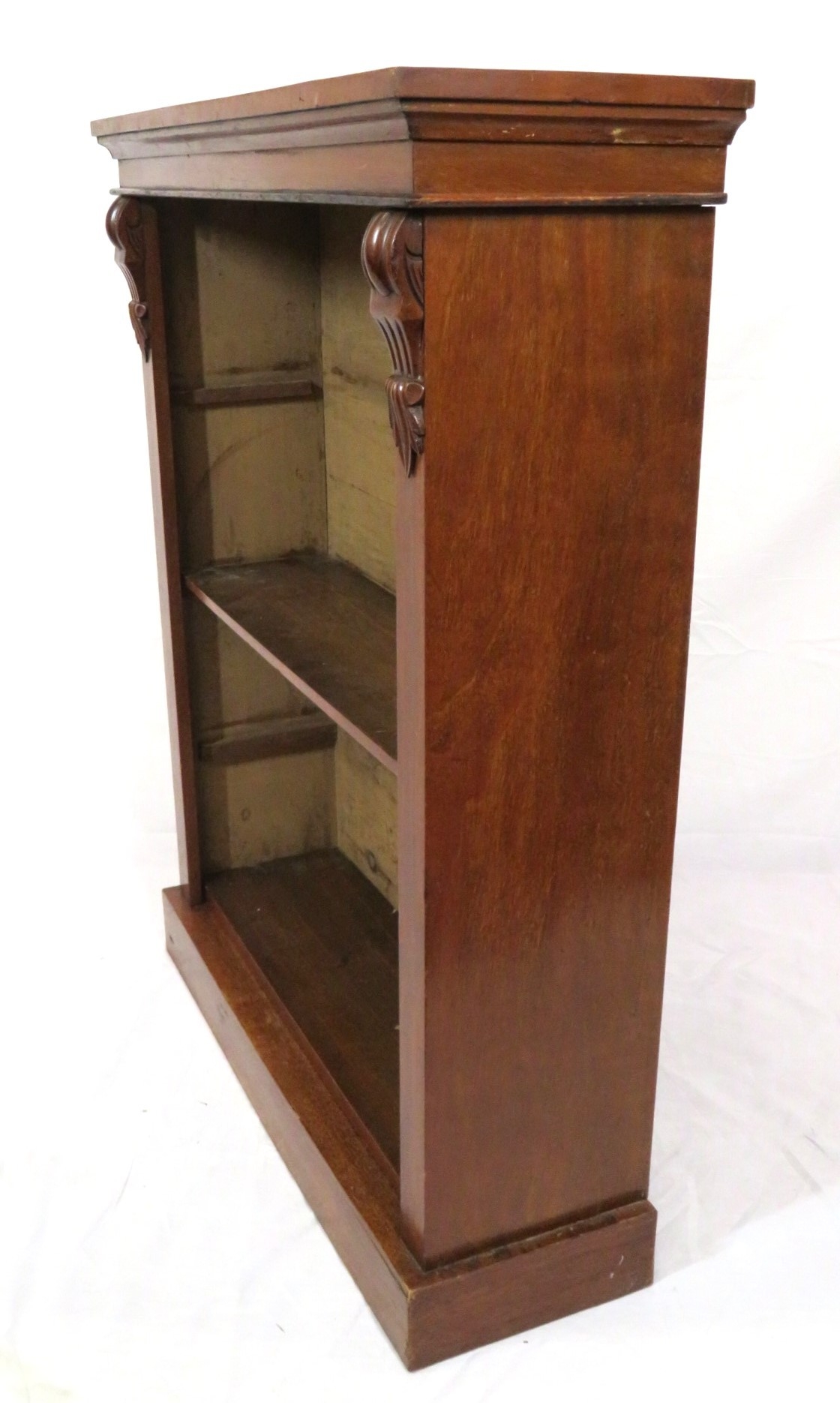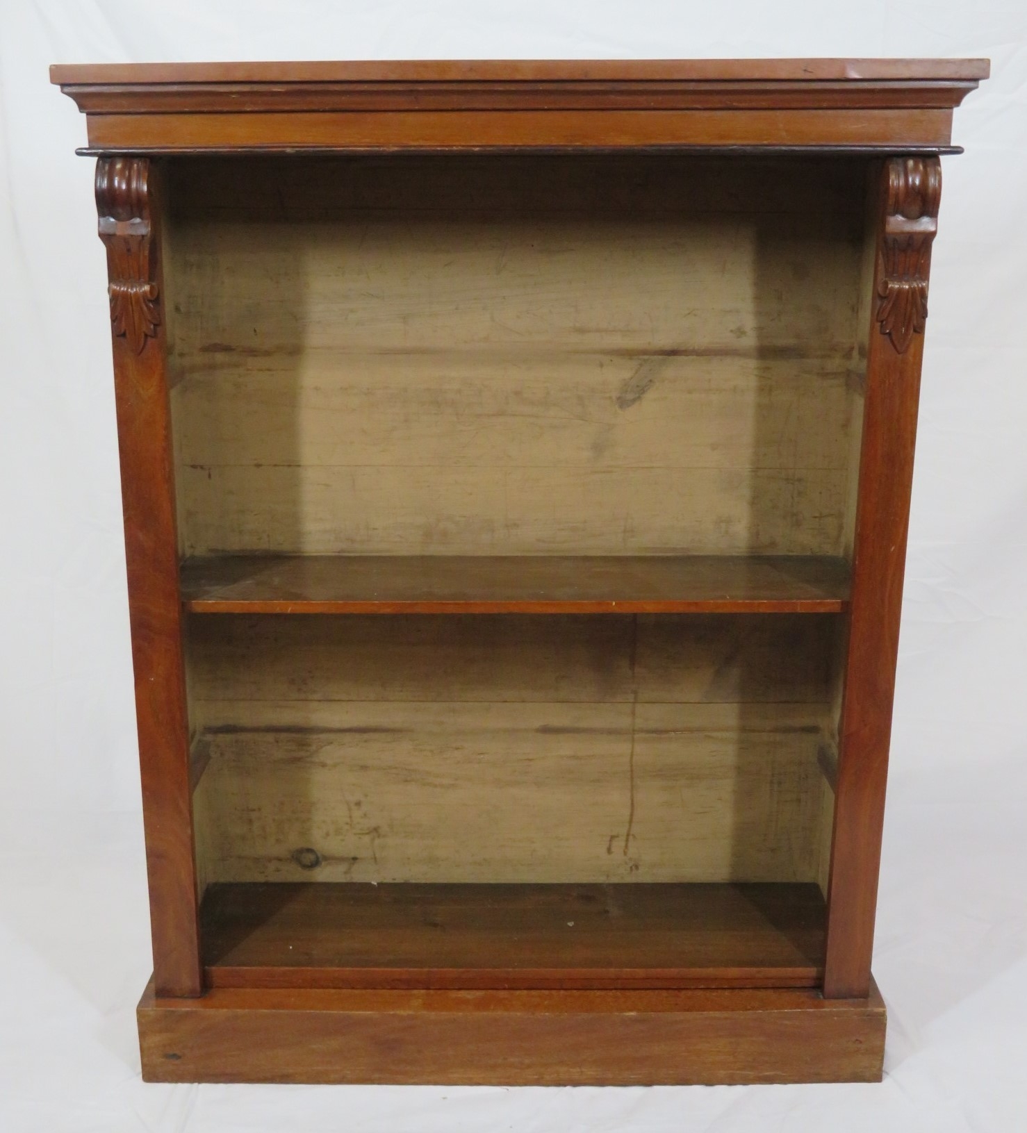 Edwardian style open bookcase with adjustable shelving, on plinth